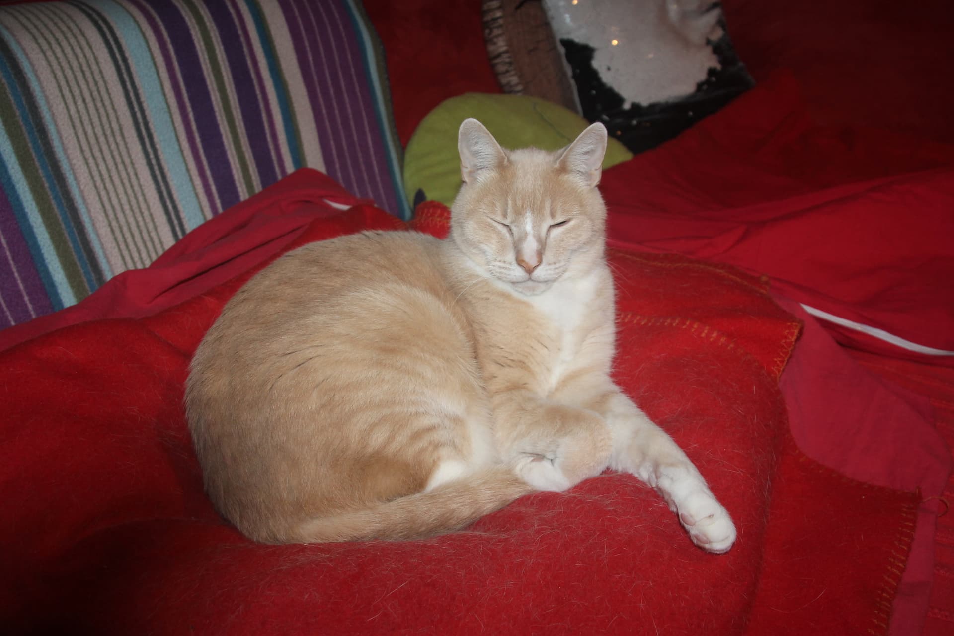 Og der spandt han gerne, han var ellers ikke en kat der spandt meget eller højt, men han gjorde det ofte når vi puttede i sengen. ![]()
