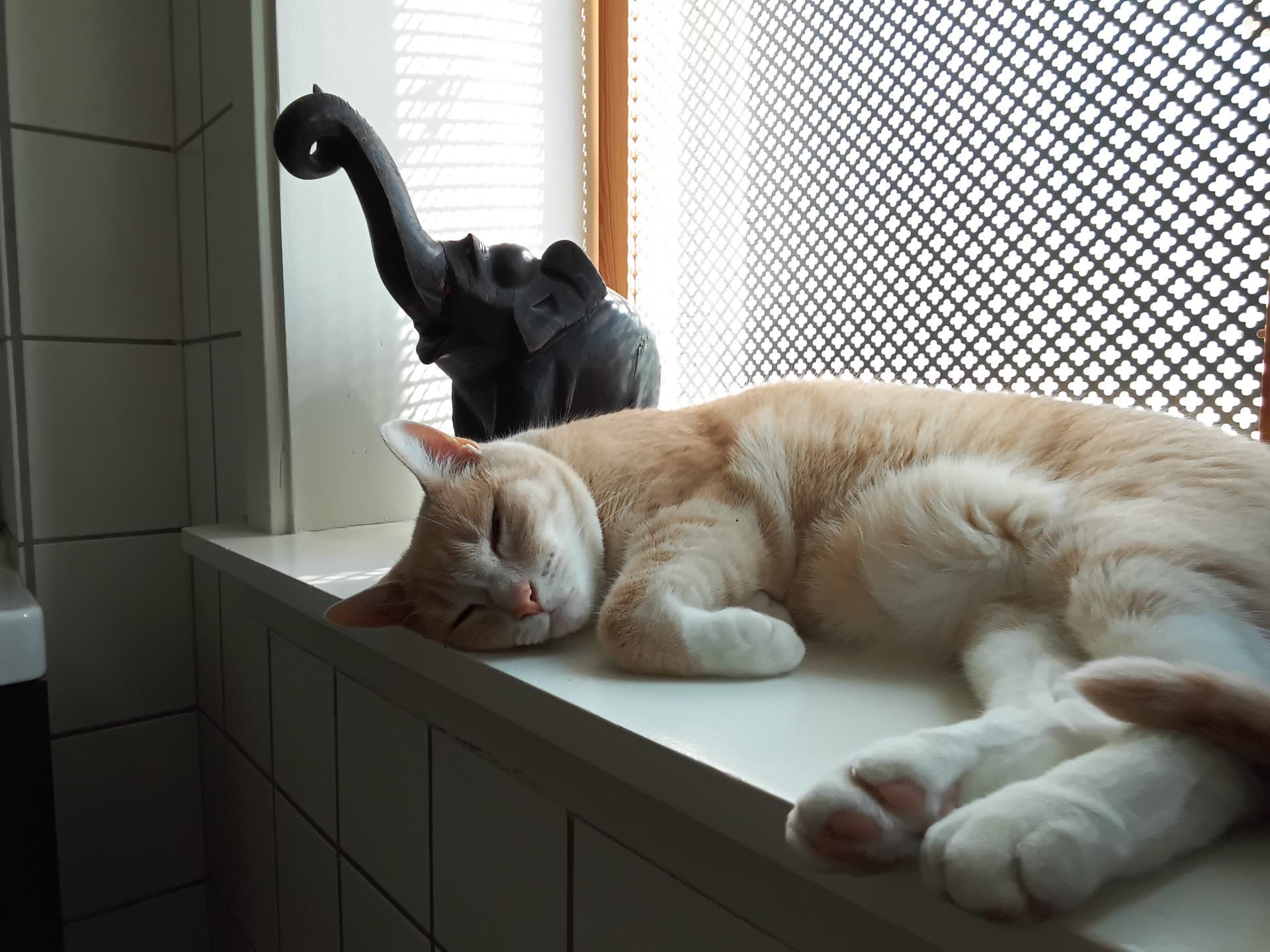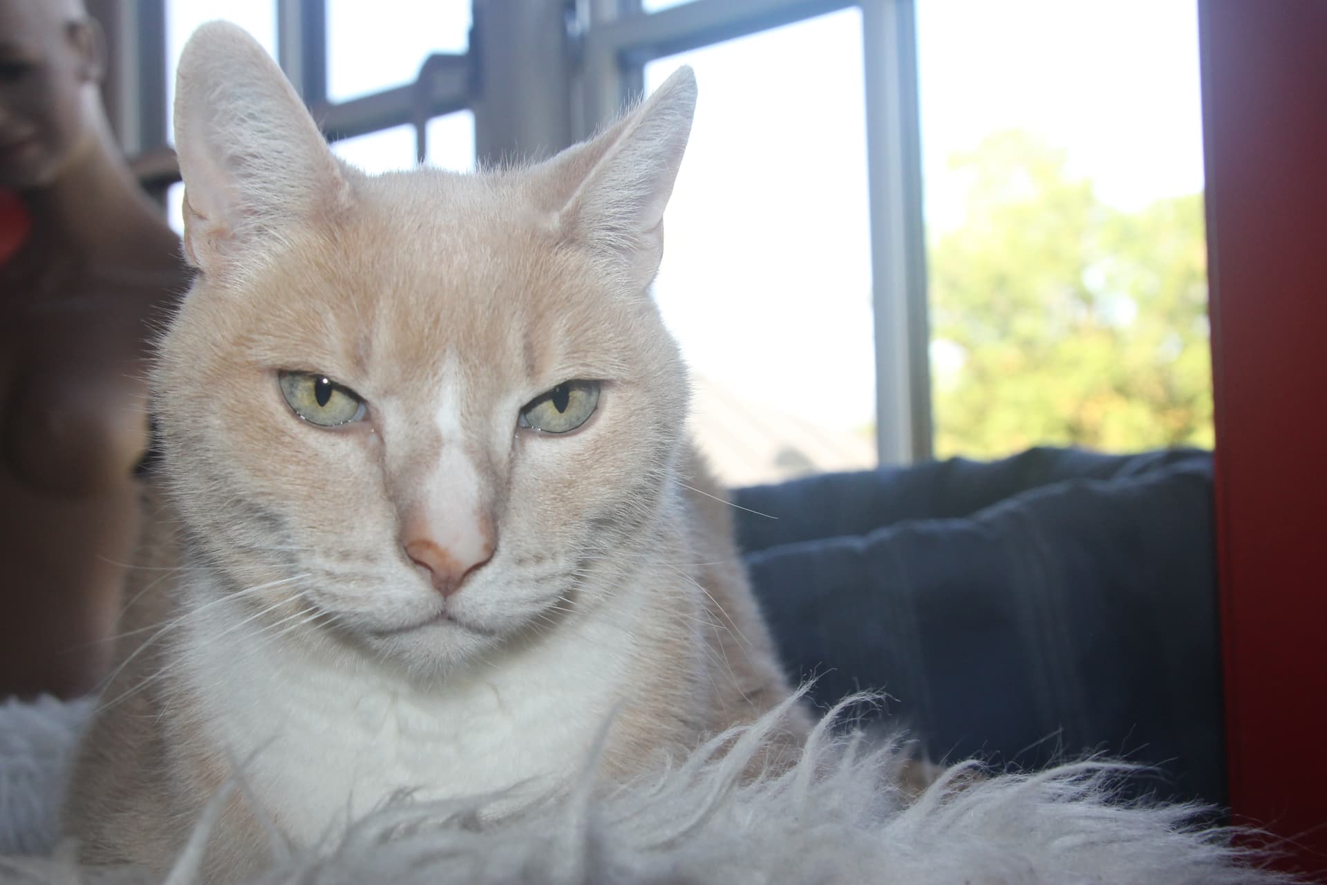 Hvis han sad på kattestolen i køkkenvinduet, kunne jeg også gå hen til ham og “dunke” hoved med ham. Det gjorde vi tit.