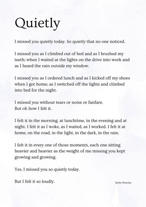 Mange af de samme tanker og følelser jeg oplever. Savnet får det til at føles som om det er evigheder siden man havde sin puttetrold, og samtidig føles det som om verden gik i stå. Og savnet og sorgen er stadig så frisk som da de lige døde. Om aftenen og natten er hjernen også helt automatisk langt mere tilbøjelig til at søge de triste tanker.