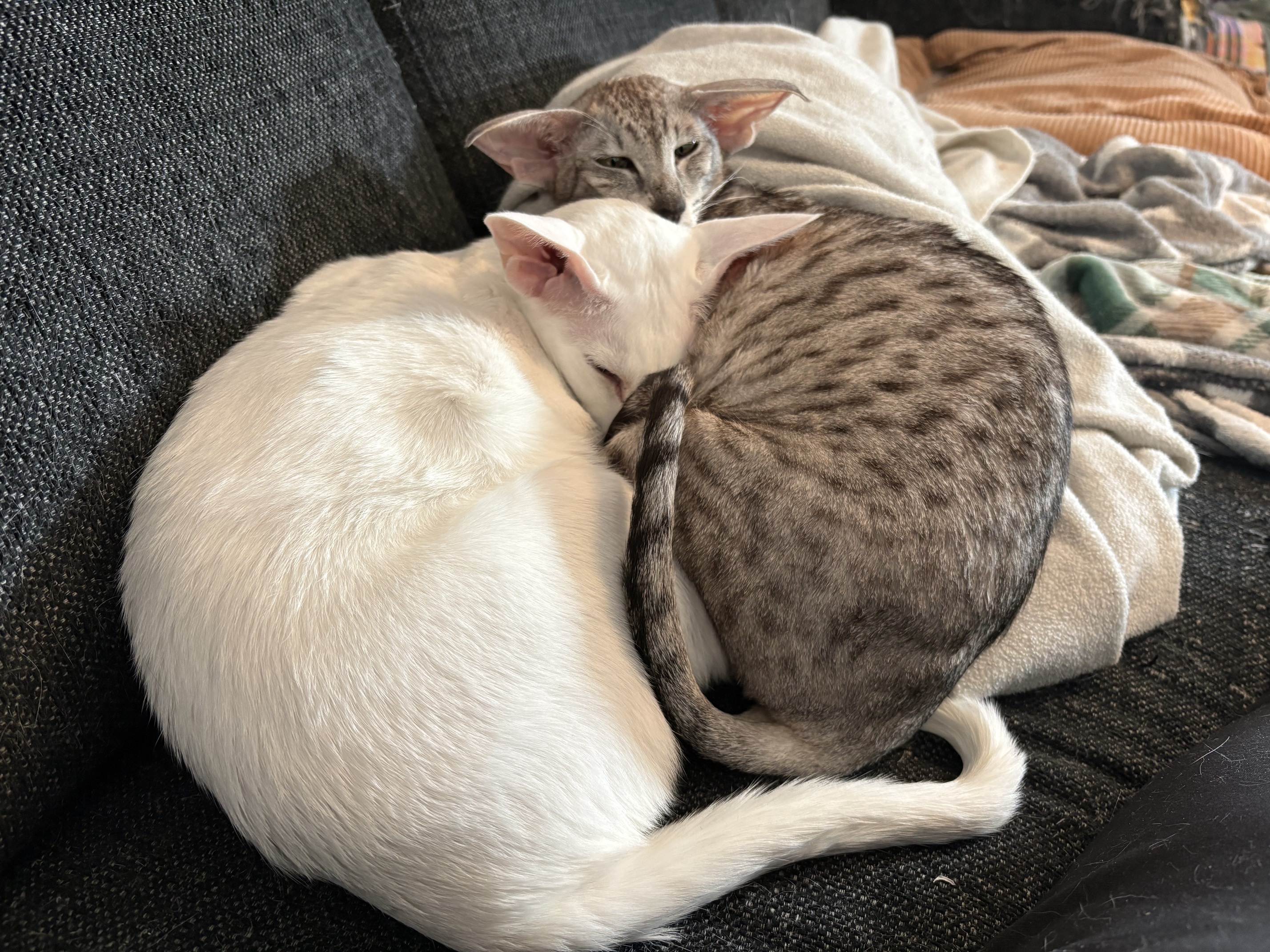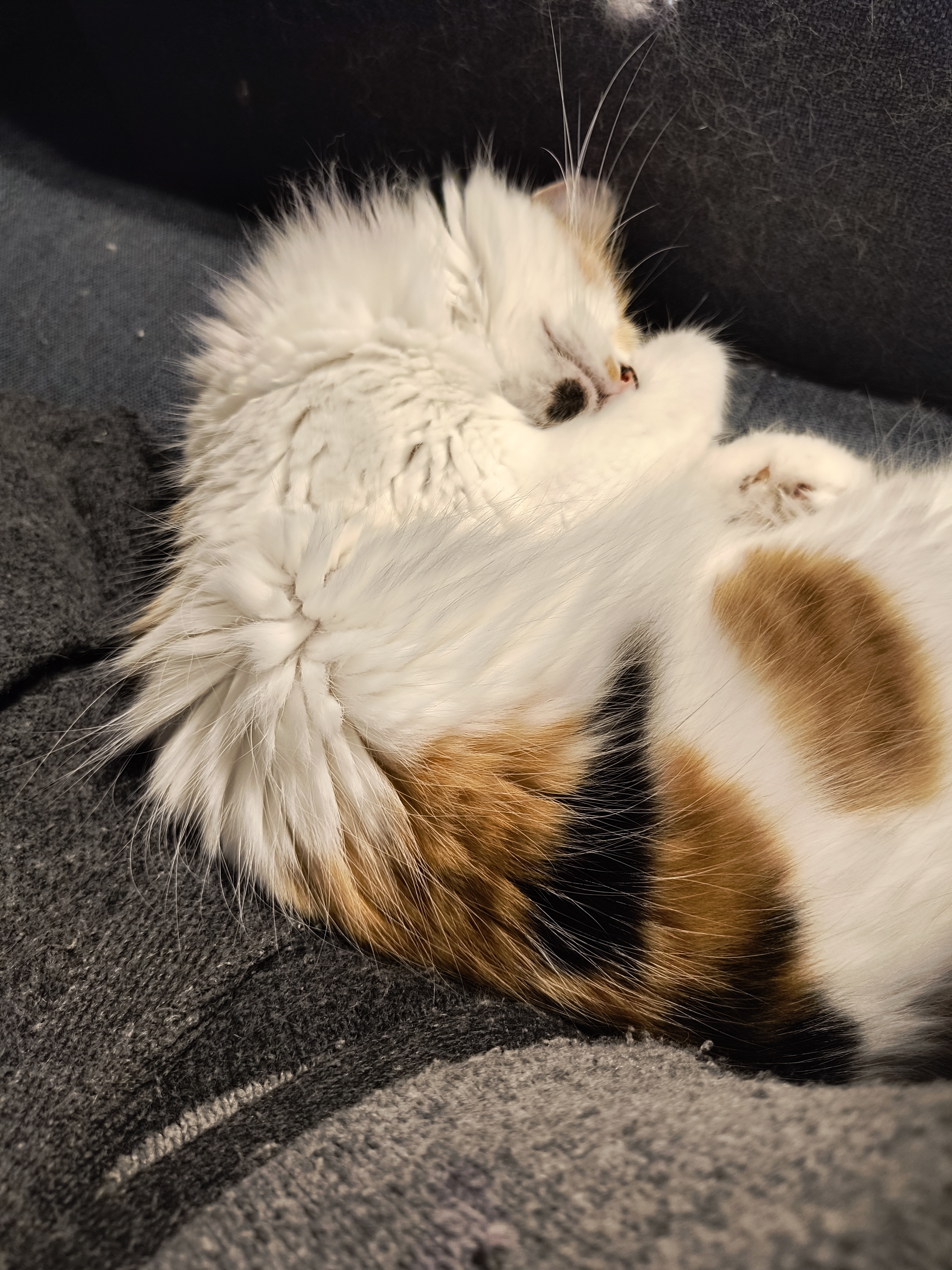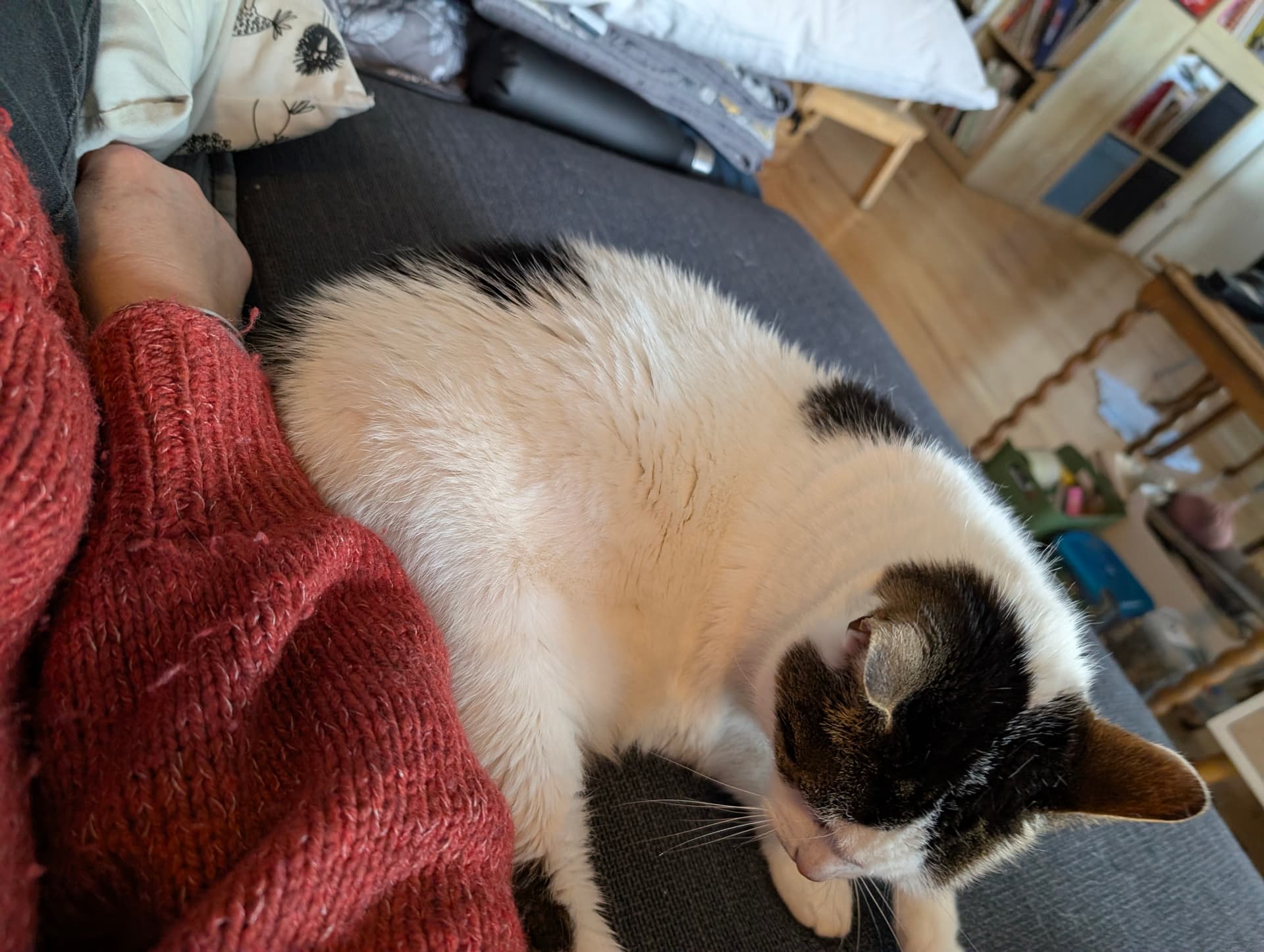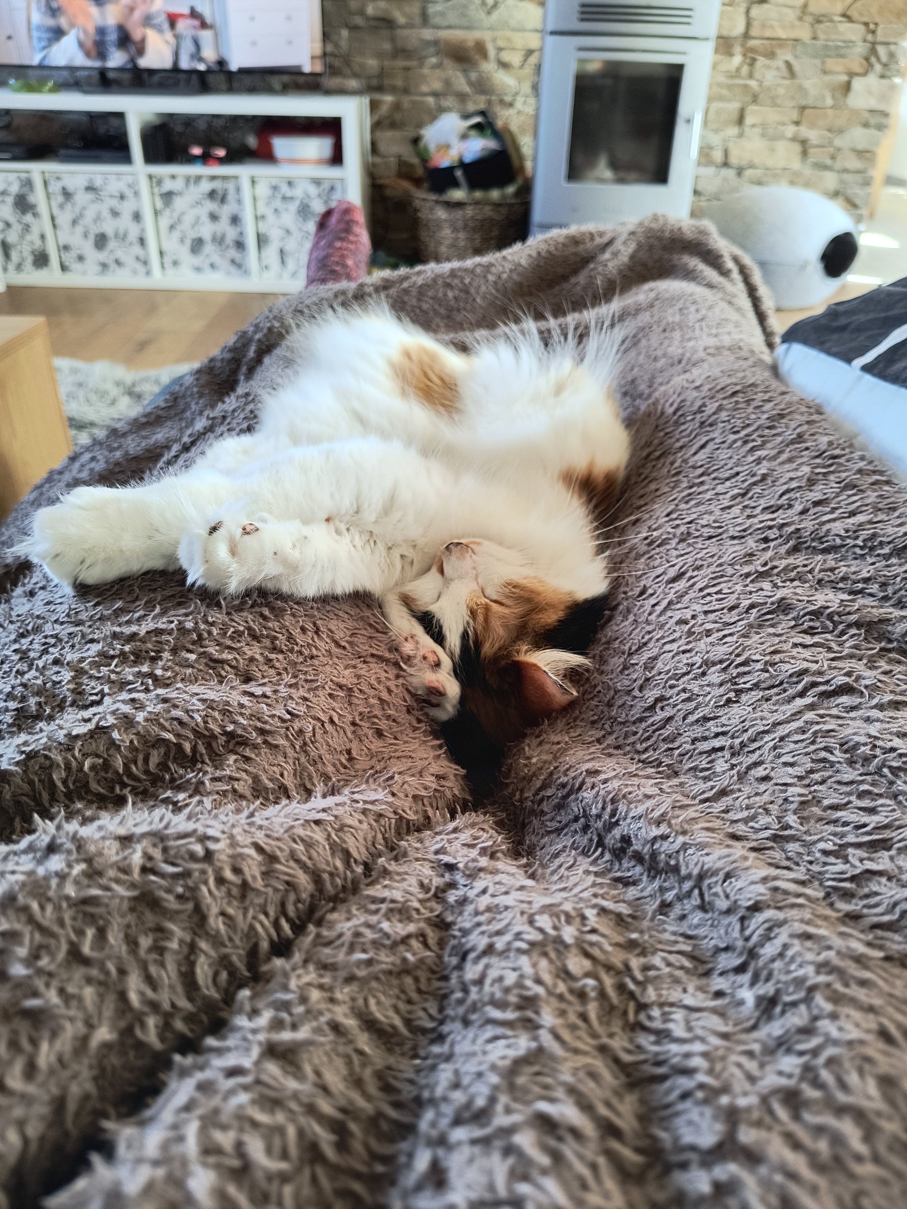 Hun sov opad mig hele natten, og straks efter morgen vådfoder mente hun, at vi skulle putte på sofaen, med det resultat at jeg fik nogle meget utilfredse blikke mens jeg ryddede op, men jeg blev da tilgivet så snart jeg satte mig ![]()