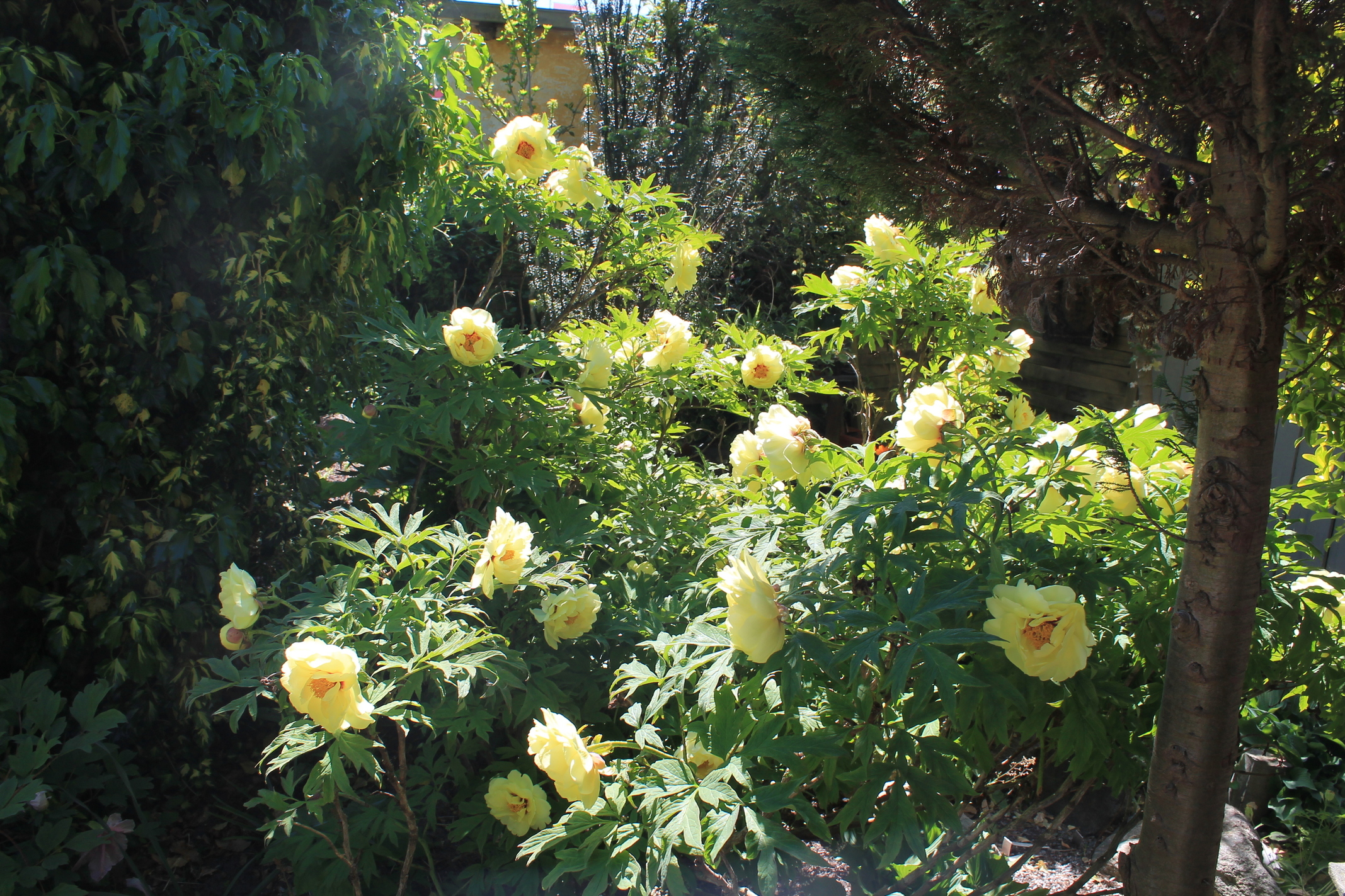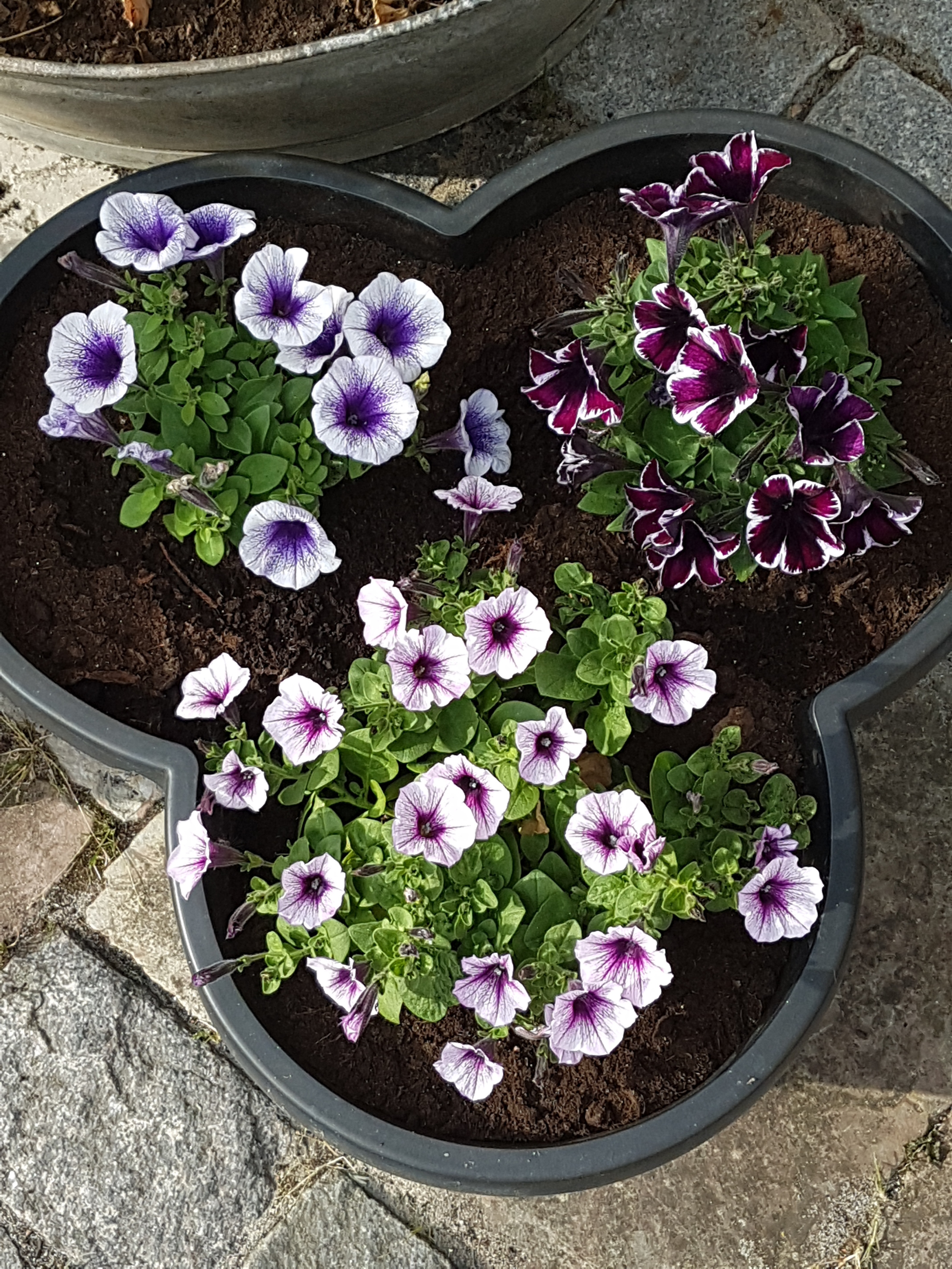 Jeg har bare lige nu hindbær, små æble træer og nogle højbede med ærter.ø osv ungerne planter… eneste blomster er 6 roser og 2 klematiser