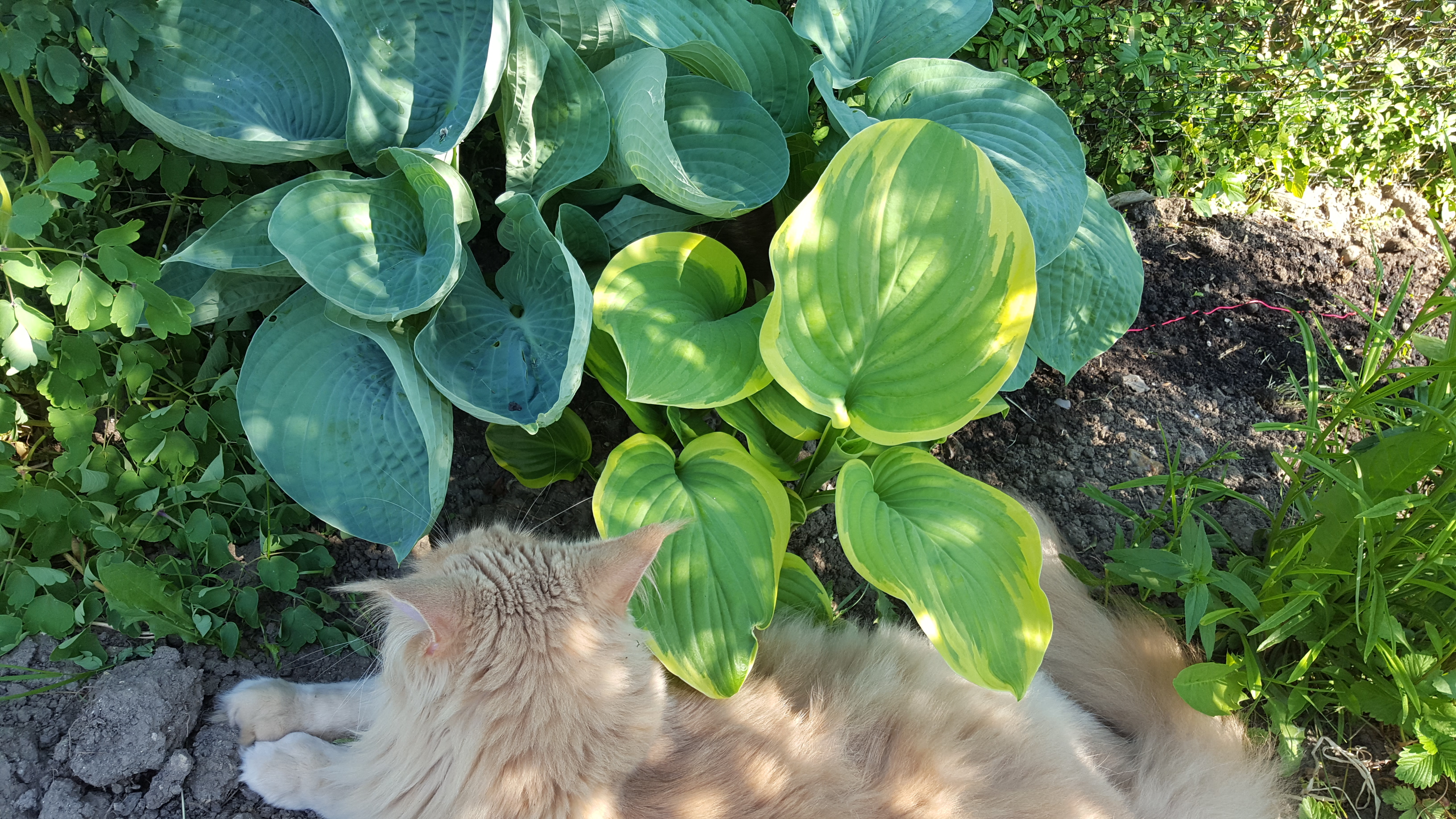 Hosta er en god plante på skyggefulde pletter i haven; men de er også gode at få skygge fra her i maj-heden