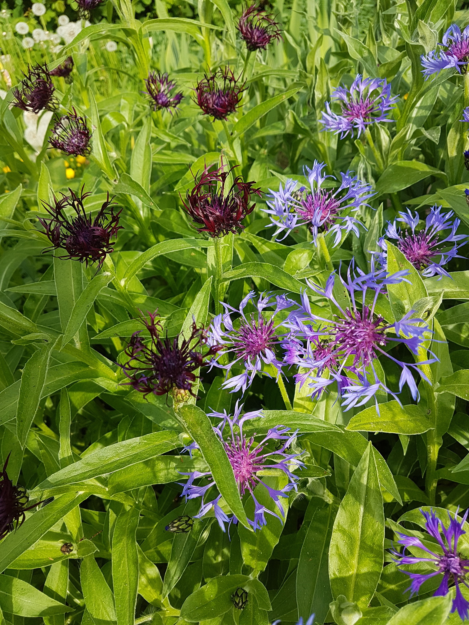Den er i familie med kornblomsten som på latin hedder centaurea cyanys. Som du kan se hedder de begge “centaurea” til “fornavn” ![]()