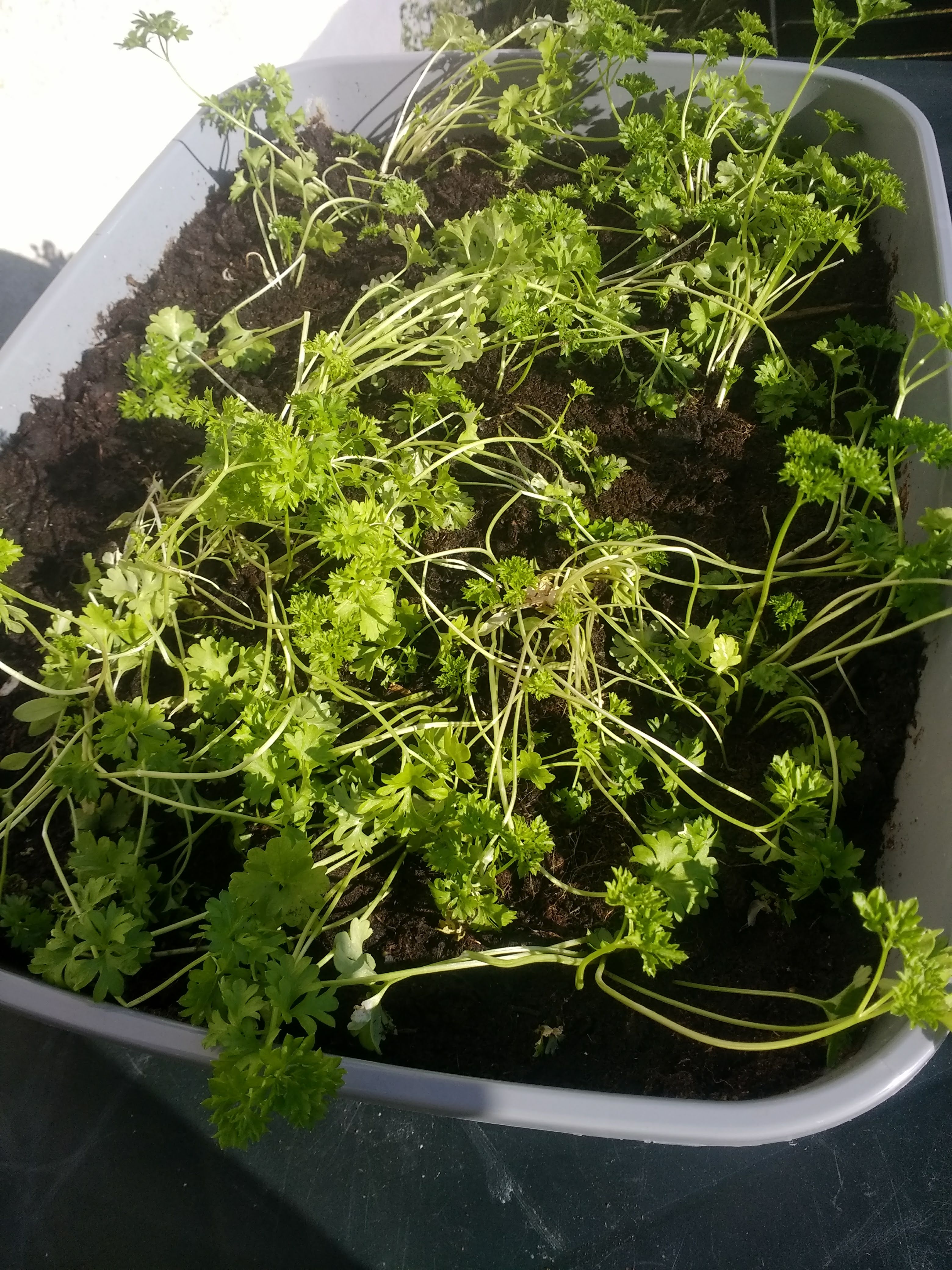 Og så har jeg genbrugt en gammel kattebakke. Nu er det en persillebakke ![]()
