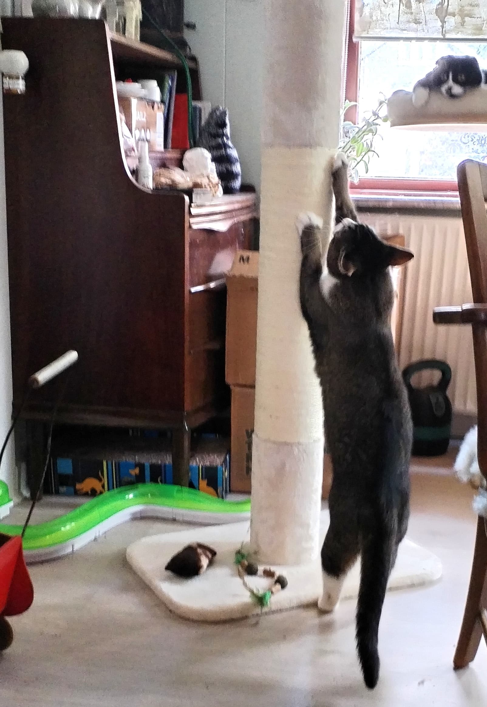 Zooplus leverede ikke kun foder til kattene … jeg har også købt en kradsestolpe til især Donkey, med håb om at han vælger at hvæsse kløer i den, fremfor mine lænestole ![]()