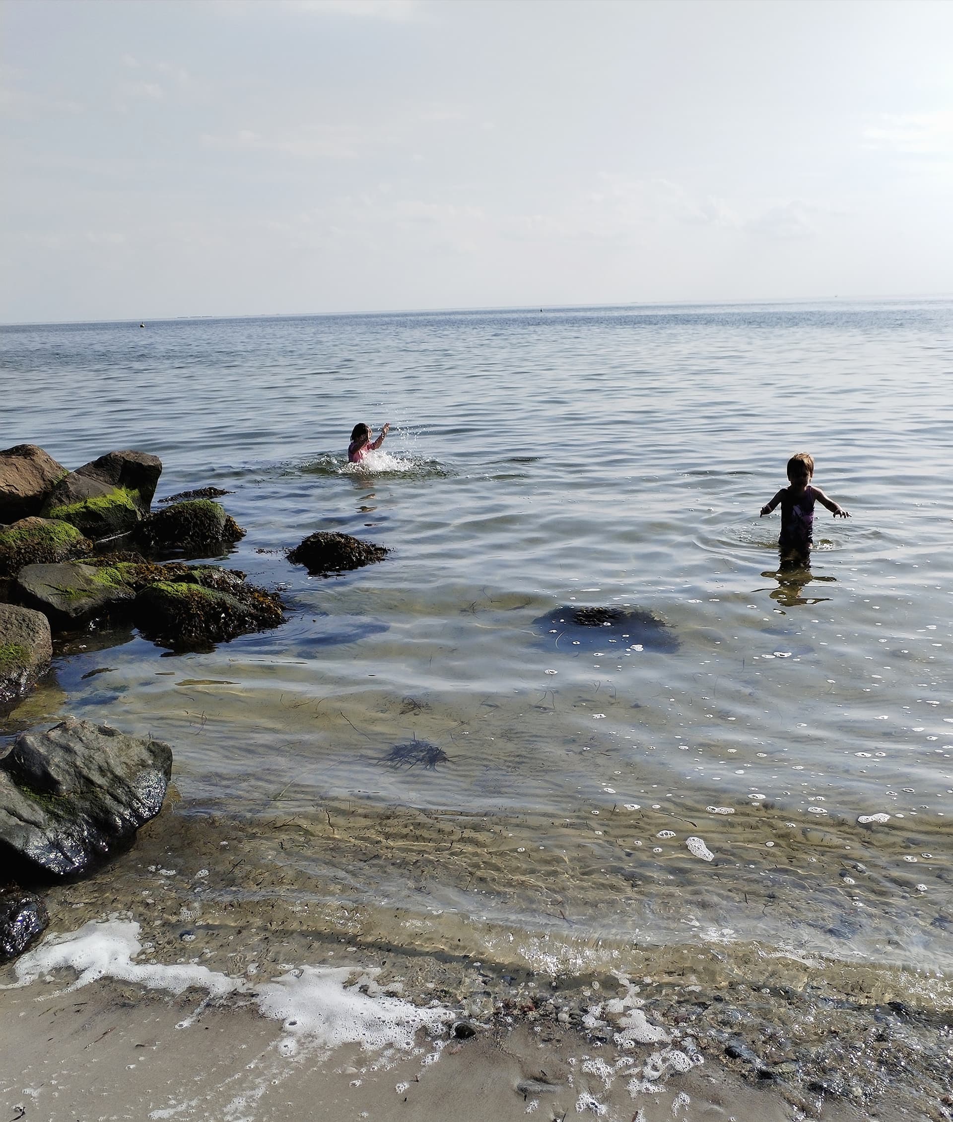 Da vi kom hjem, fik vi lyst til at tage på stranden, så vi kørte til Bisserup (jeg gider ikke Karrebæksminde, der er for mange mennesker) og brugte ca. 1½ time i vandet … Emma er så vild i alt hvad hun foretager sig og hun dykkede under overfladen flere gange … hun er lige fyldt 6 år!