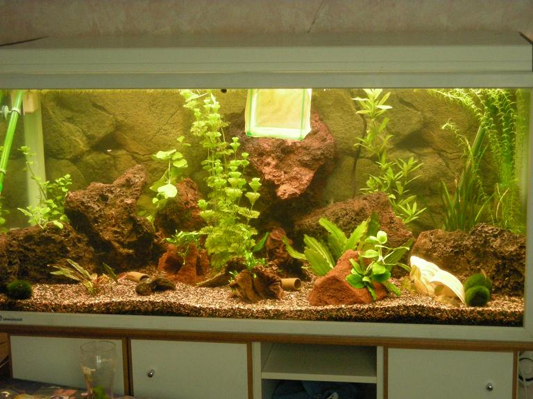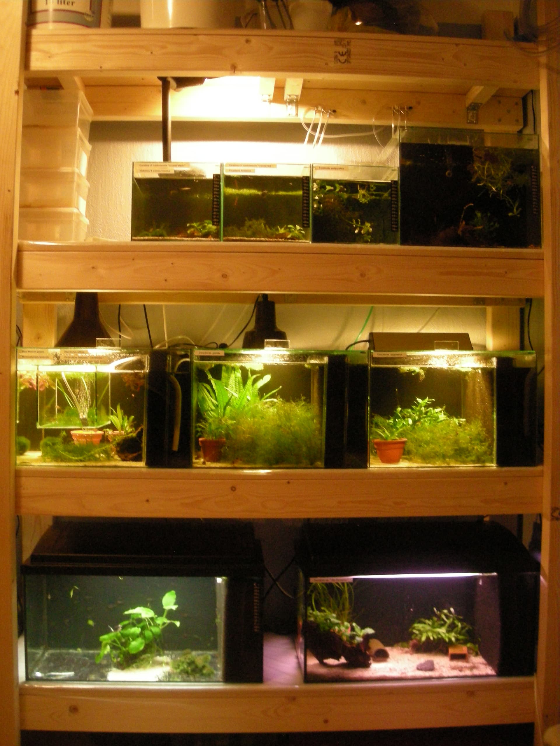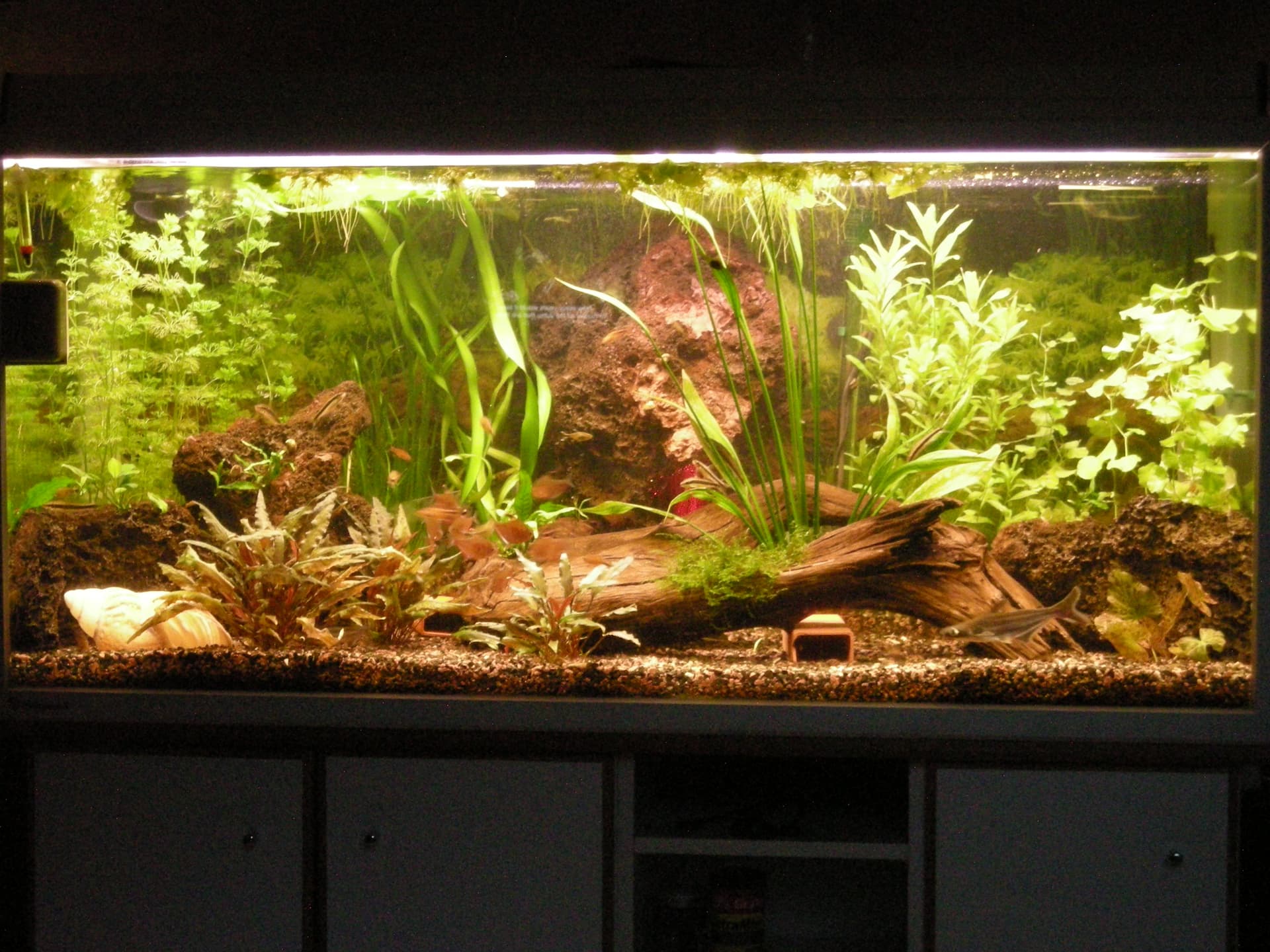 Vi havde et par store akvarier. Den i stuen var på 180l. Sønnikes var på 450l, samt jeg havde vel 20 akvarier i forskellige str fra 15l til 50 l hvori jeg havde opdræt af pansermaller og ikke mindst mine røde grenmaller