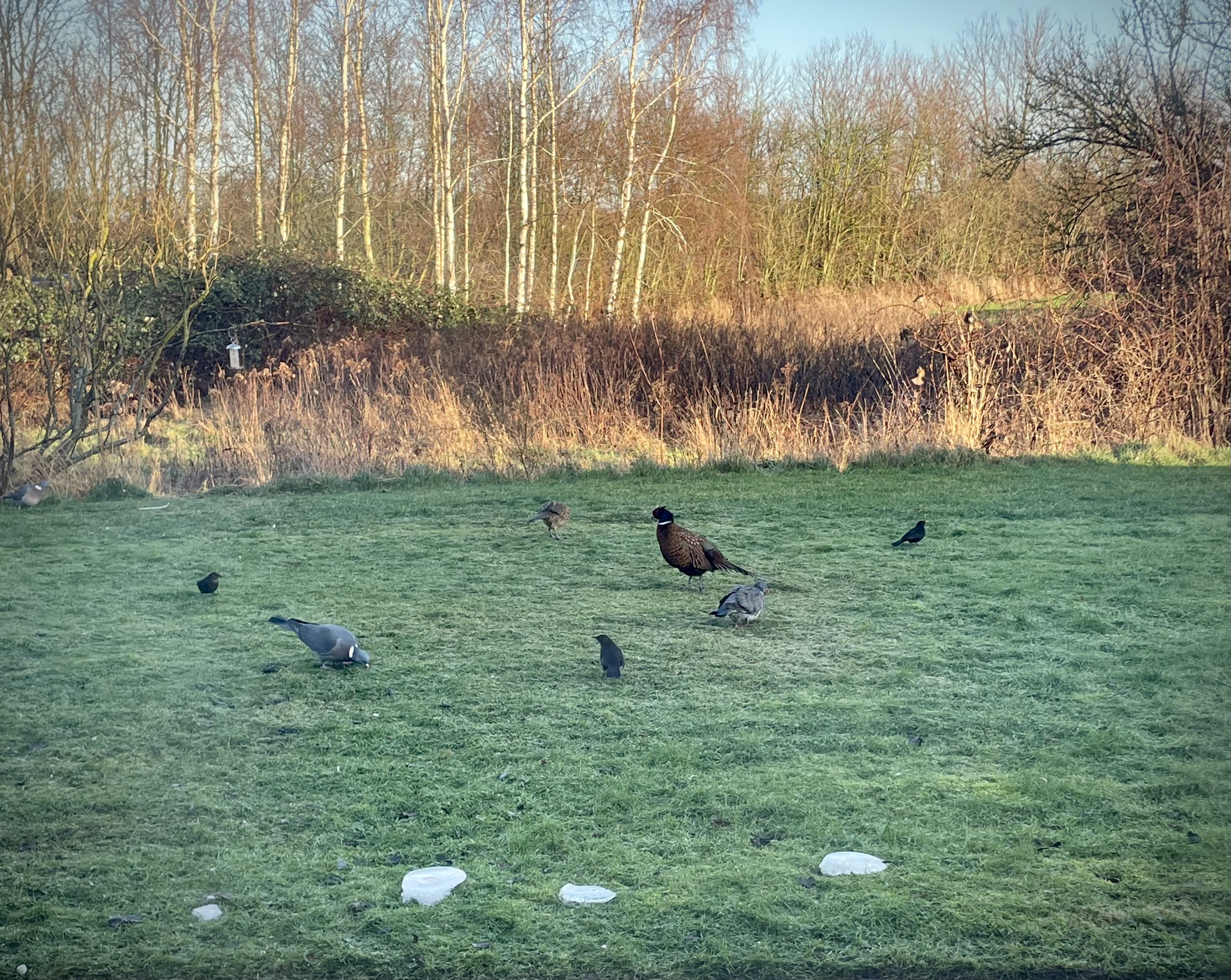 storeskrum støvsuger jorden for…fuglefoder (taget gennem plankeværk, afstand 4.5 m)