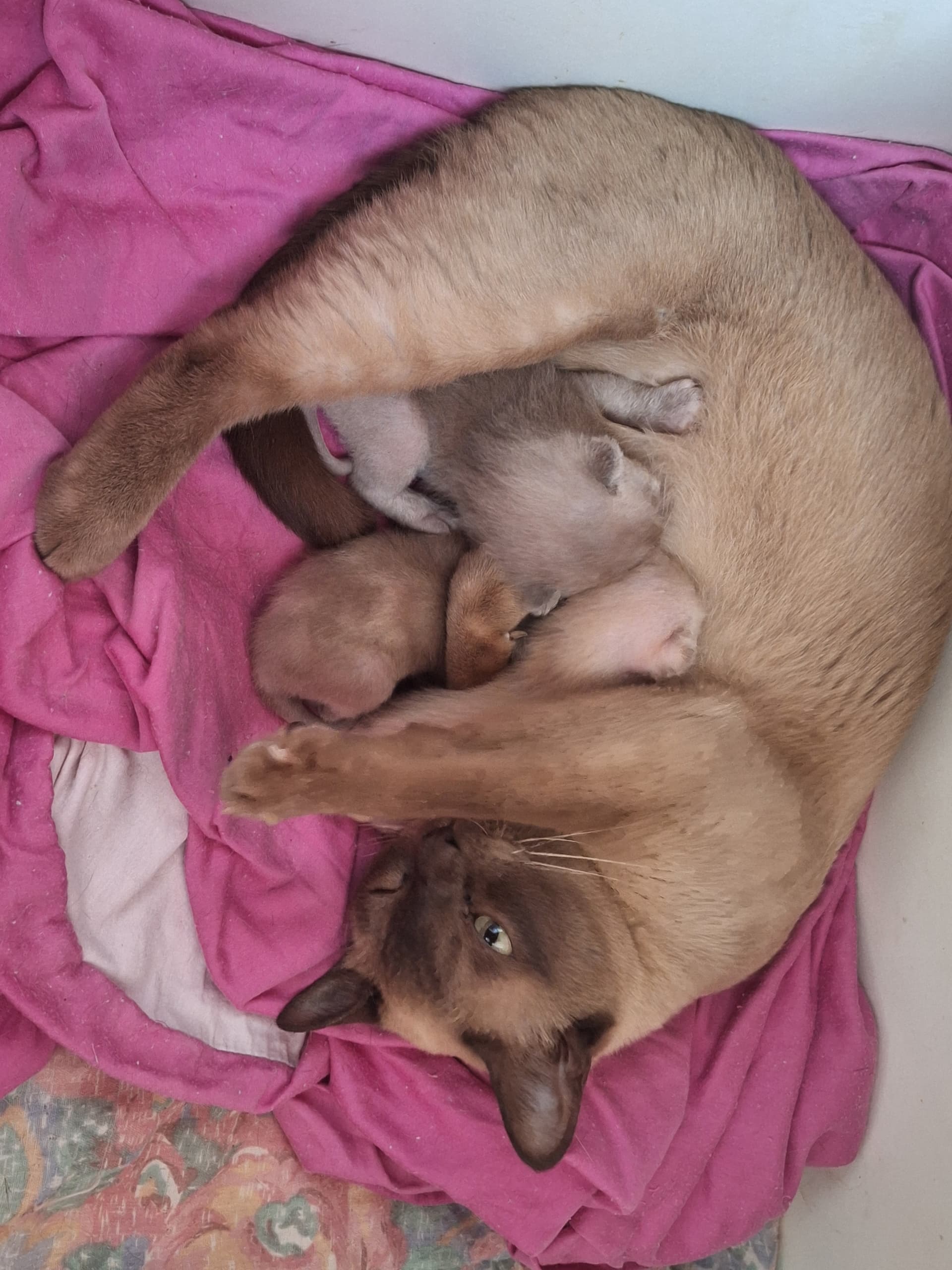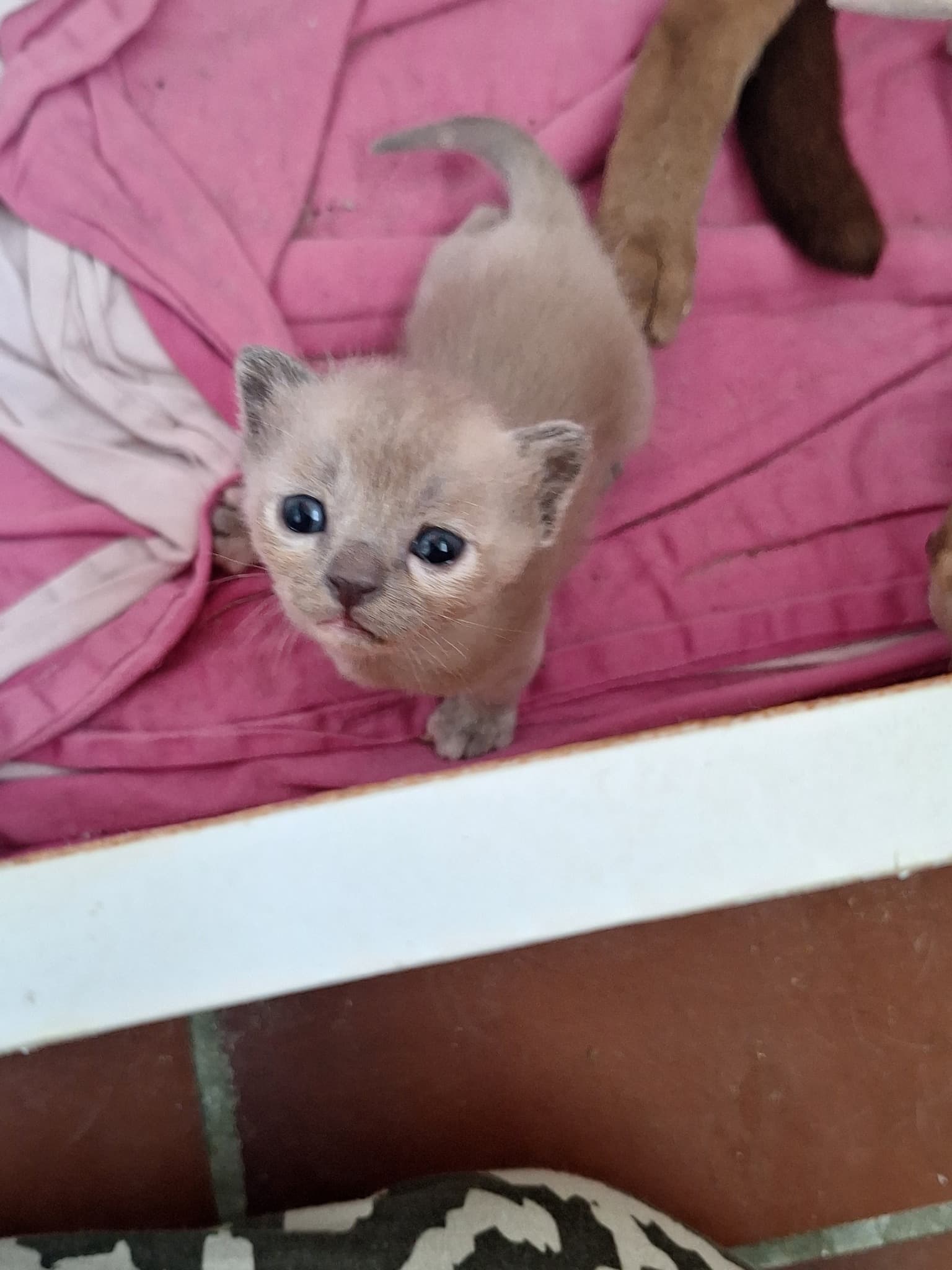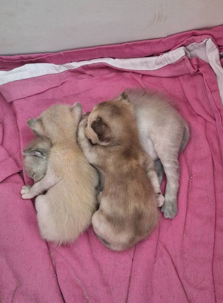 Det har killingerne benyttet sig af og den lyse er nu så stor og så ivrig efter at blive større, at jeg ikke er bekymret for den - og den blåtortie er ærligt talt direkte fed og har næsten tredoblet sin fødselsvægt på mindre end to uger!