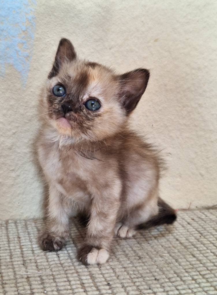 Halfpint hedder det bl.a. pga. hendes størrelse. Hun har altid været lille og efter at jeg havde mistet to killinger holdt jeg godt øje med hendes vægt. Hun er pt. ca. halv størrelse af Kissy, men jeg ved af erfaring, at det ikke nødvendigvis betyder, at hun bliver ved med at være lille, så hun kommer nok til at glæde en selskabskøber om nogle måneder