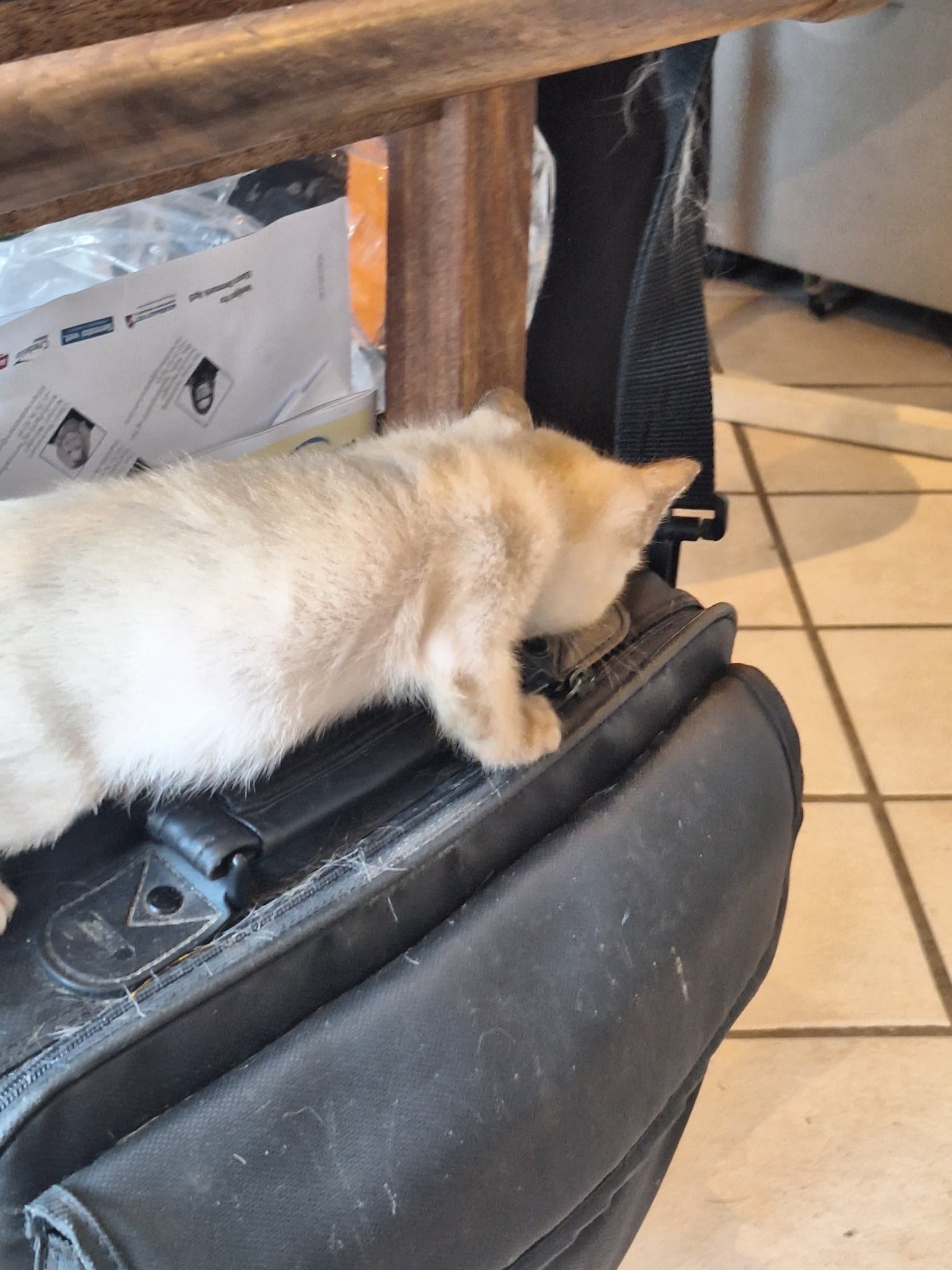 Og Halfpint tjekker dyrlægens taske, der hænger på siden