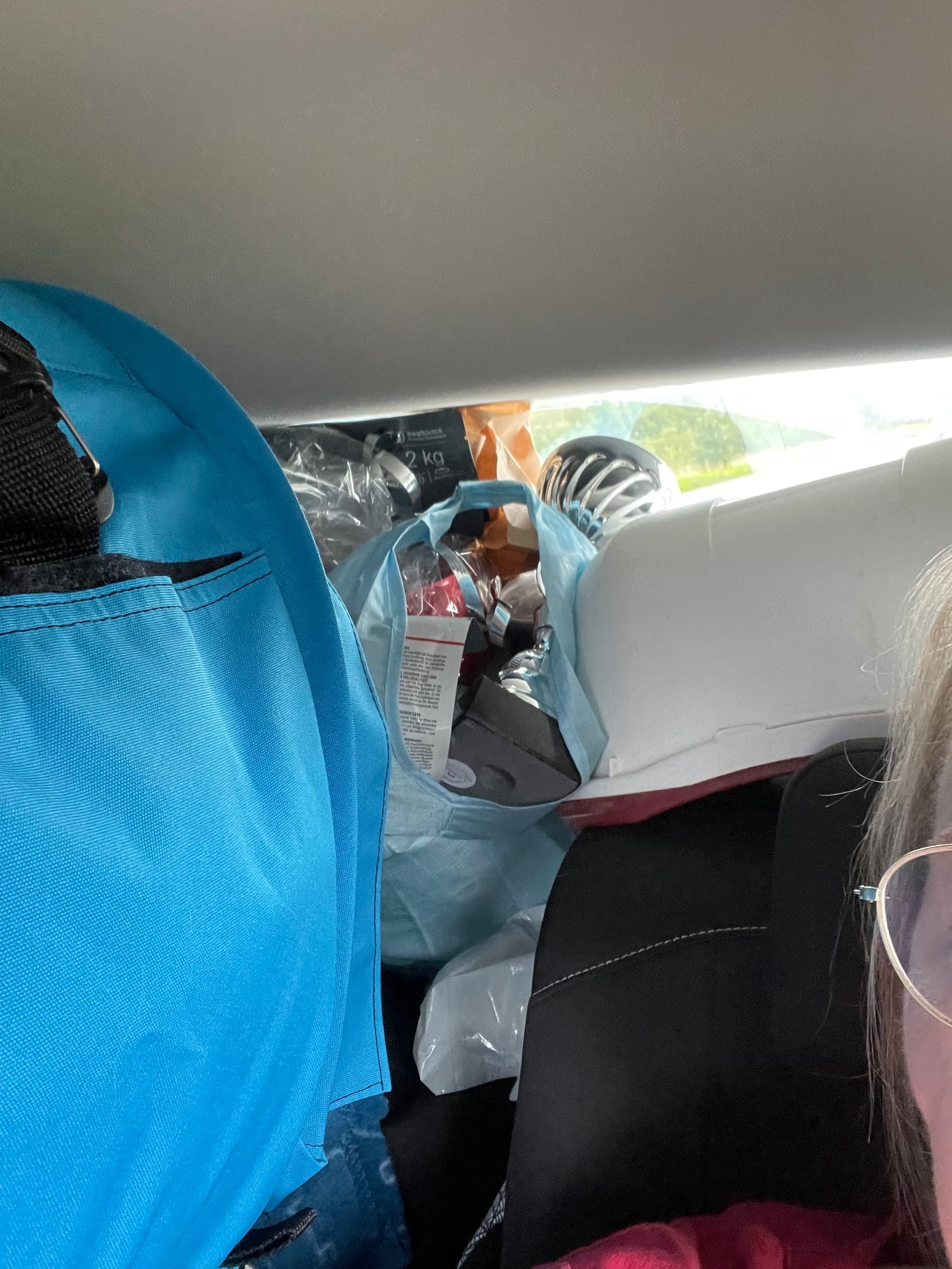 Sættet blev afleveret til stafetholdet i går aftes, og det betød så, at den sidste rest af udsyn, som Luise havde fra bagsædet, blev blokeret. Tak, @_DK_Sugieh , @Katho og @anne_p for at tage det med, selv om der ikke rigtigt var plads. Åbenbart havde “nogen” fyldt godt op med præmier ![]()