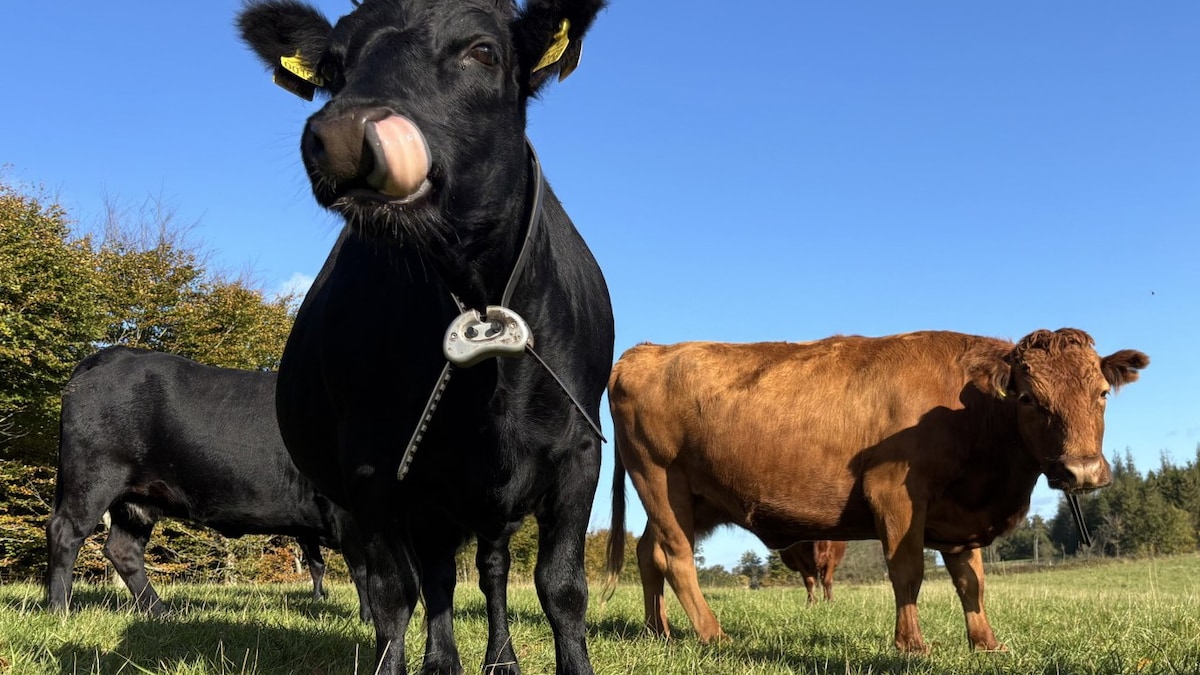Hun stod glædeligt og græssede med hegnstråden hen over ryggen ![]()