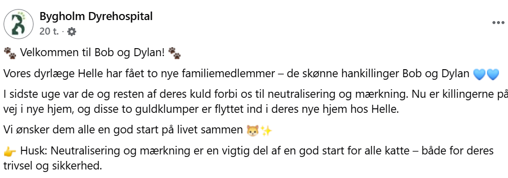 Jeg vil tro, man skal være bruger på Facebook for at se det. Men det er dette lille skriv + billeder af dem fra den dag, de blev kastreret. - stadig lidt skæve af narkosen, ser det ud til