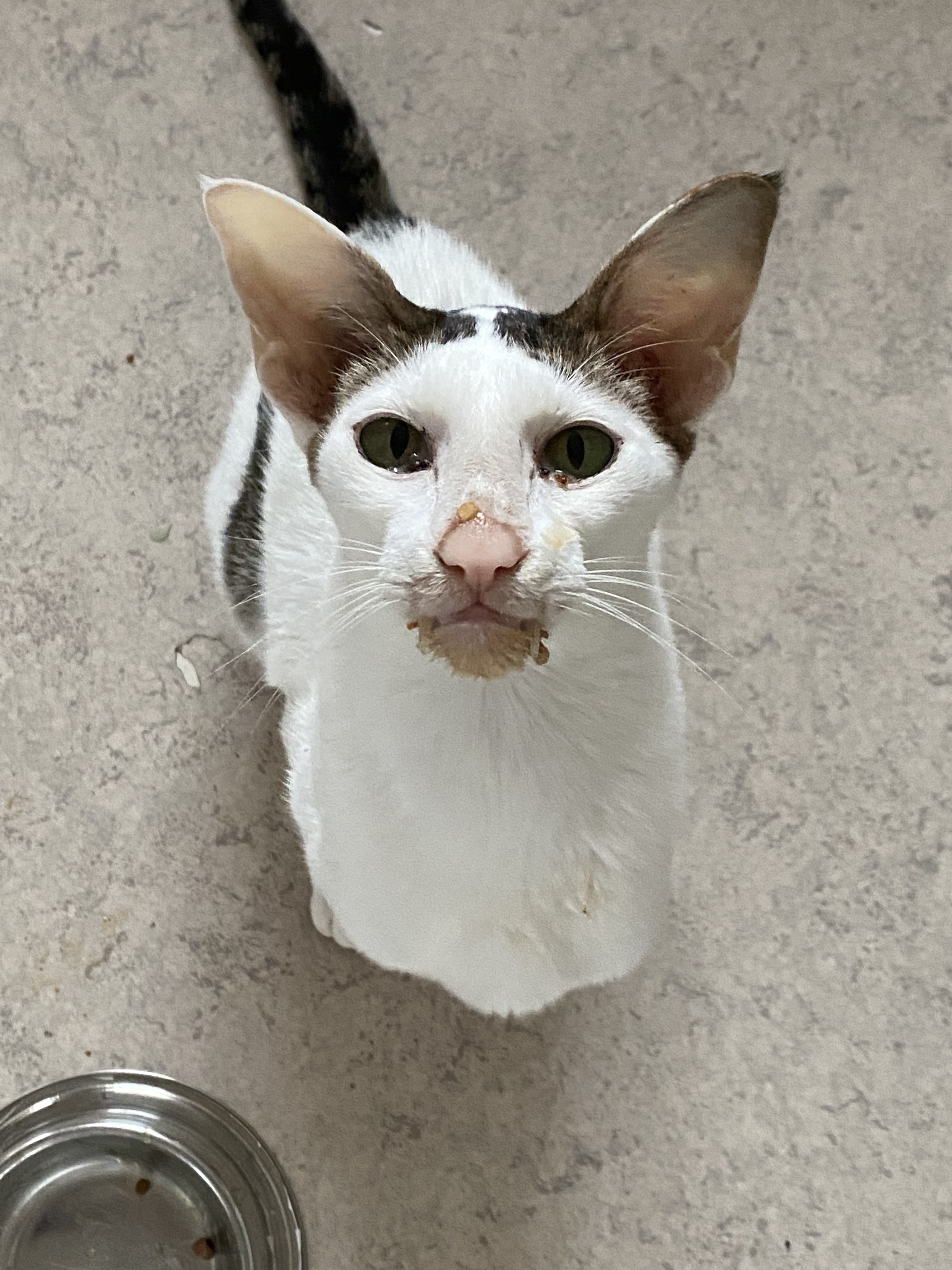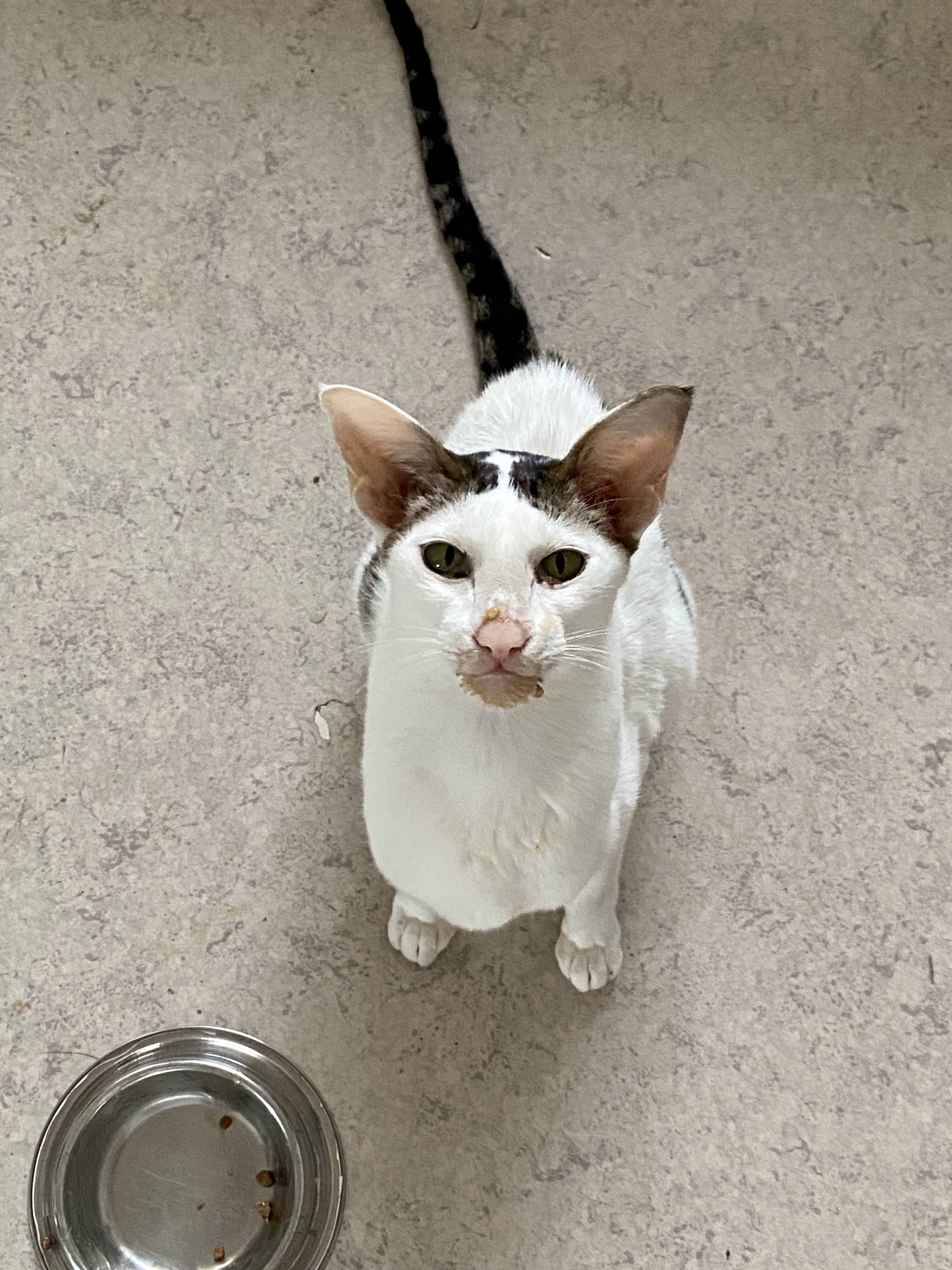 Jeg har Abbie (hvid Maine Coon), som nu er 16,5 år. I november 2022 blev hun pludseligt akut meget dårlig, rapidt vægttab, og gik fra foder og vand. Hun responderede dog på prednisolon, og en ultralydsscanning af mavehulen, som min dyrlæge selv kan udføre på dyrehospitalet, viste forandringer i tyndtarmsvæggen foreneligt med tyndtarms lymfom (lymfekræft i tarmen), som også passede meget godt med de fremviste symptomer og det meget hurtige respons på prednisolon.