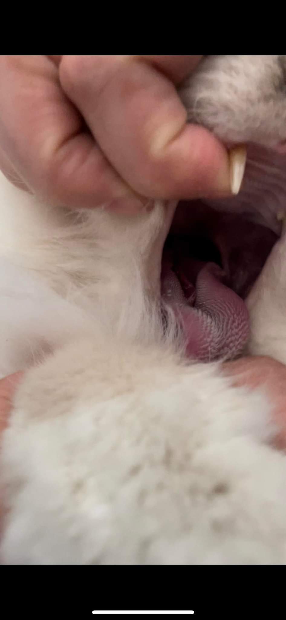 Hvad kan give en flænge så langt tilbage på tungen (det er meget langt tilbage og går ned i halsen) den kan ikke ses når man normalt tjekker mund, men ved at krænge munden langt op, mens tungen fastholdes let (undskyld lille misling) Flængen er dyb, men bløder ikke længere. (Der var blod på katten, hvilket jeg ikke kunne finde årsagen til først) Der er dyrlægetid i morgen tidlig, men jeg er ret paf over, hvad kan lave en flænge der. I mit hoved kun noget han har slugt. Man kan ikke se hele flængen her, for den går langt ned.