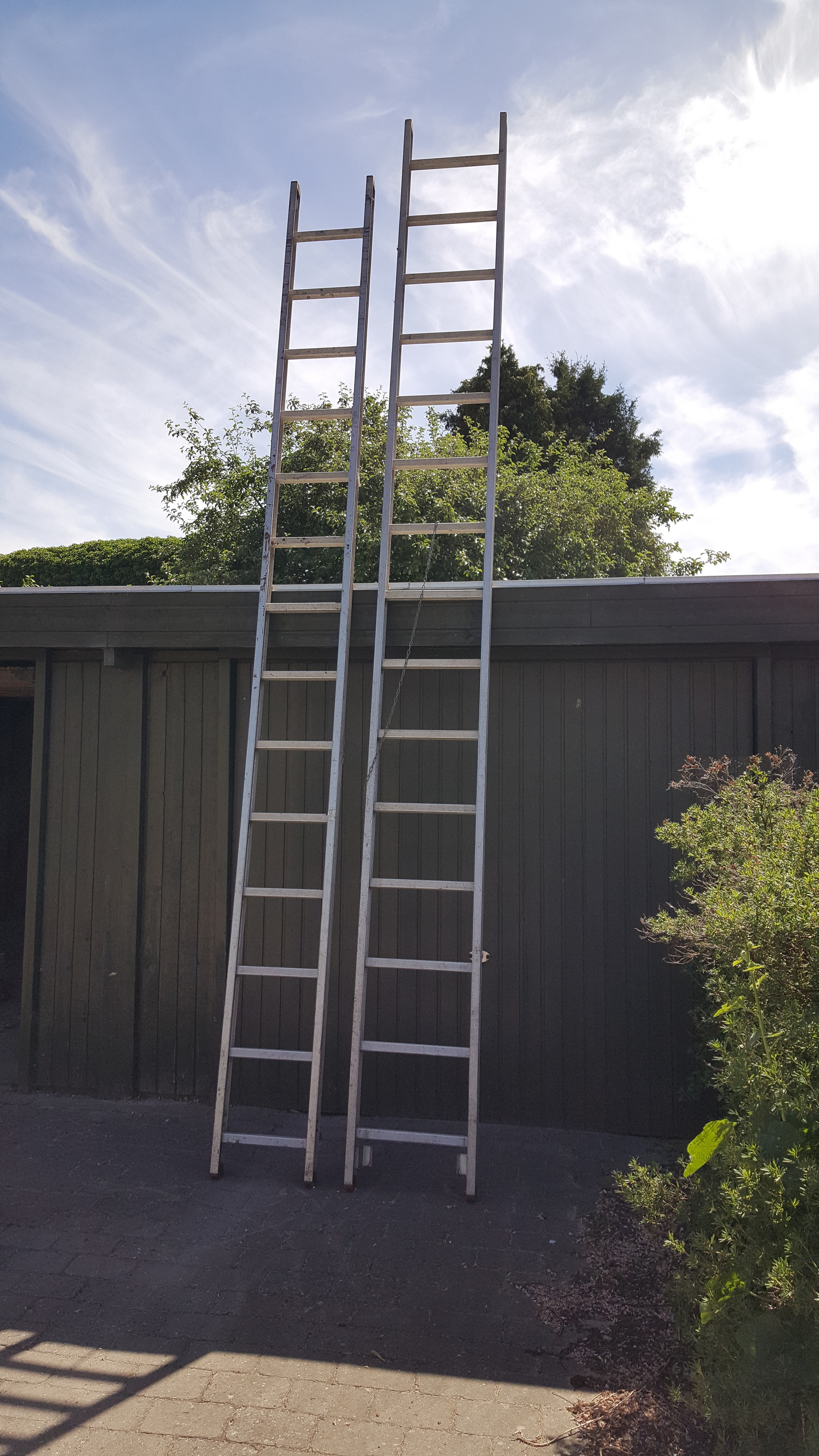 Skydestige i aluminium - 4,6 meter og 4,3 meter, rækker dermed godt 7,5 sammensat. Priside 1200,-