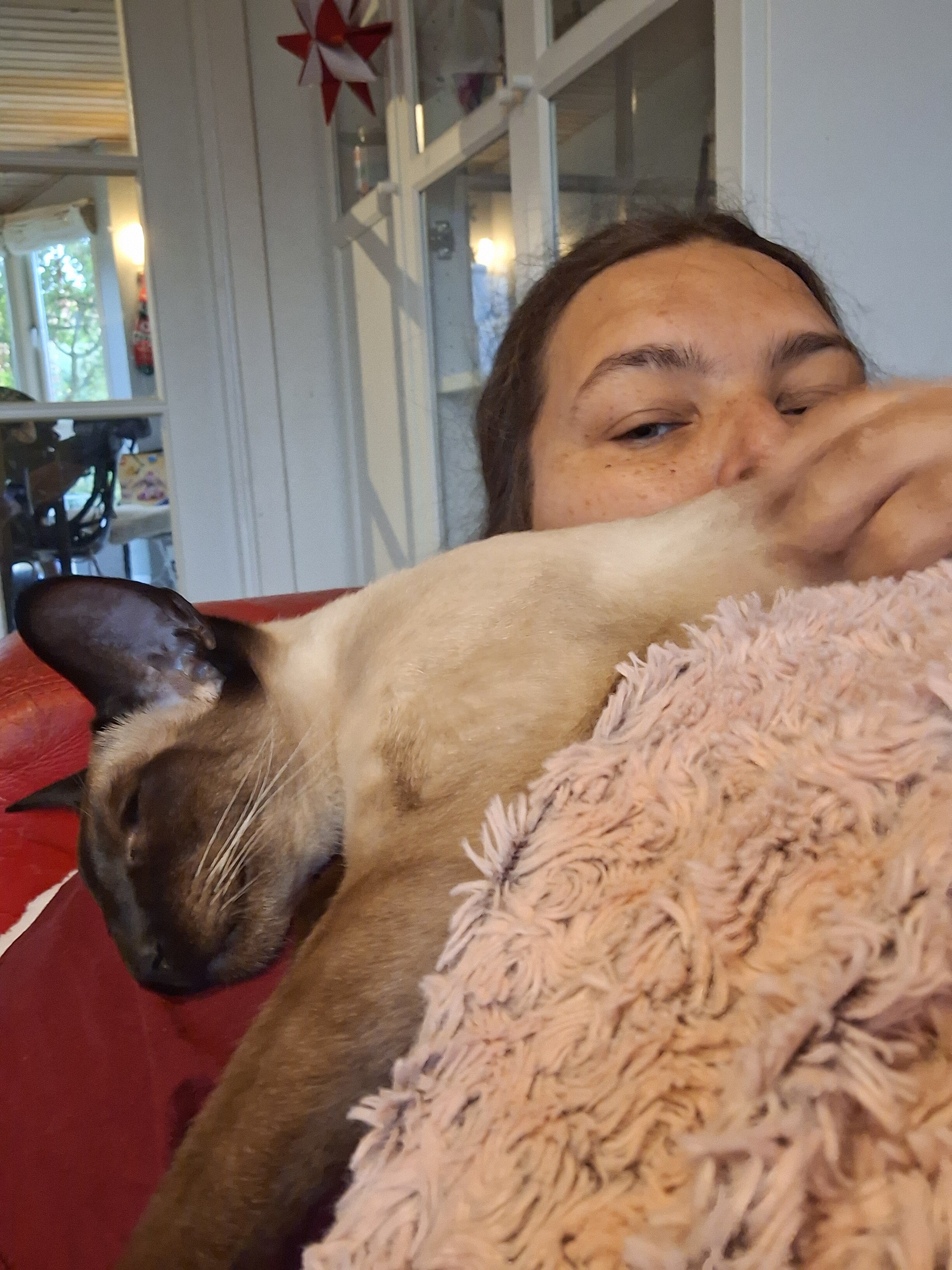 Hun har nu hjulpet med at finde slik til vores fyld selv julekaldere og hjælper mig nu med at få en dejlig lur