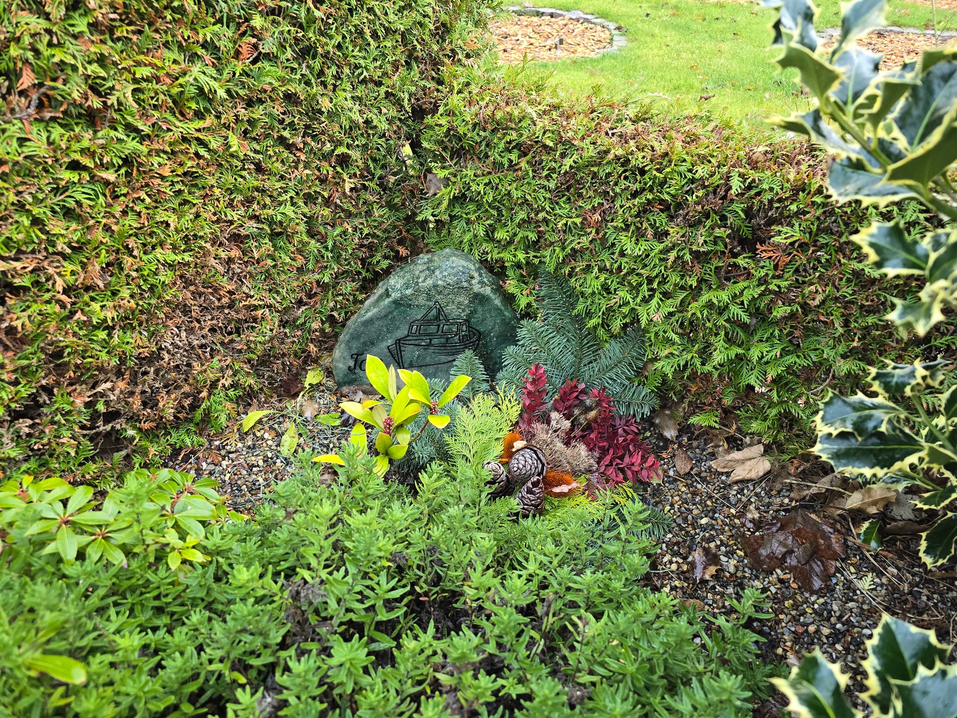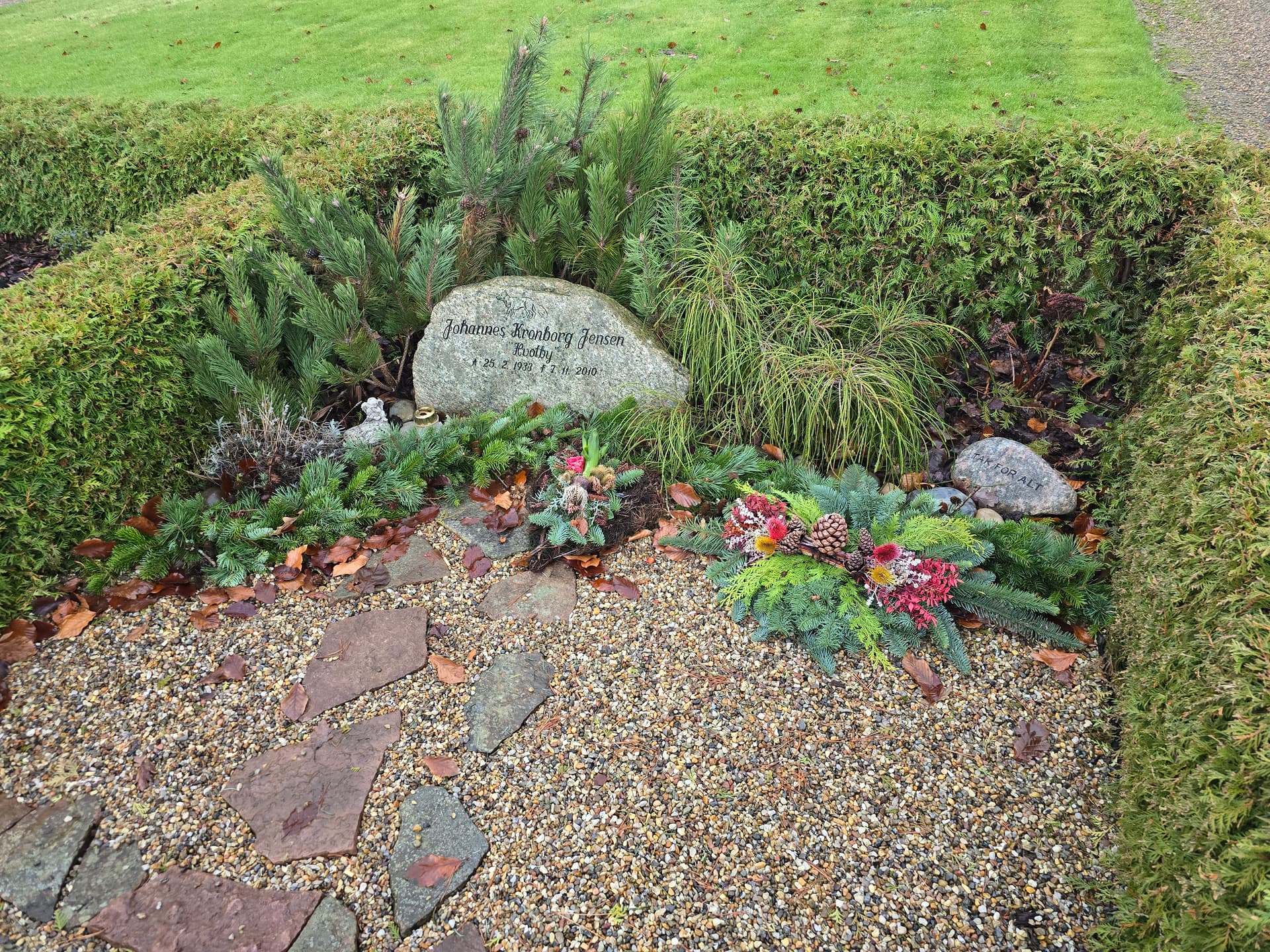Min far ligger på samne gravsted som min søsters datter, desværre har de lavet beplantningen, så hans smukke sten bliver dækket