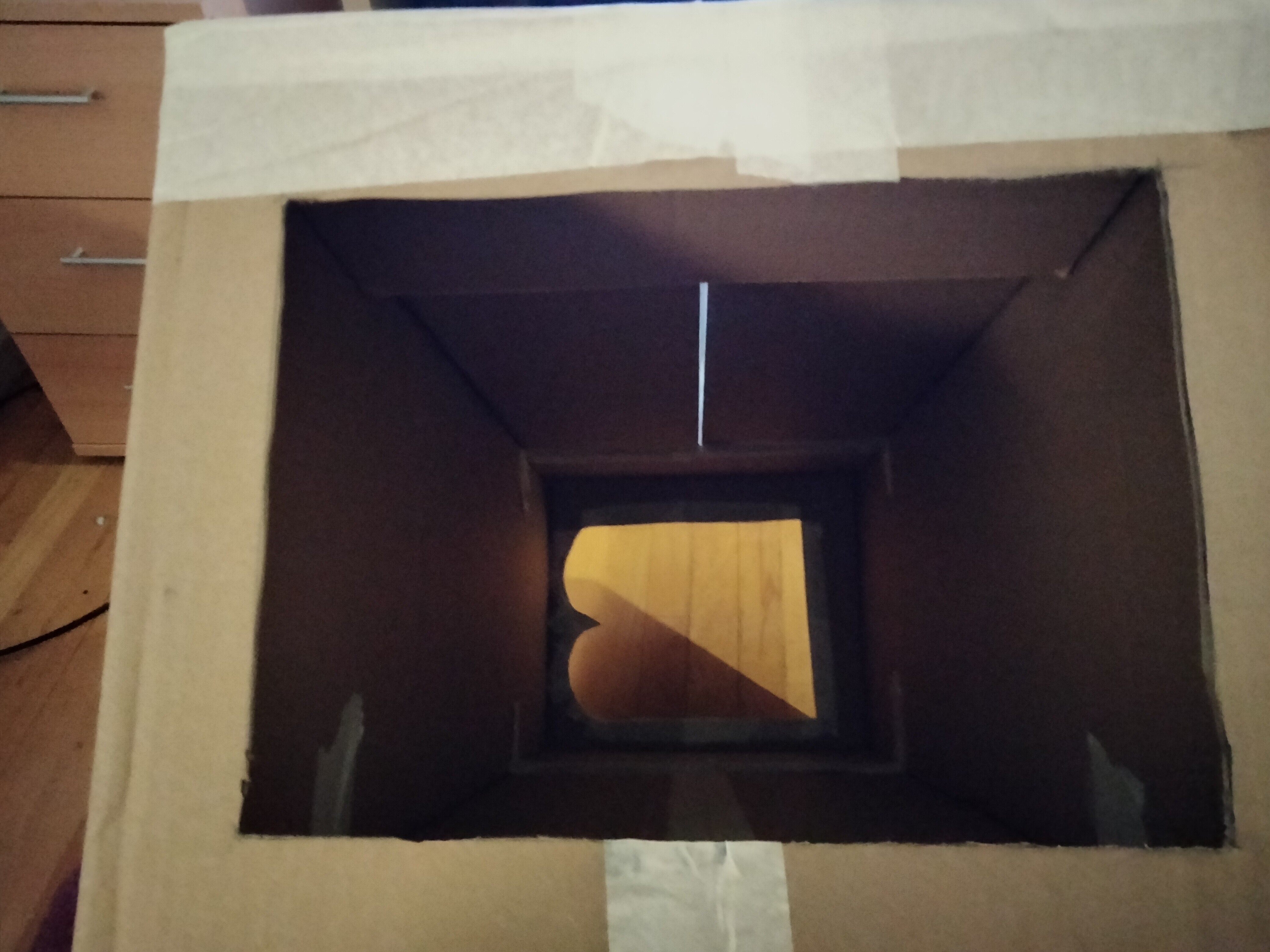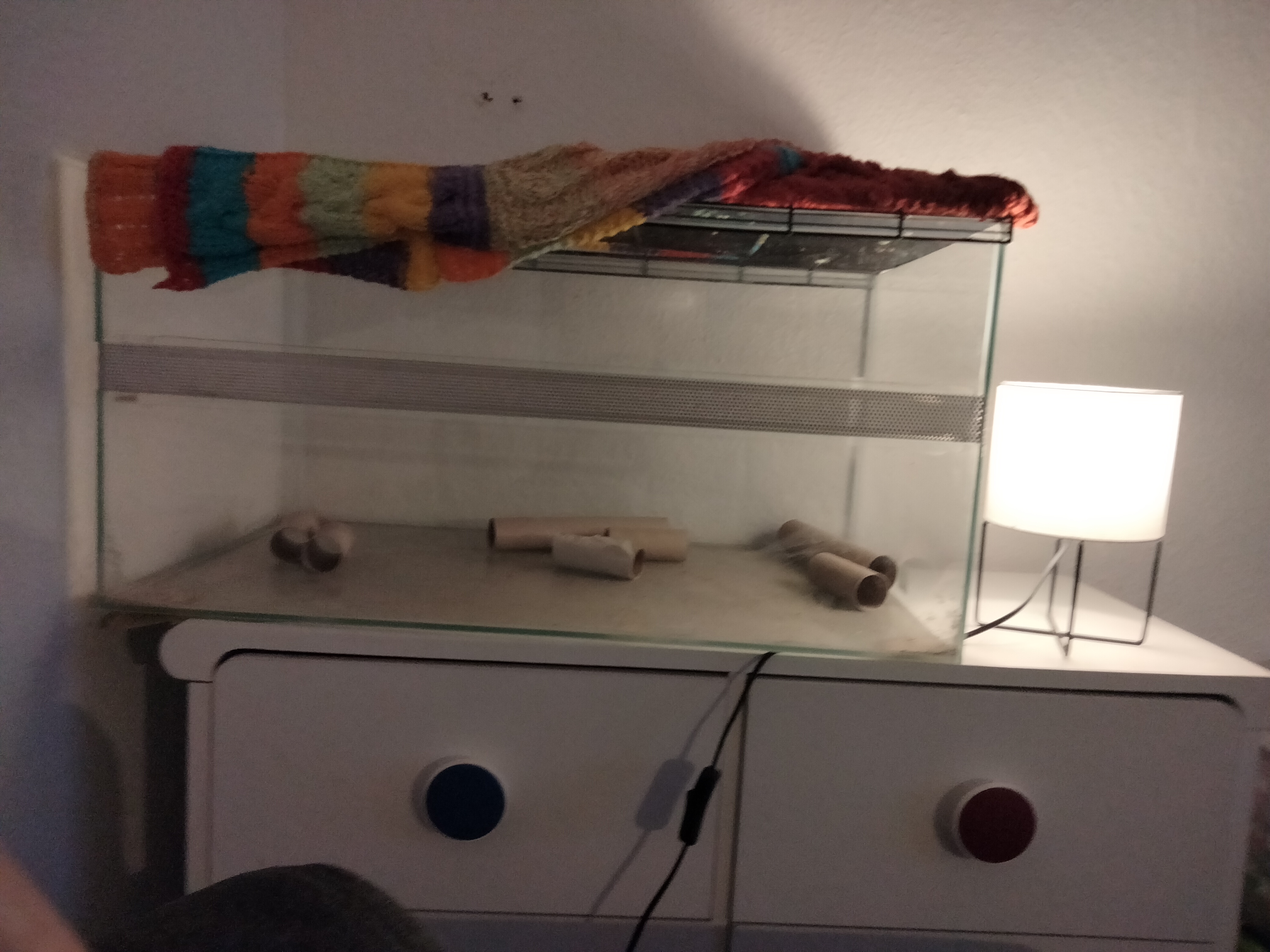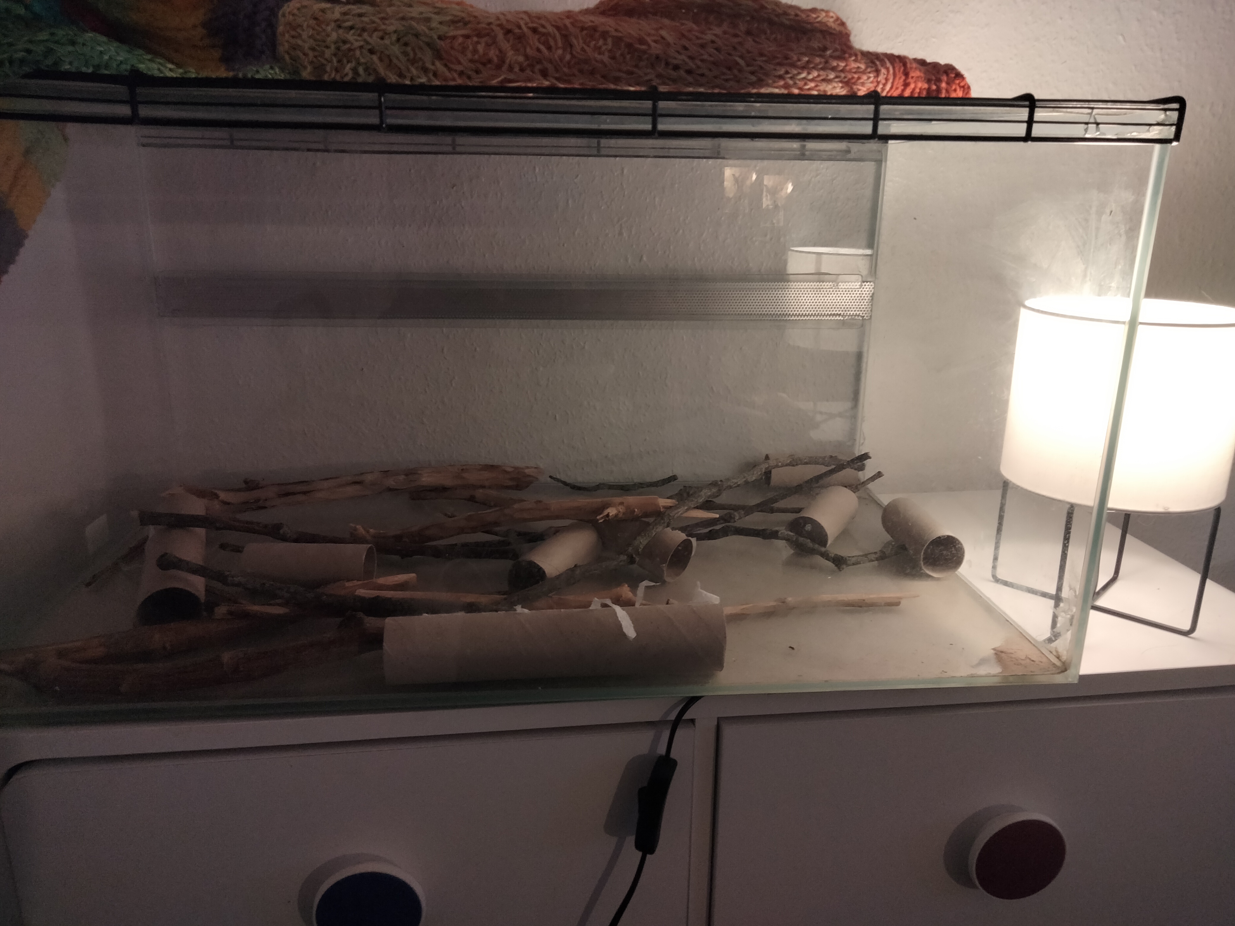 Jeg har vendt buret, så den side uden lufthuller vender ud mod mig ![]()