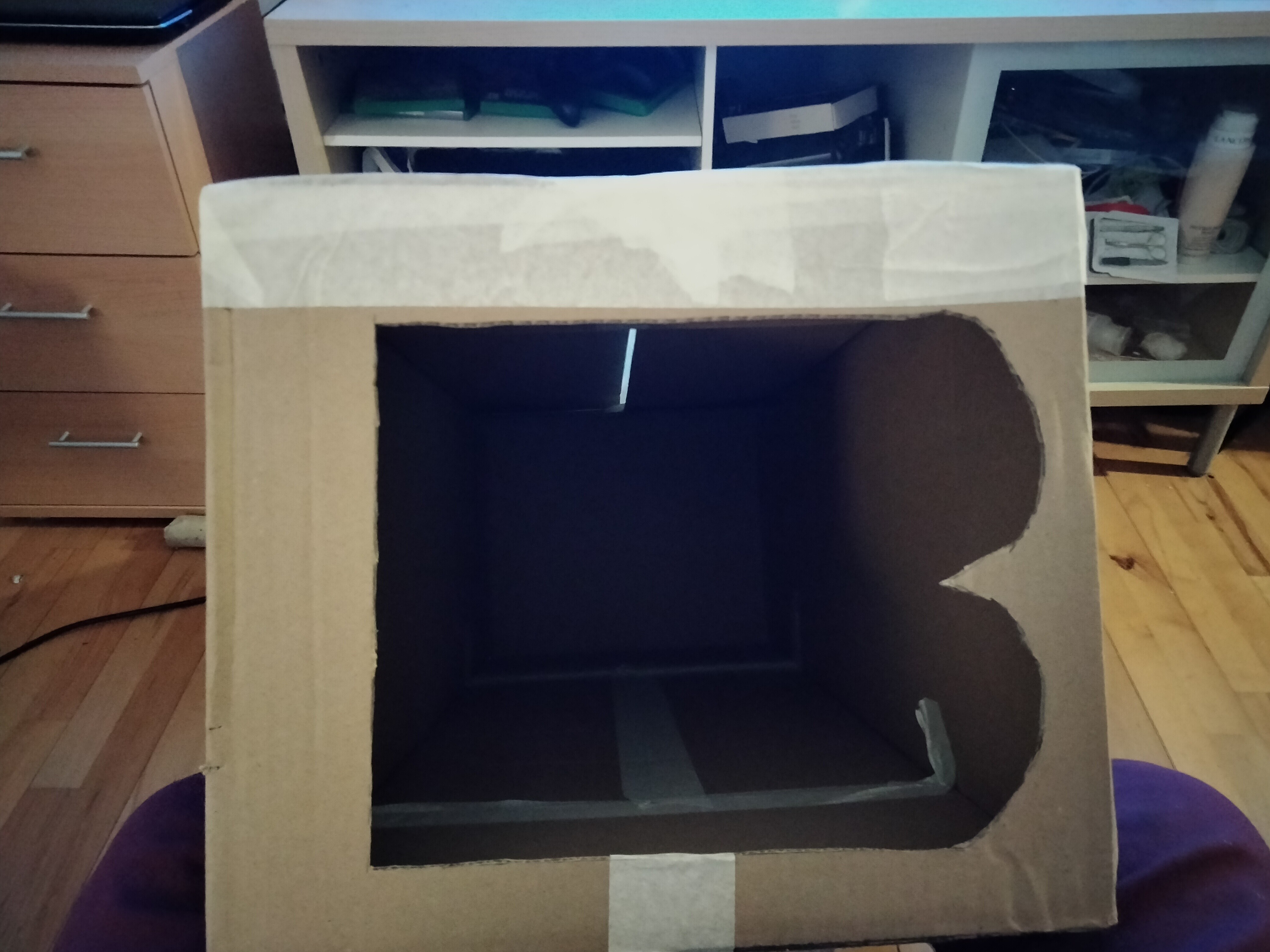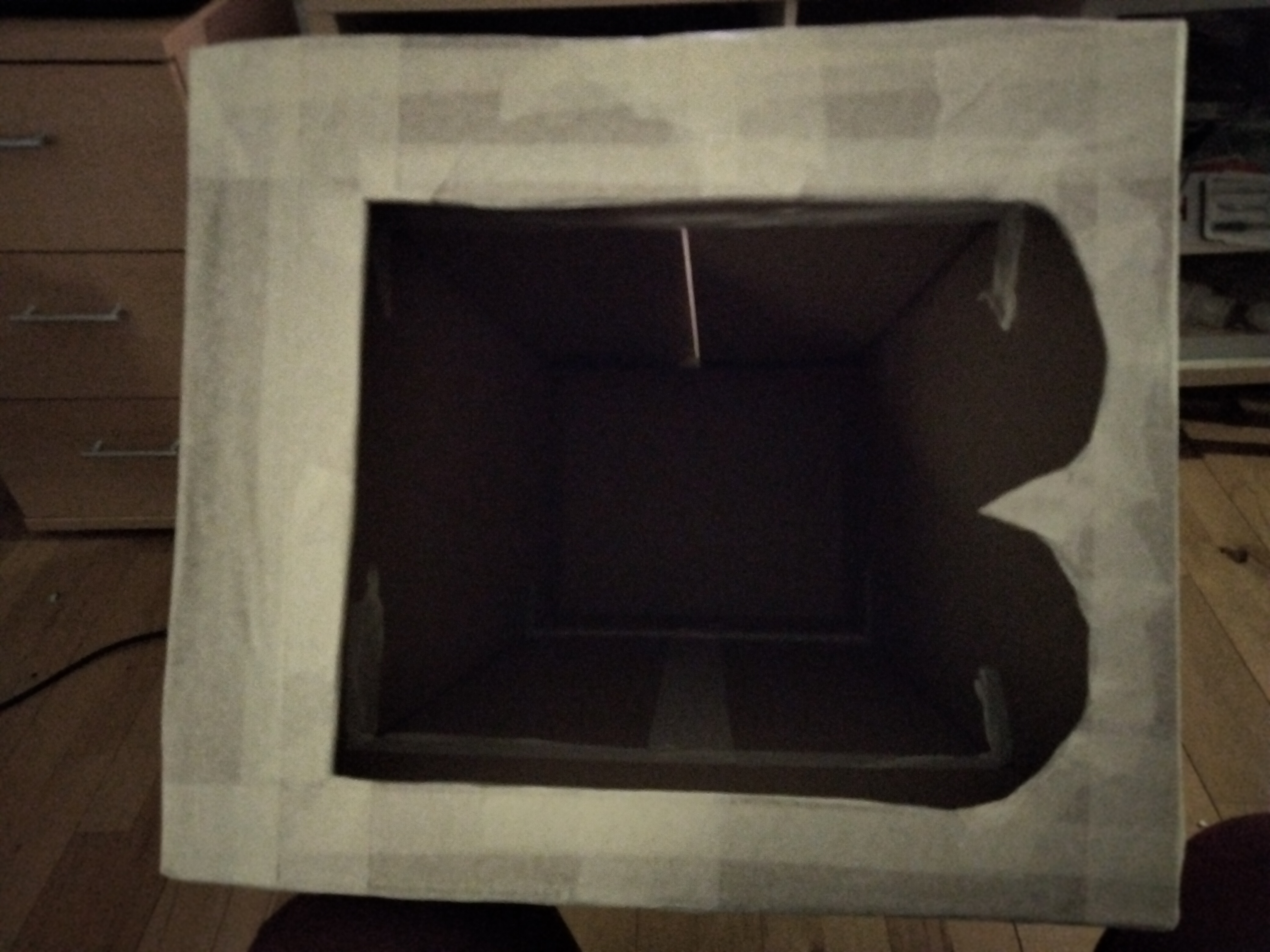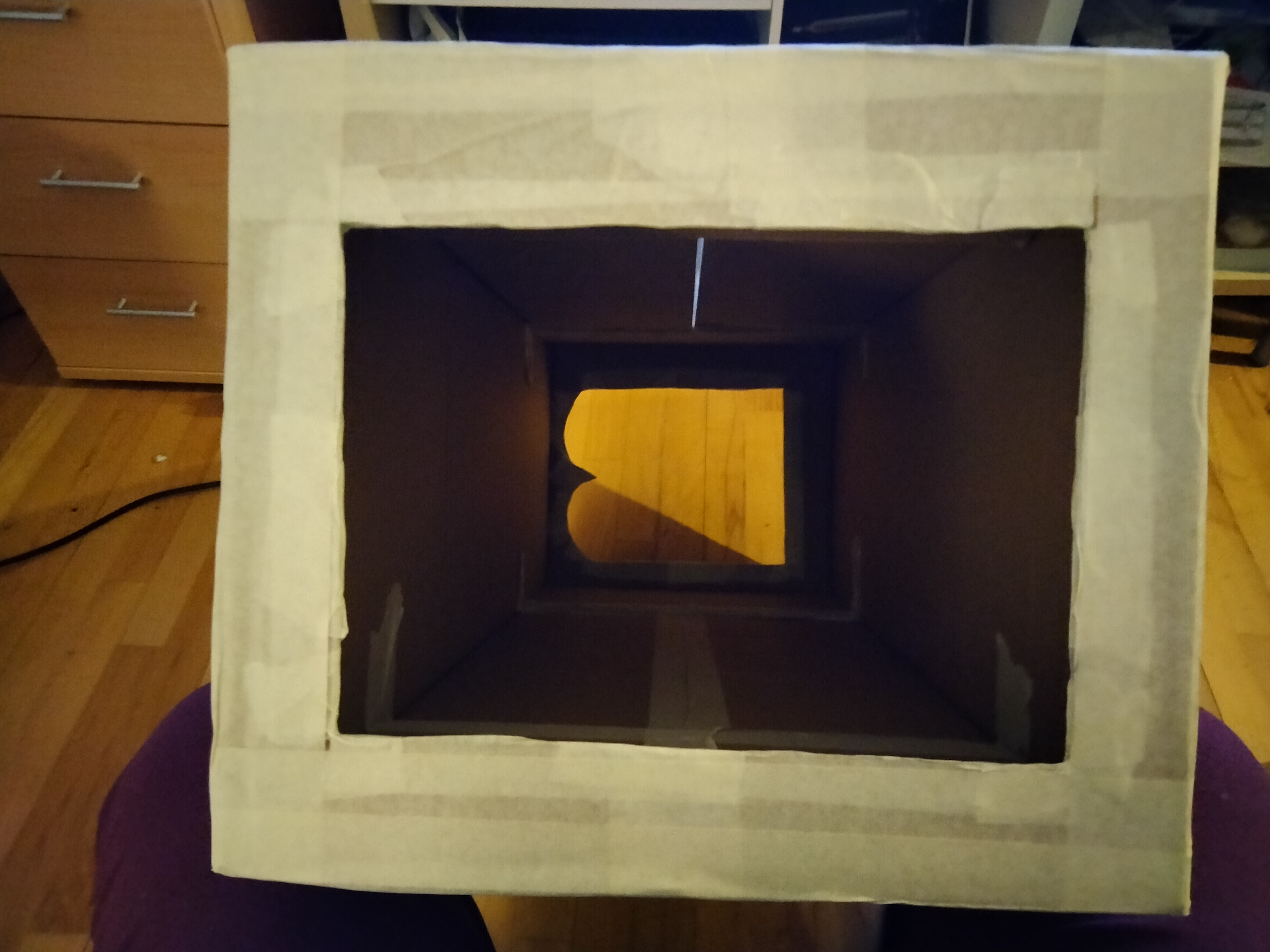 Jeg har vendt buret, så den side uden lufthuller vender ud mod mig ![]()