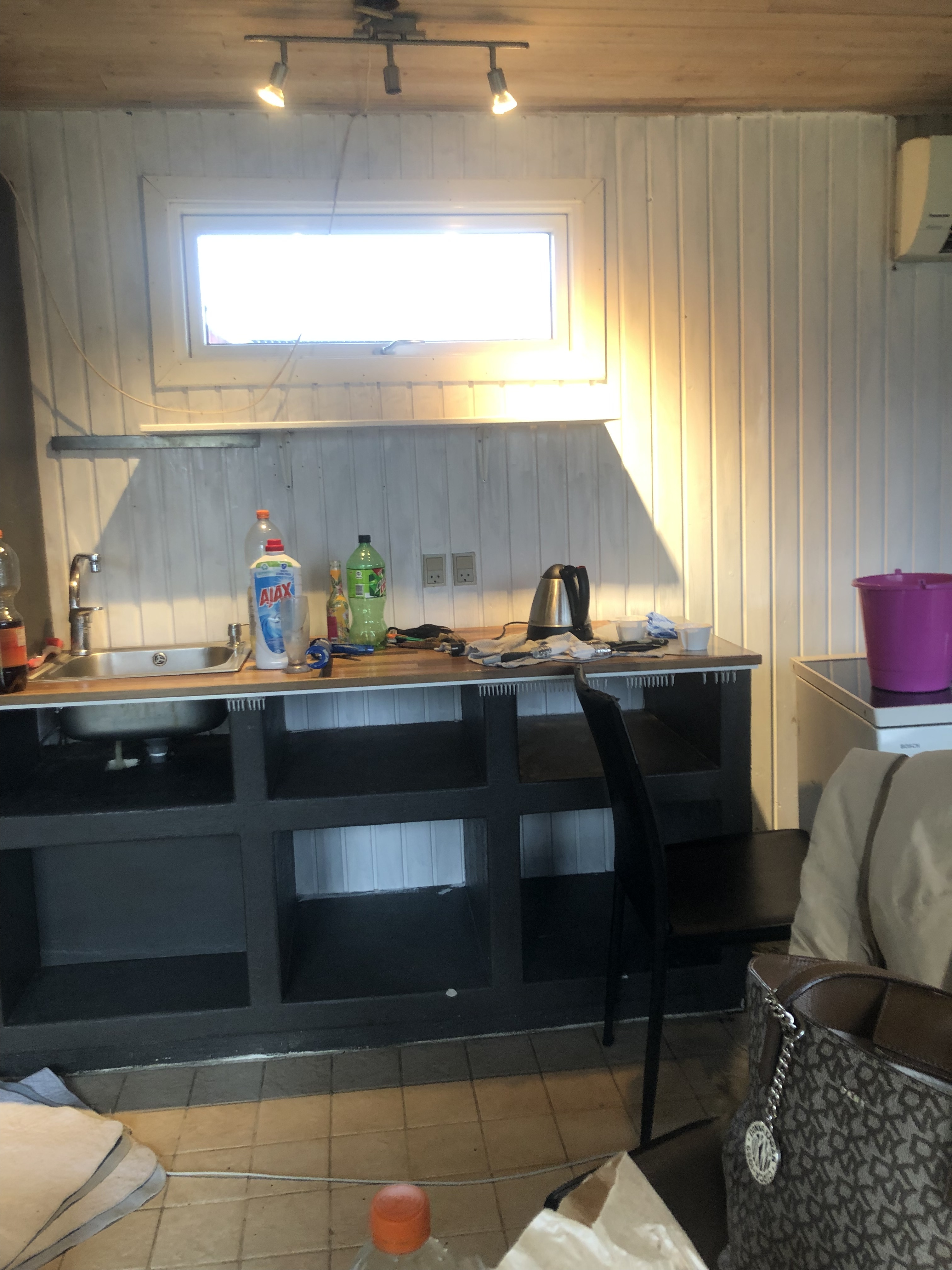 Den er ikke helt oppe af væggen, plus der er tremmetop ![]()