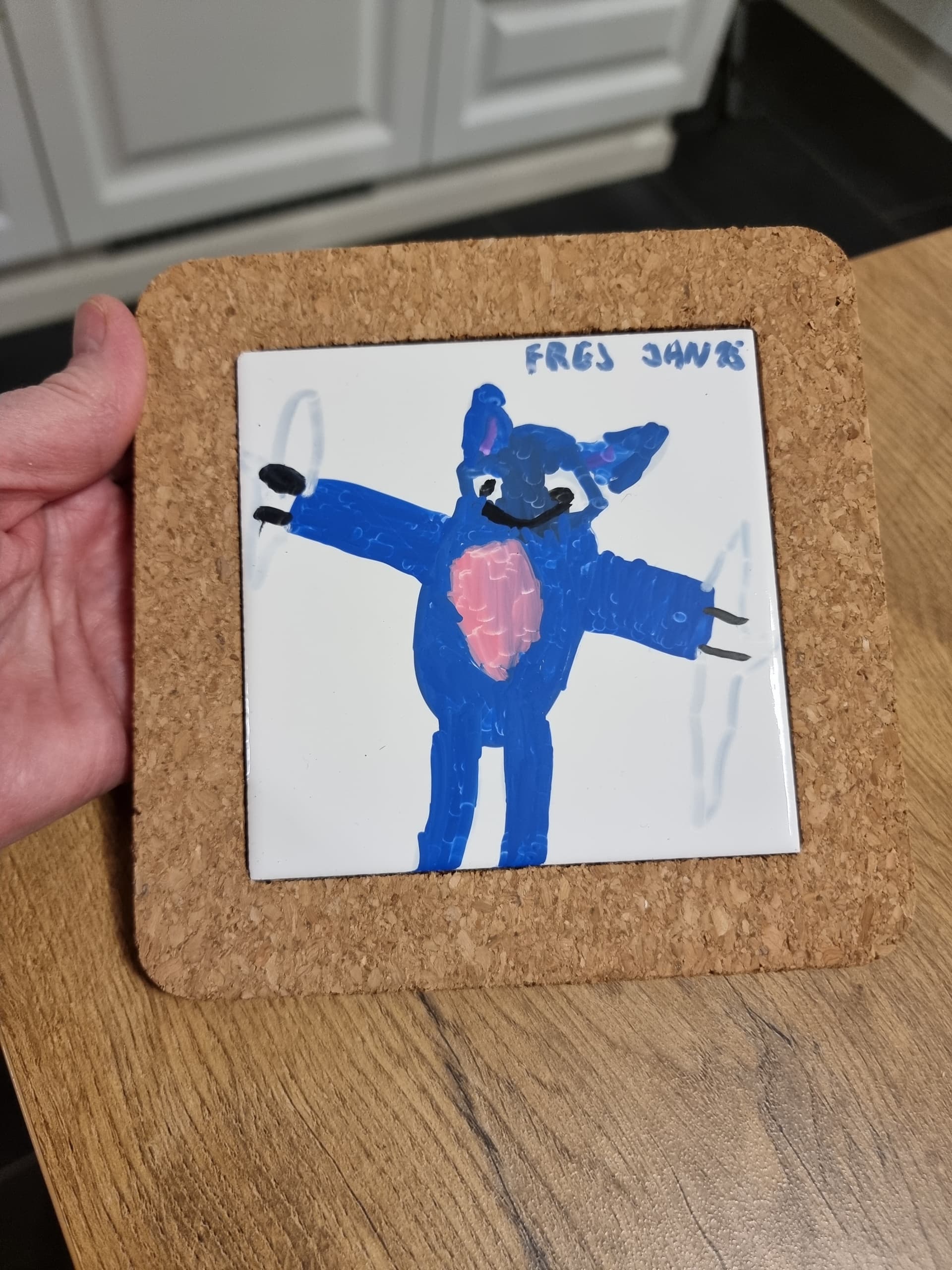 Frej har i dag malet denne til os. Men hvordan behandler jeg den bedst, så den fine tegning ikke bliver ødelagte.