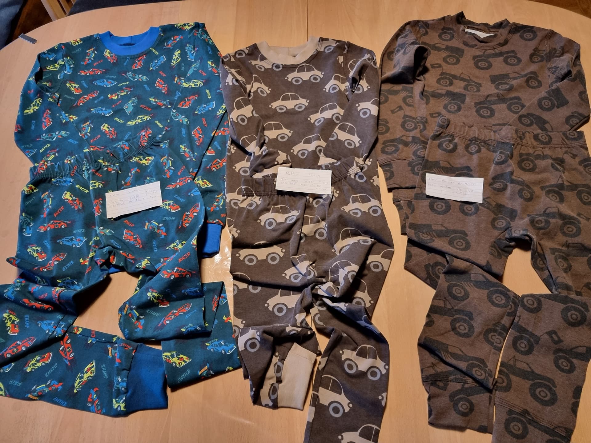 Samt en pakke med bluser i samme stof, som de brune til vickis drenge.