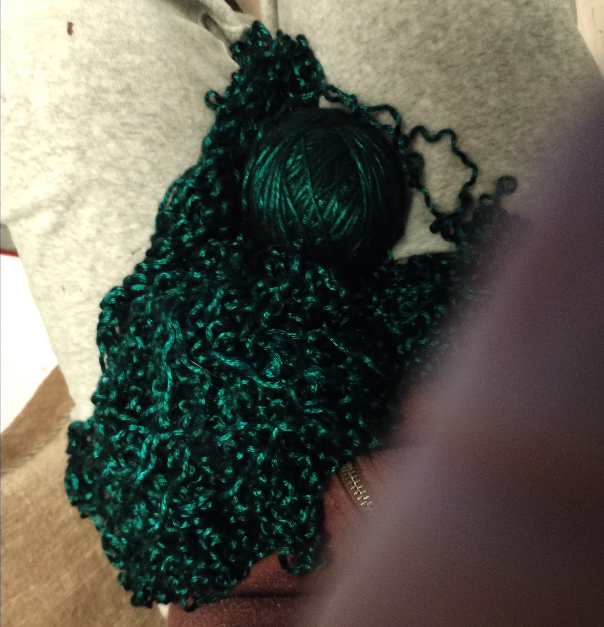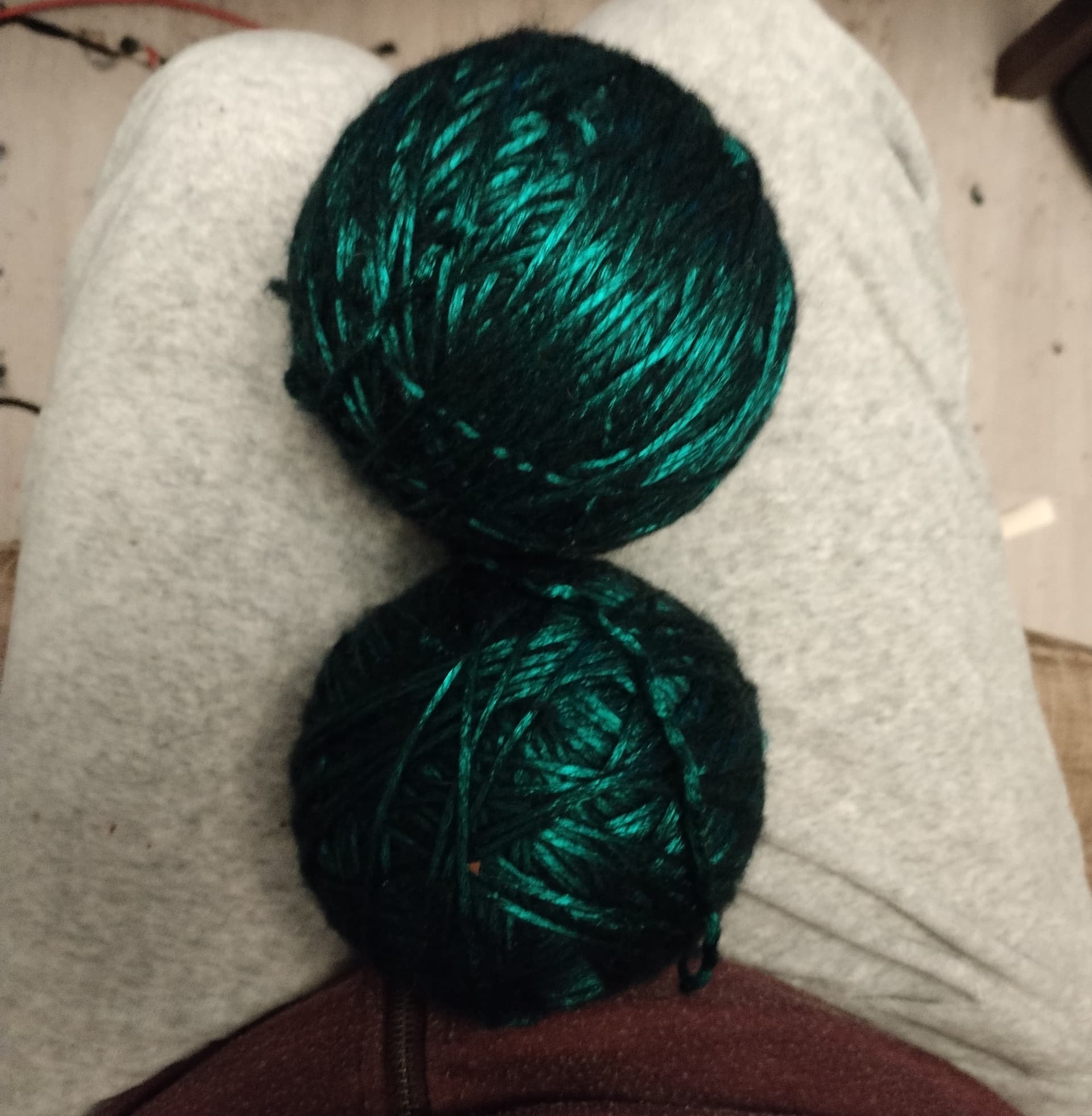 Den skulle være flaskegrøn og det var den skam også, det jeg ikke kunne se på billederne hos sælger var, at den var strikket i meget skinnende garn ![]()