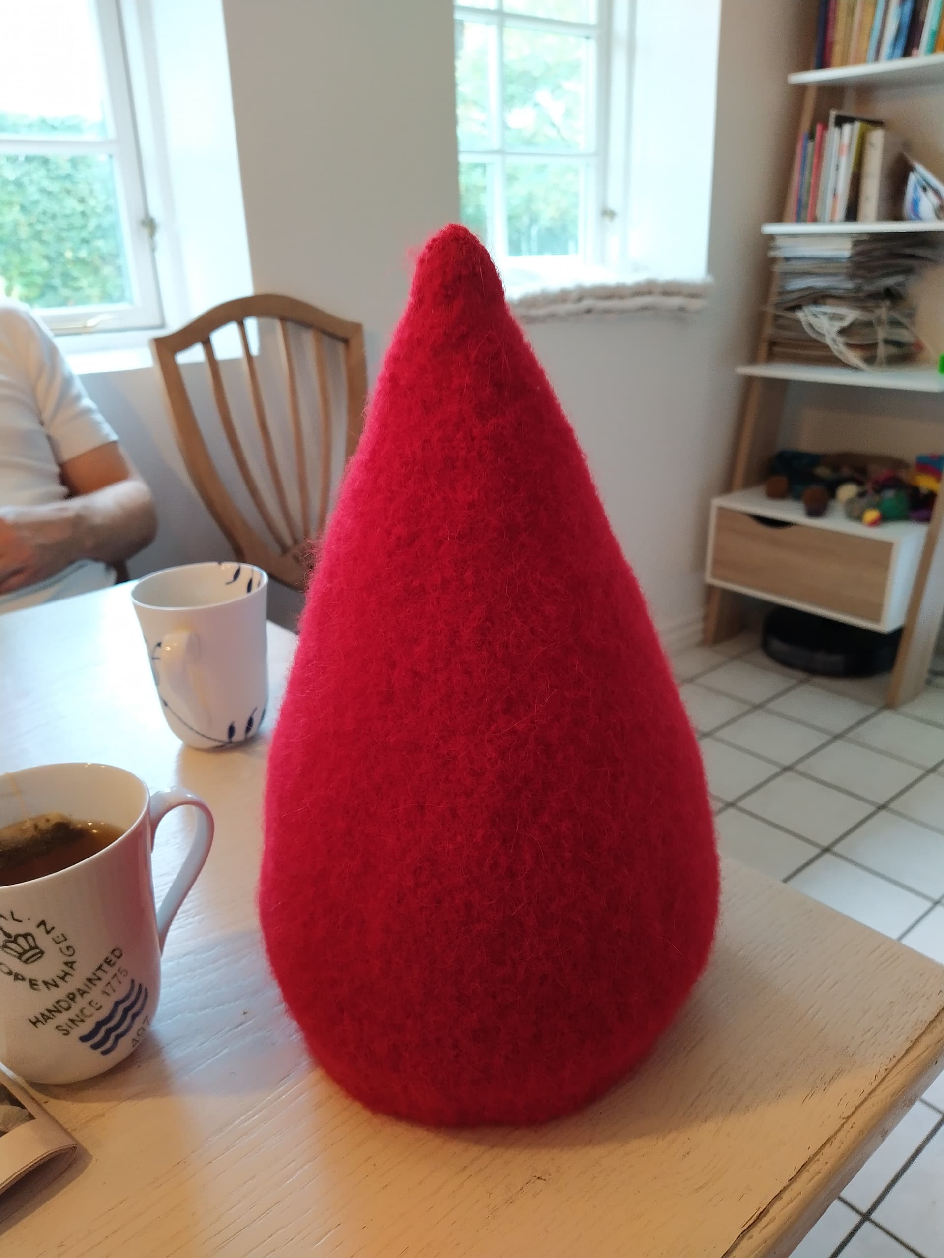 Jeg har købt en opskrift på en strikket og derefter filtet nissehue.