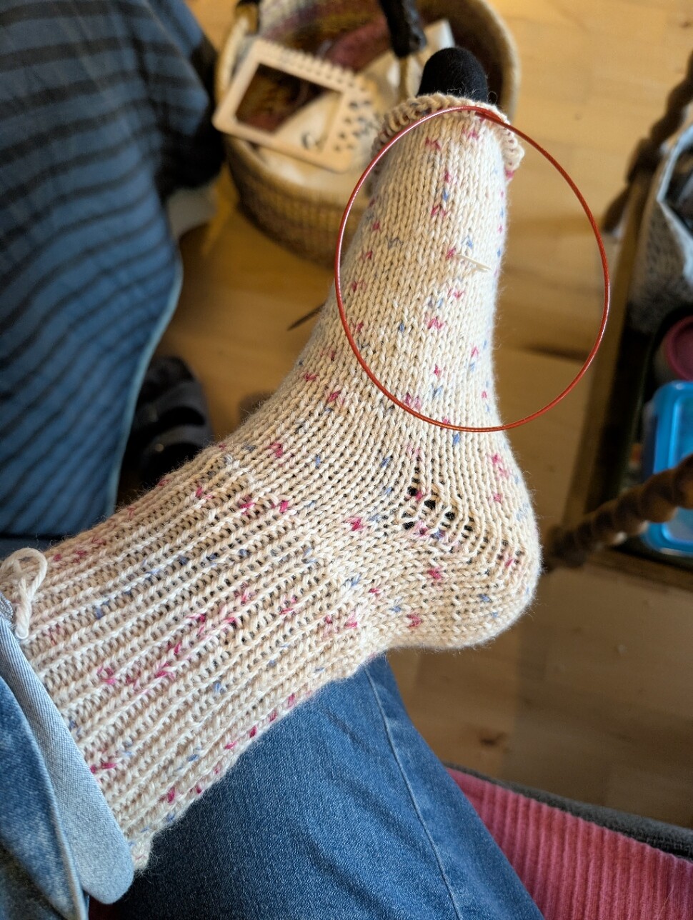 Men nu er jeg næsten færdig med min første rigtige strømpe med hæl…