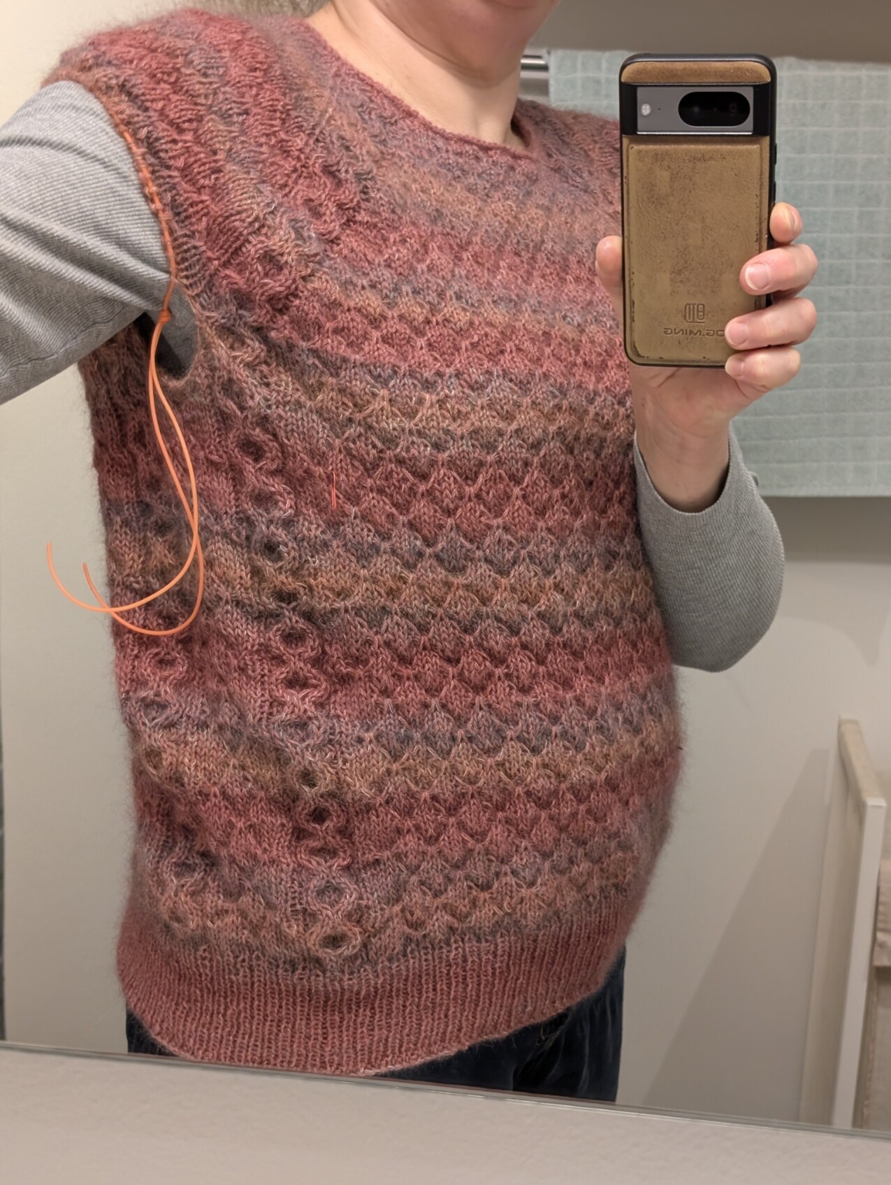 Ja, man sidder med meget til sidst, når man strikker ærmerne.