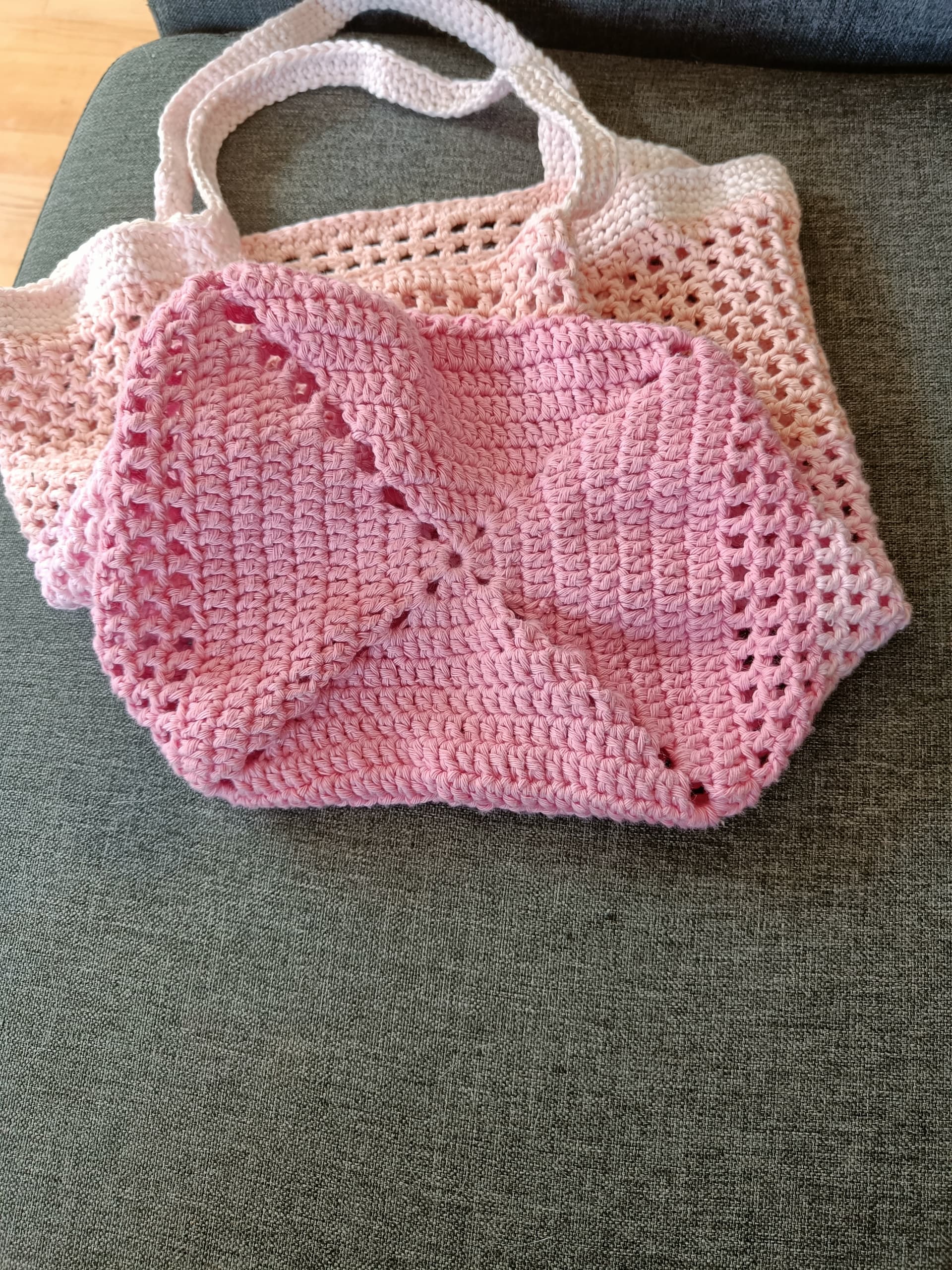 Den er hæklet i 8/8 bomuld og med samme masketal som karkluden.