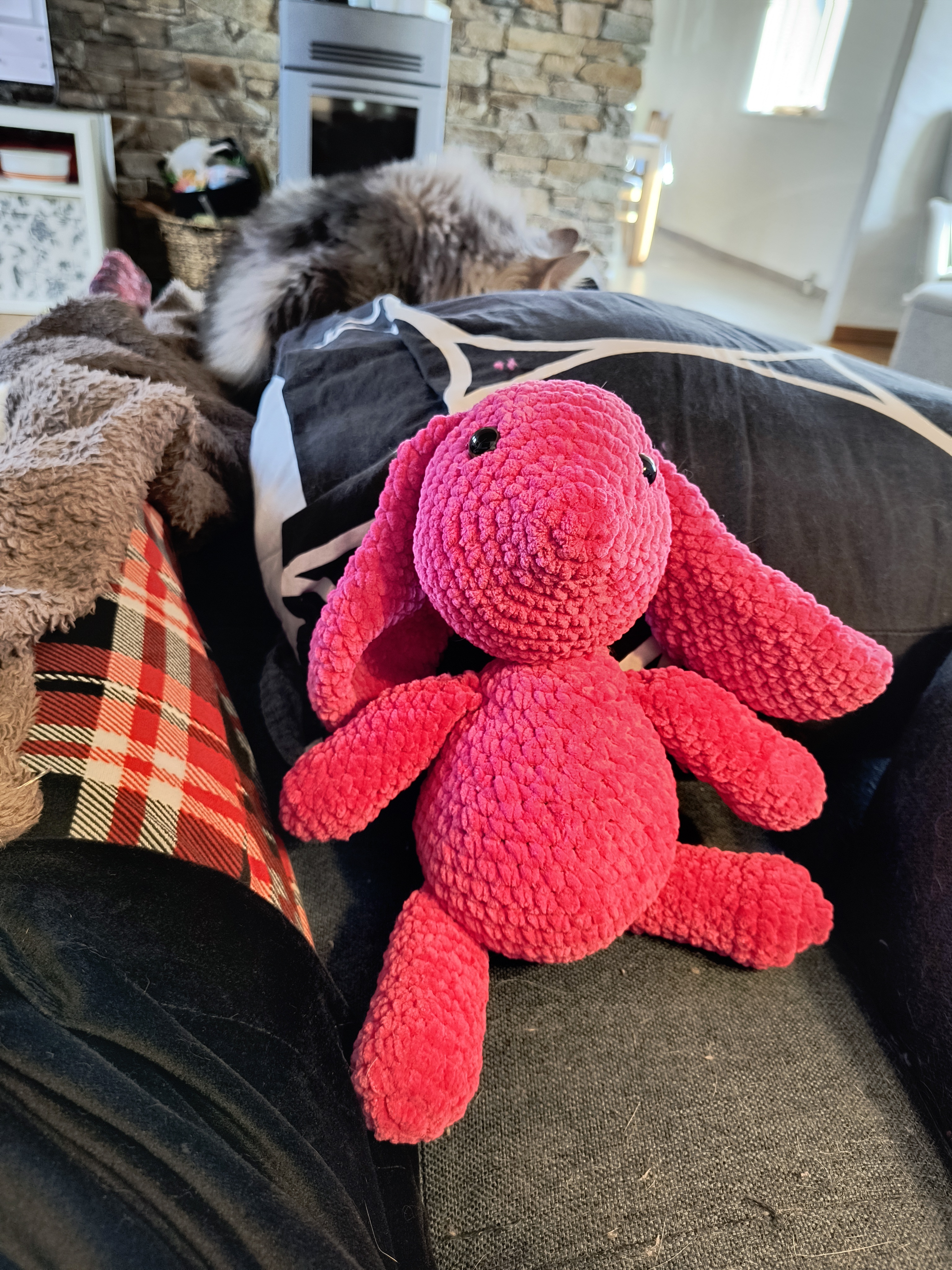 En lyserød kanin til barselsgave, det er så dejligt hurtigt et projekt når man først har hæklet et par stykker ![]()
