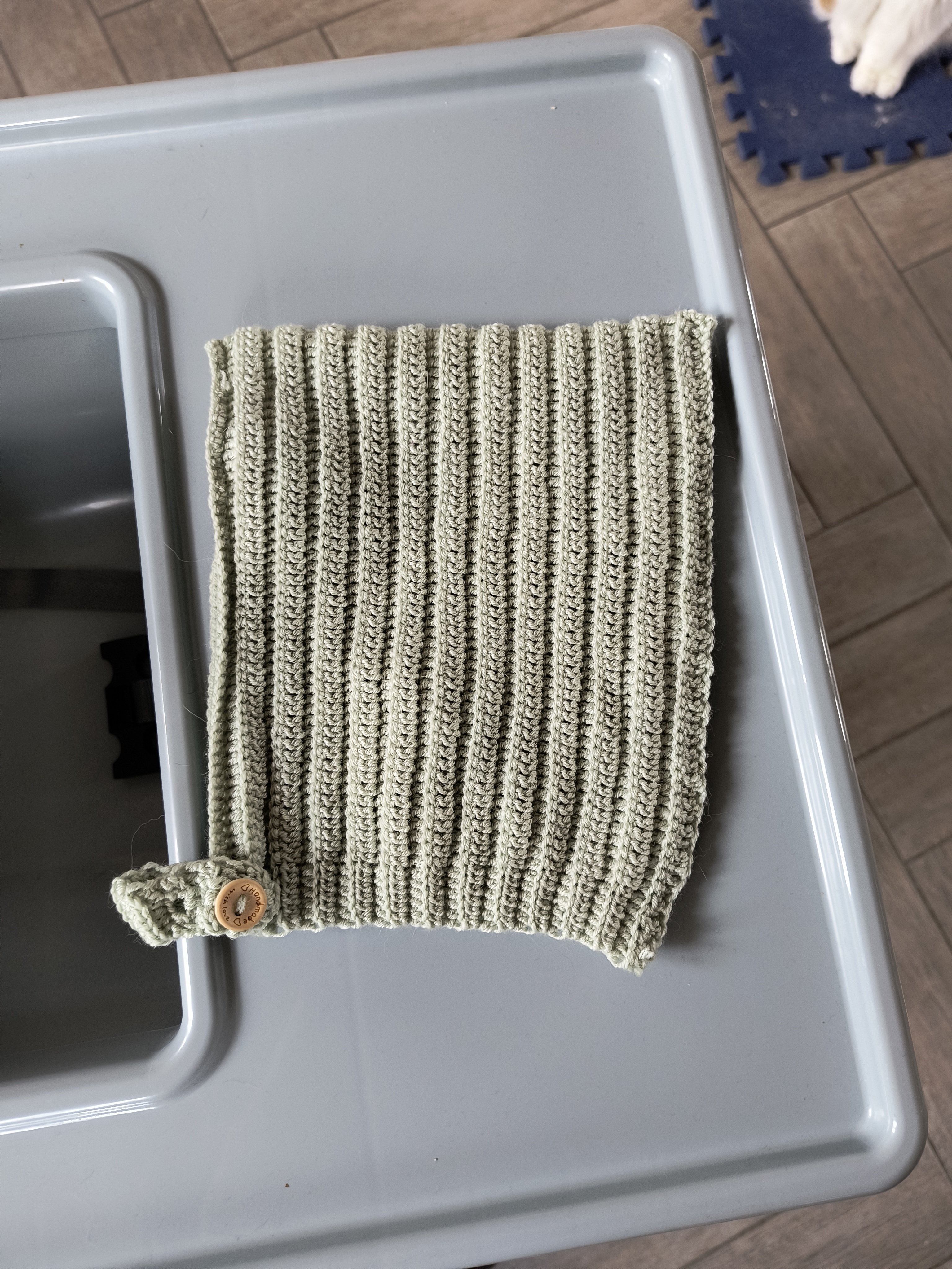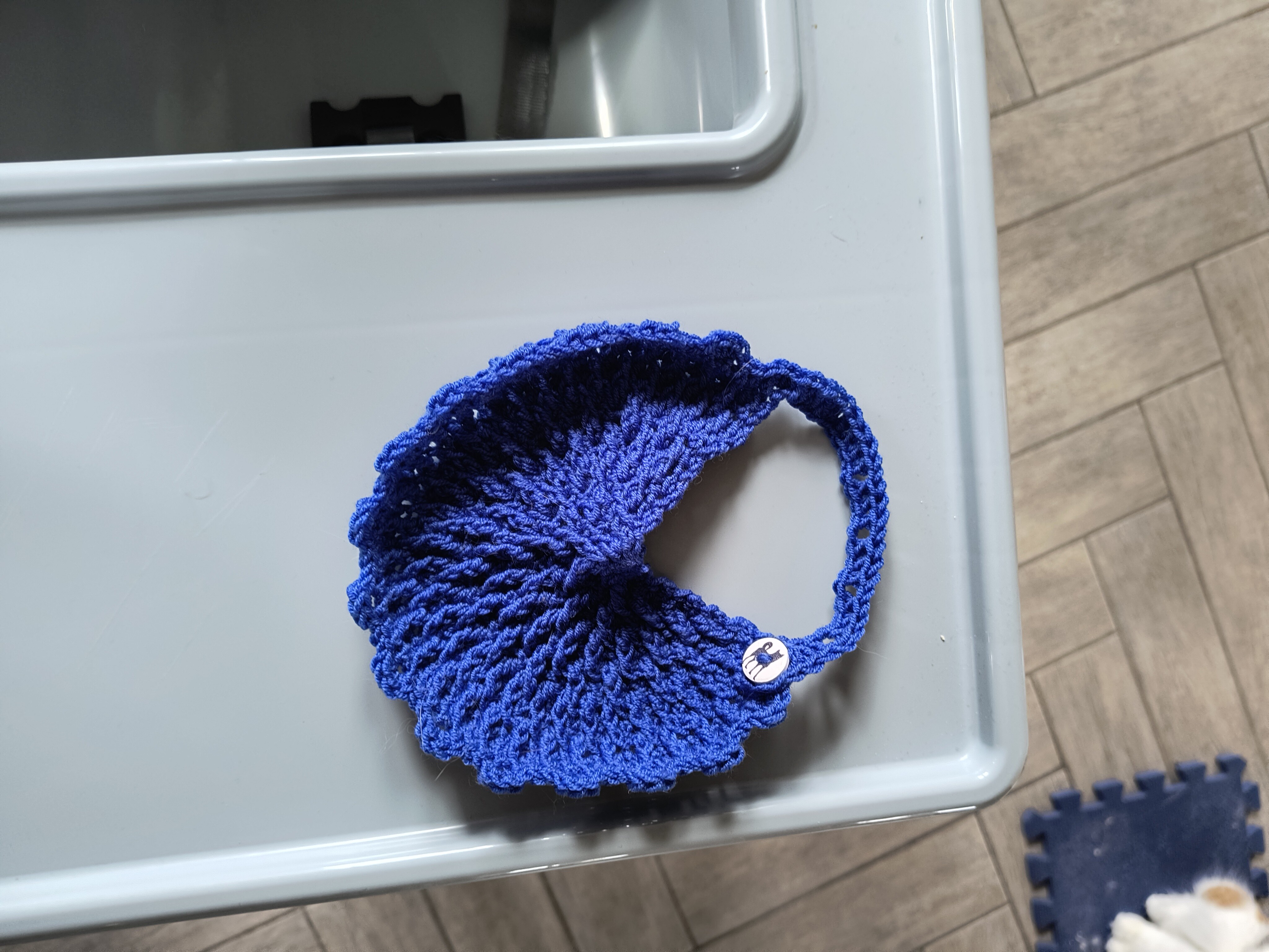 Det der med, at hækle en ting, hæfte ender og sætte knapper i, som en fortløbende proces er ikke min stærke side