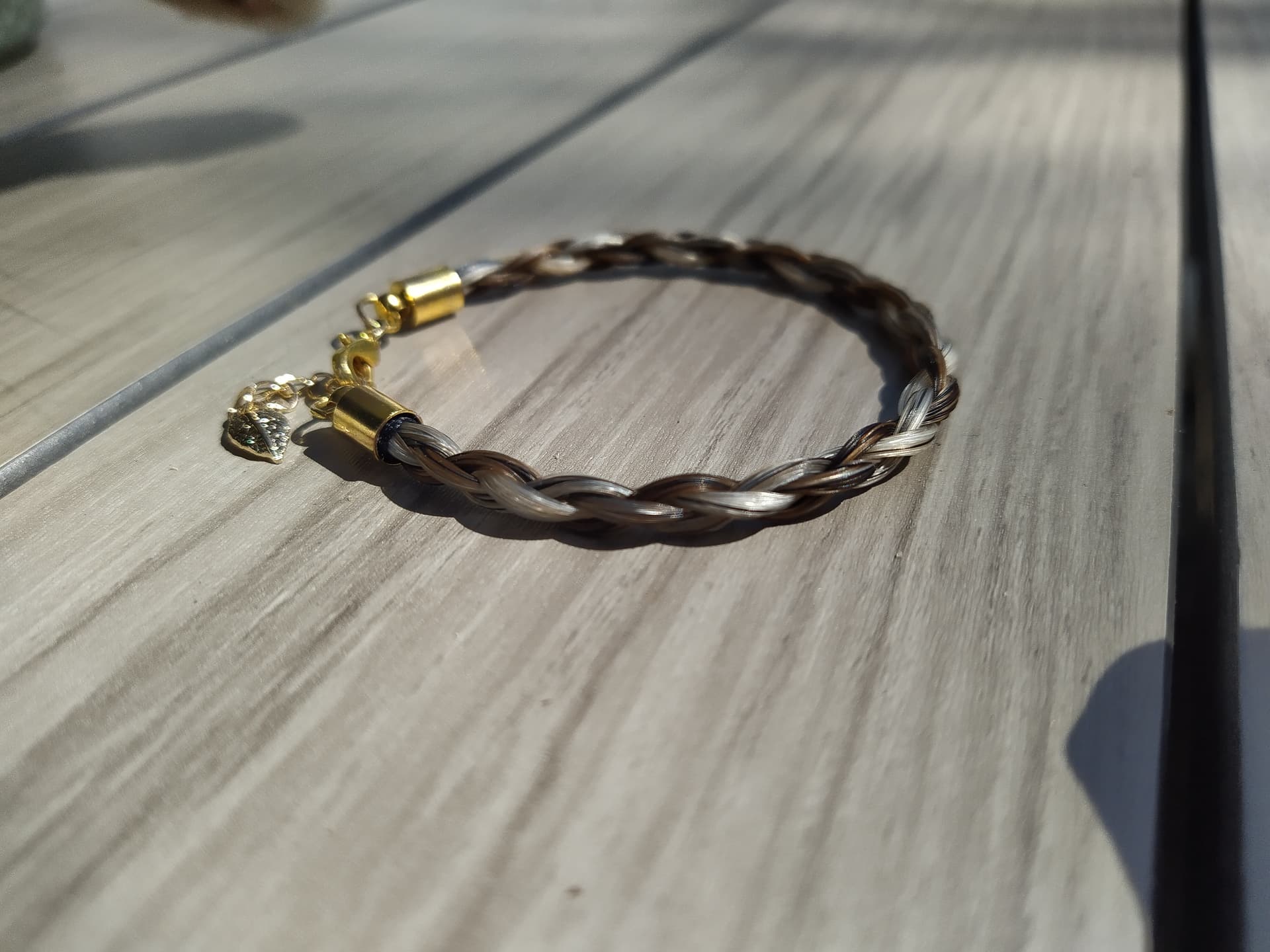 Jeg lavede for nylig to meget forskellige armbånd af halen fra den samme skimlede hest. Et hvor jeg flettede af usorterede hår og et hvor jeg havde sorteret hårene, så der var mørke og lyse bundter.