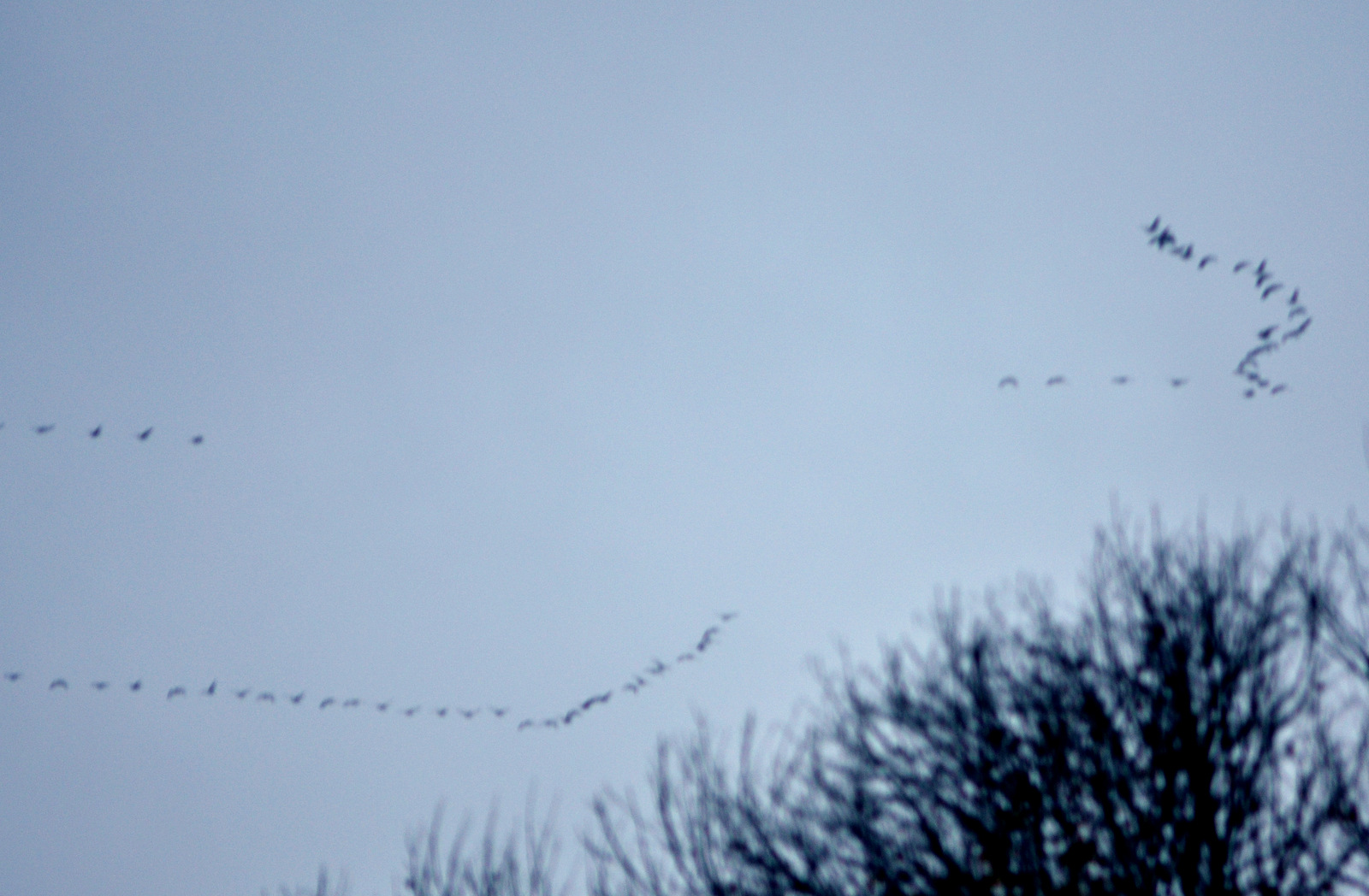 Her er der også store flokke af gråspurve, men jeg ser også grønirisk, dompap, bogfinker, blåmejser, fyrremejser og musvitter. Her er også kun nogle få solsorte, men her var mange da mine pærer faldt ned i store mængder, så de skal nok komme, når de bliver sultne nok. Her er også et par enkelte duer. Jeg elsker simpelthen at betragte alle fuglene, når de flagre omkring og sommetider kommer op at skændes om pladserne.