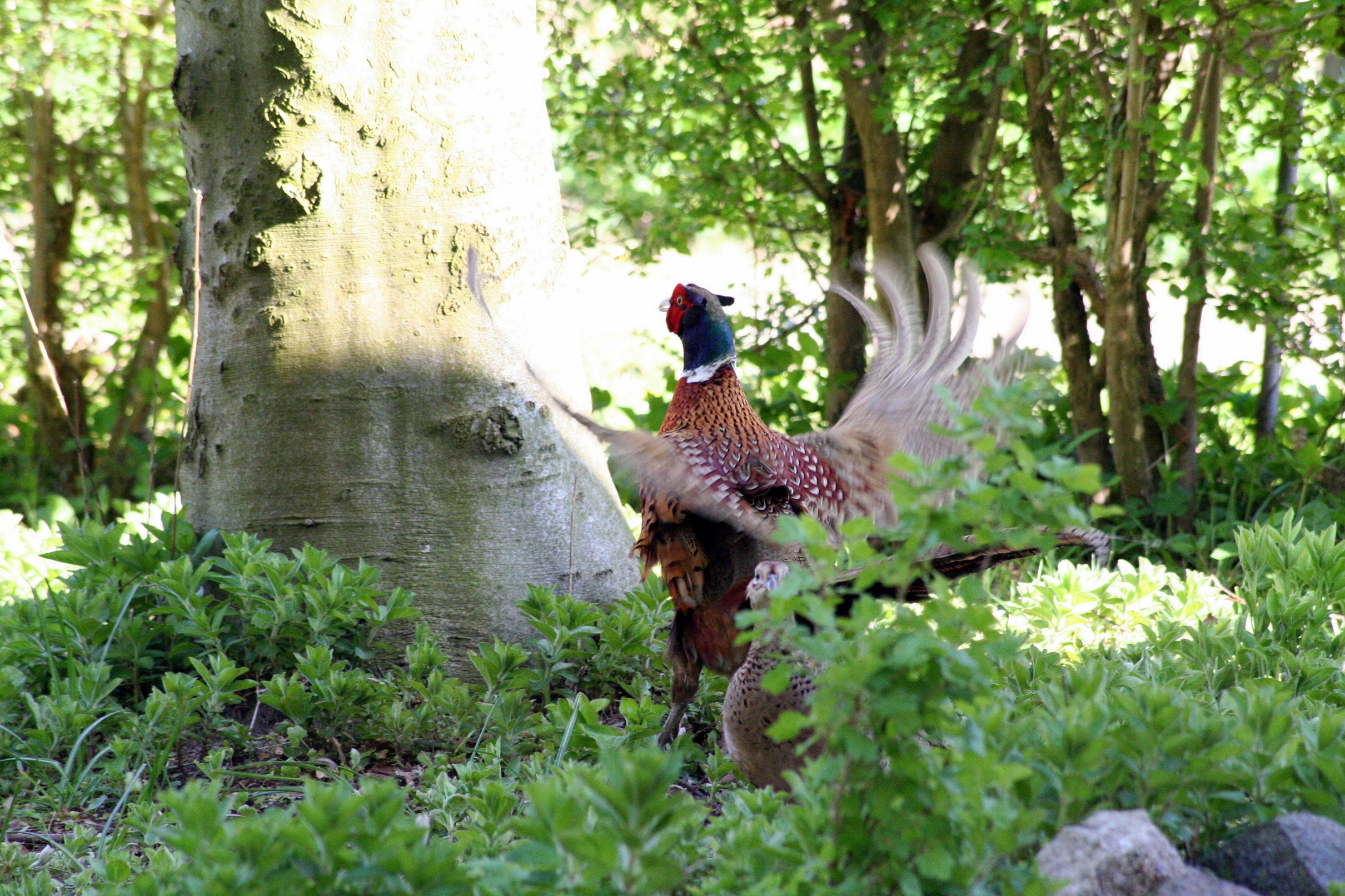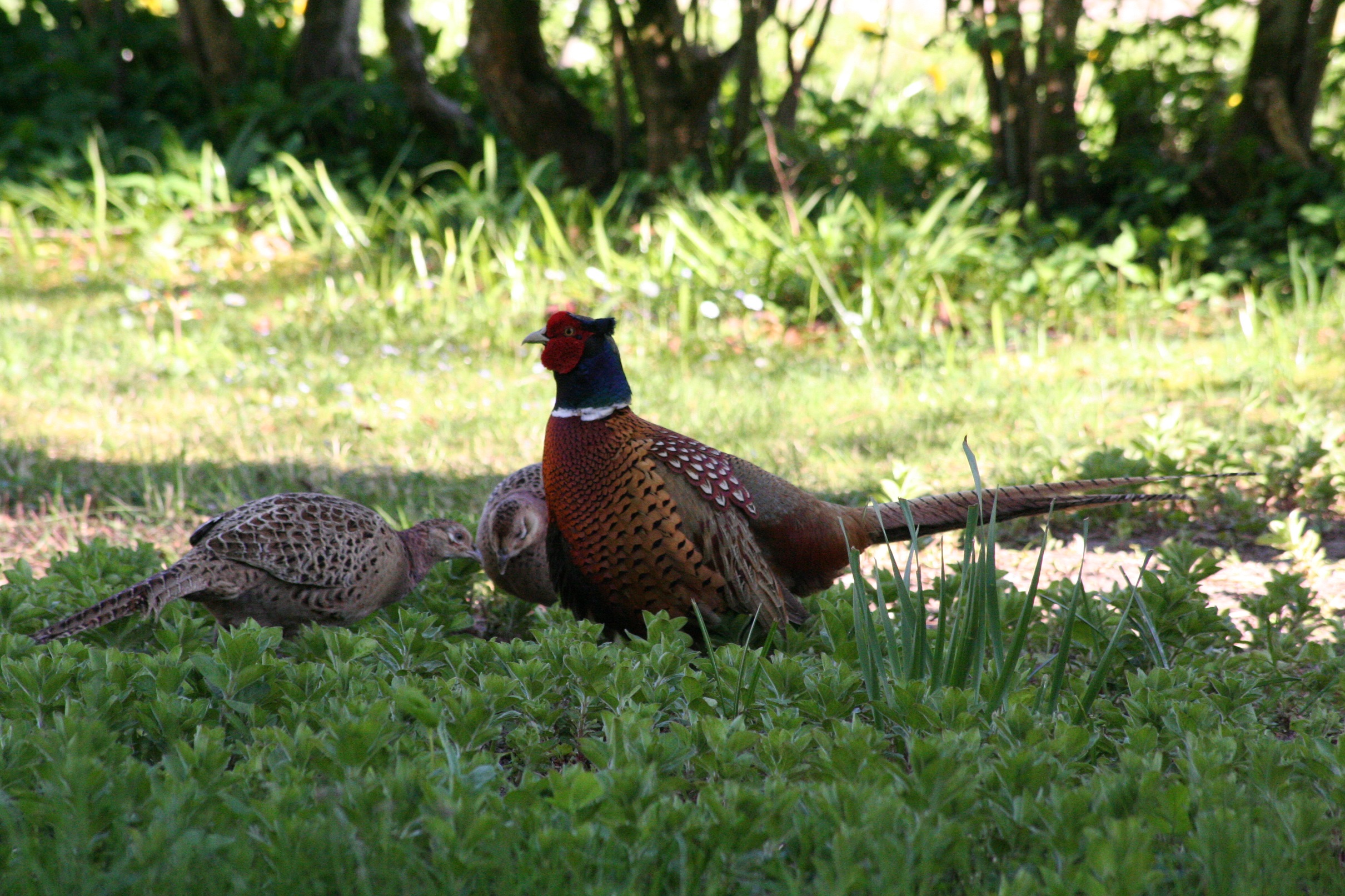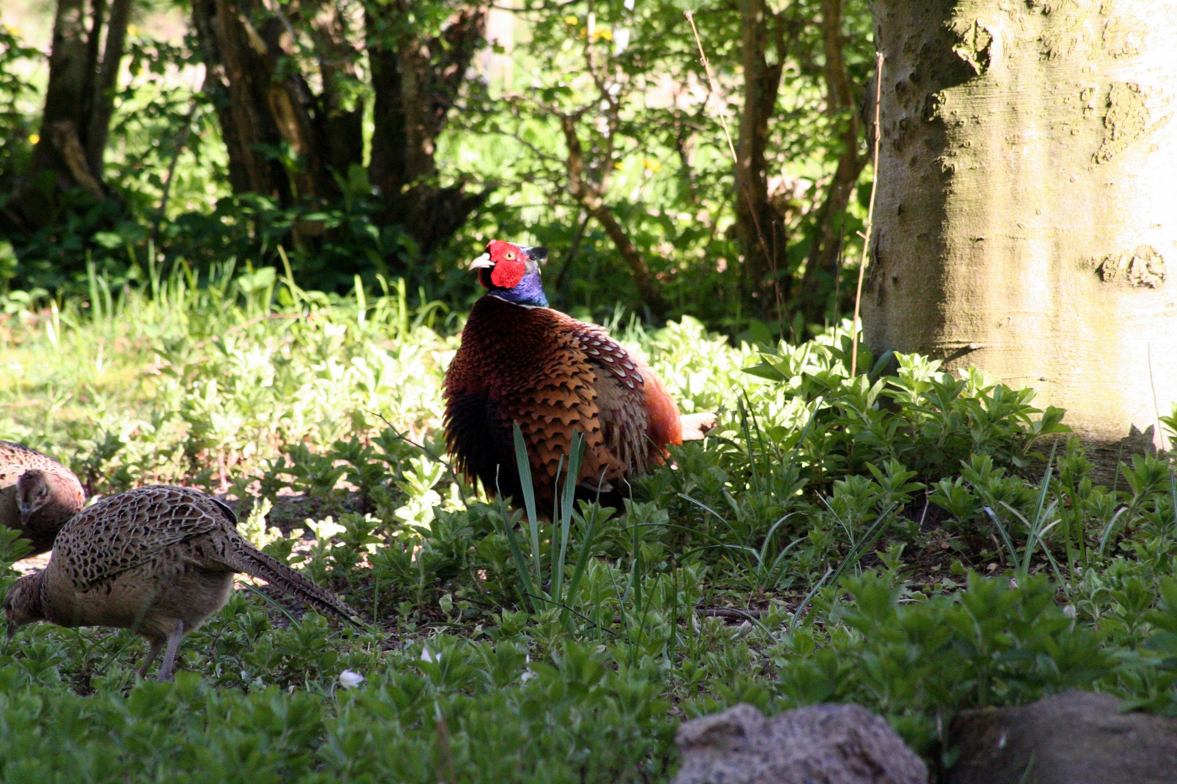 Jeg har disse billeder af min flotte han-fasan, Turkey - taget tilbage i 2012 hvor han kom og pralede med to smukke høns. Året efter var han der igen (altså samme Turkey …!) med … 9 (NI) høns! Jeg skal nok finde billederne - jeg kan fortælle at han var MEGET slank, nærmest tynd, og ret pjusket …