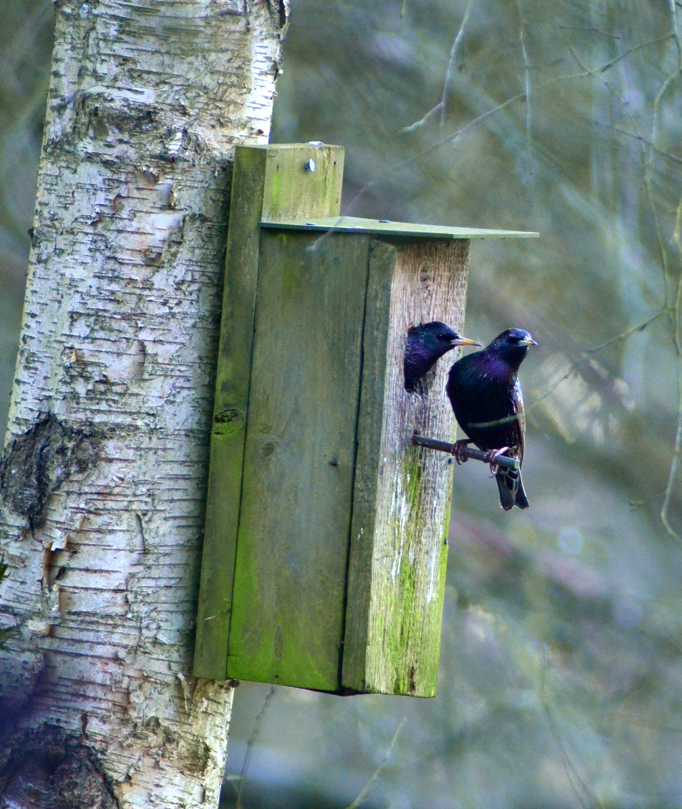 Det har sagt PIIING flere gange = stær i den ene kasse …den anden er også besat, tror også at blåmejsen er ved at flytte ind …må hellere chekke at alle kasser er kommet op