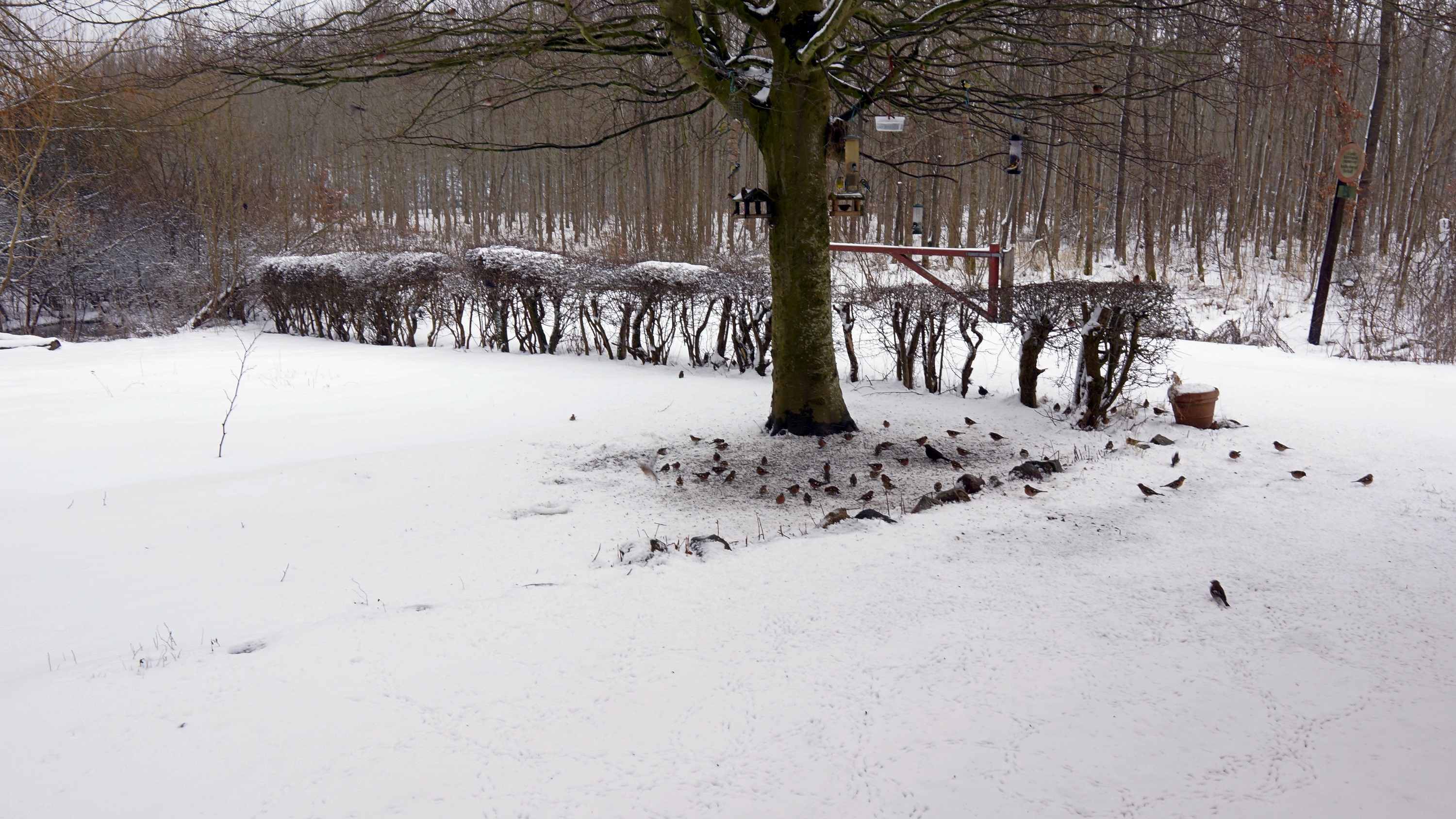 Jeg er løbet tør for melorme og jordnødder og venter med længsel på ny forsyning. Indtil da, må de nøjes med solsikkekerner, fedtkugler og fedtstænger med insekter.