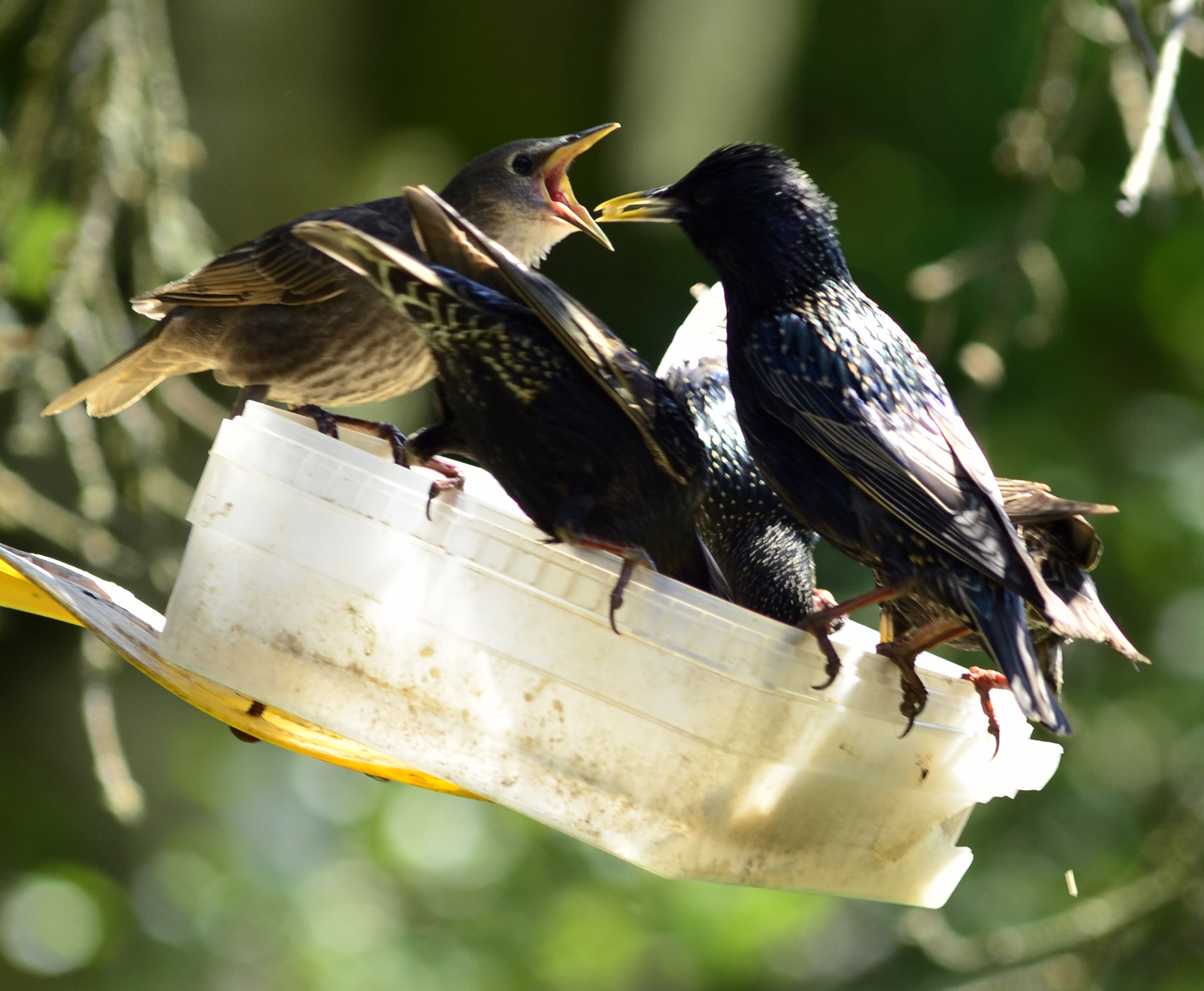 Pludselig var der en farlig larm, og jeg troede, der var noget alvorligt på færde, så de advarede hinanden. Men det var der ikke. Det var gråspurven, der kom på besøg for at vise næste generation frem. De sad en hel flok i syrenen og fortalte mor og far lige præcis, HVOR sultne de var ![]()