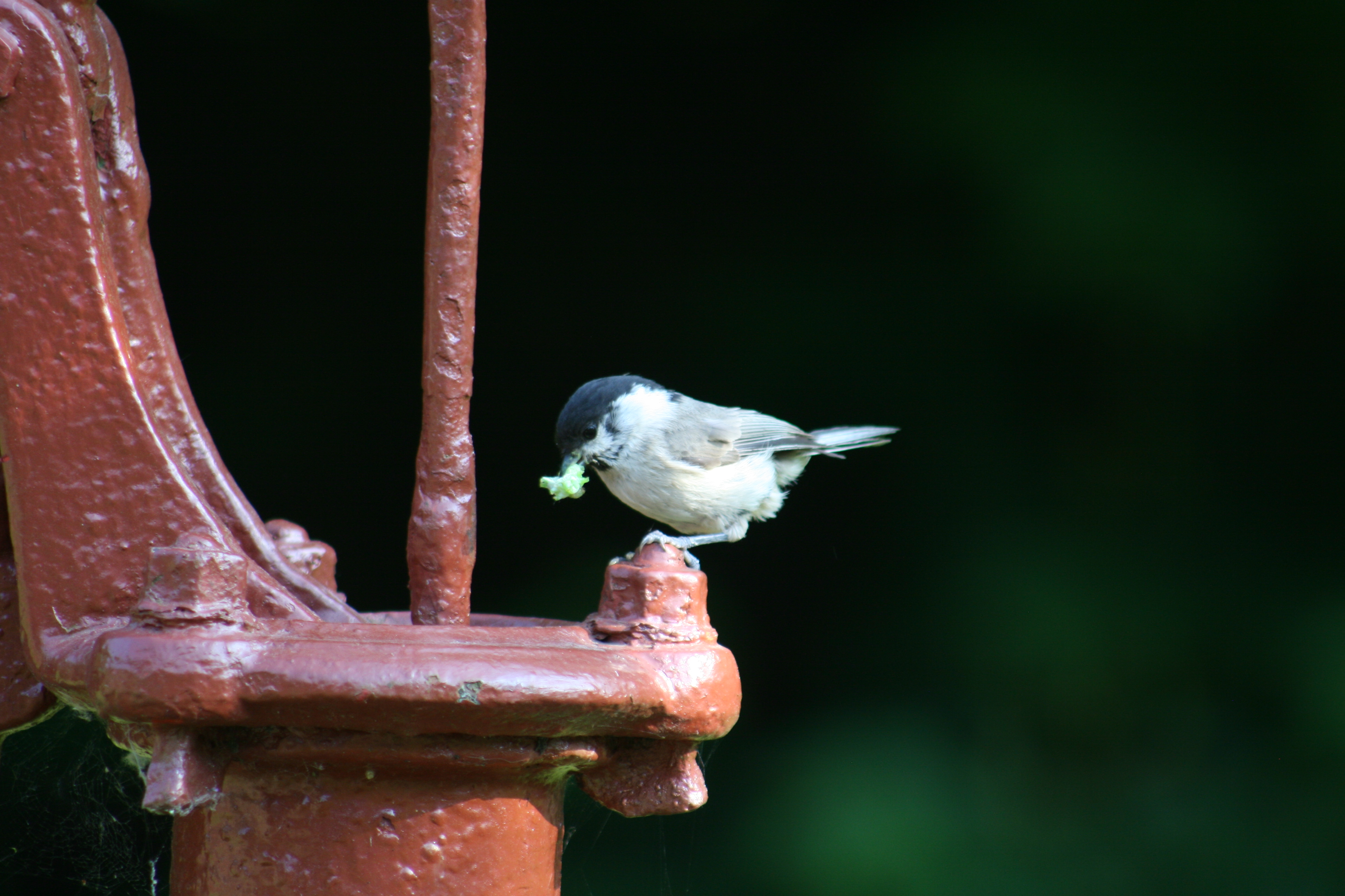 Jeg har fået sådan en fin gammel vandpumpe og den er der flyttet en sød lille sort mejse ind i ![]()