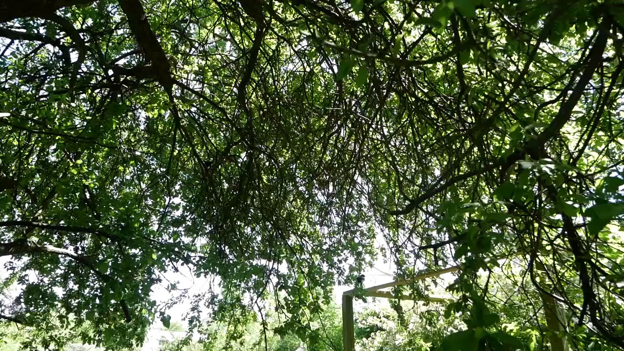 Nå, men ungerne hoppede af reden i går aftes og er nu godt installeret i mirabell træet - som er kattesikret med net om stammen. Men det er godt nok ikke populært når misserne er på pergola…her tester en af ungerne lige den af også…anden unge sider til venstre…