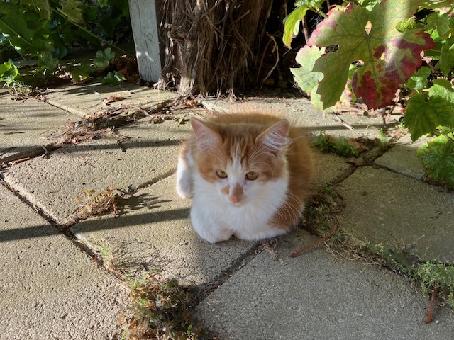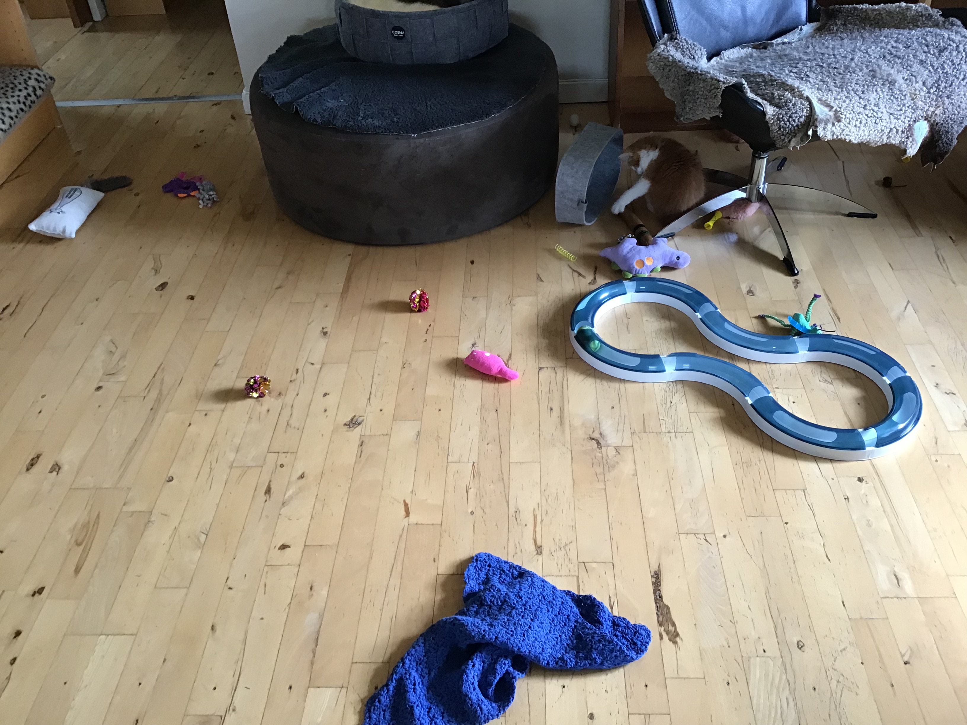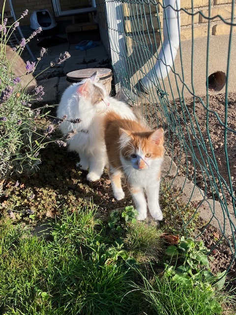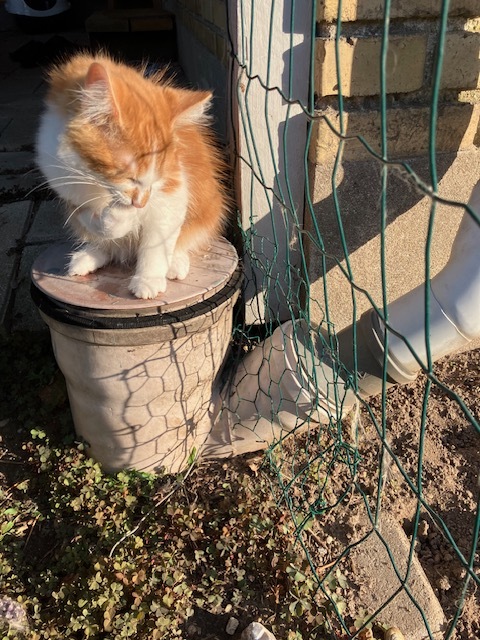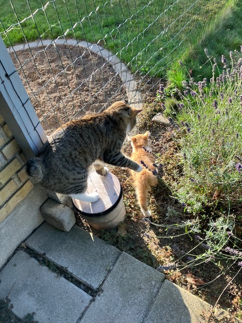 Naboens kat har også lige været på besøg, og han og Mishka lå bare i stuen og kiggede på hinanden, så der opstår forhåbentlig heller ikke problemer.