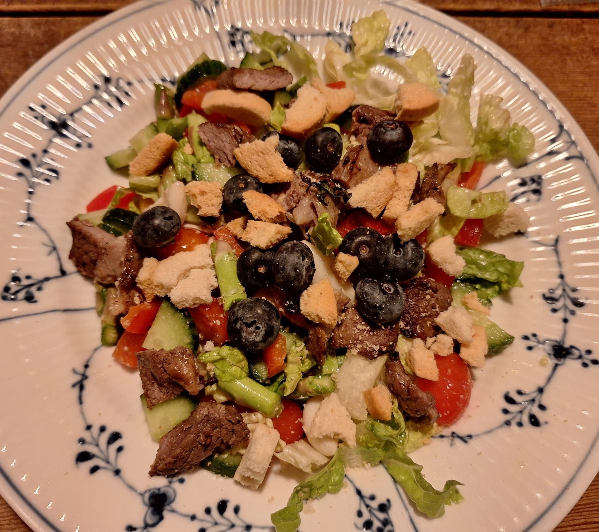 Middag lørdag blev i stedet lammesalat med en kombination af ting, jeg altid har i køleskabet og rester fra nytår. Det sidste af lammekødet fra nytår er nu røget i fryseren til en anden god gang