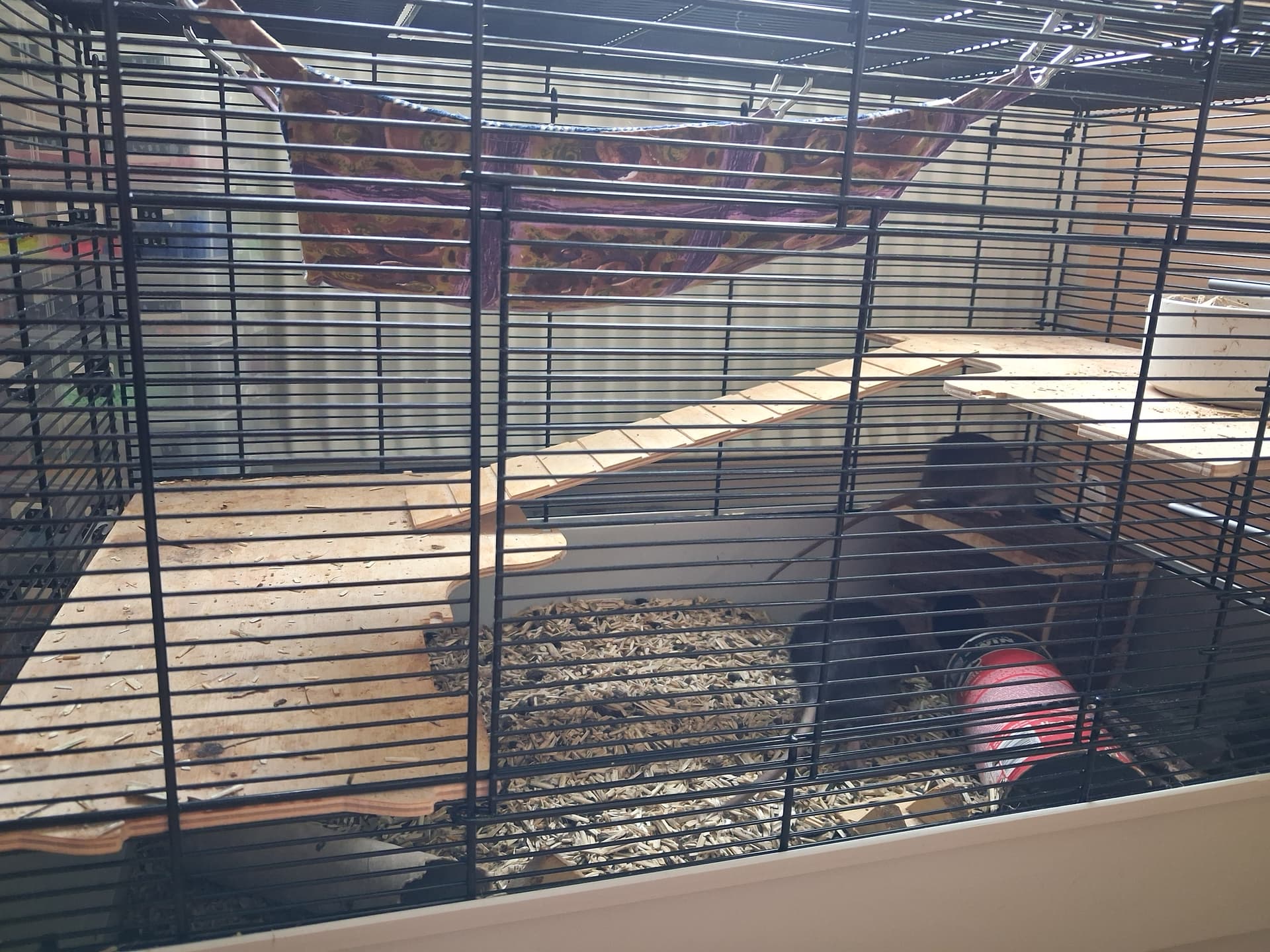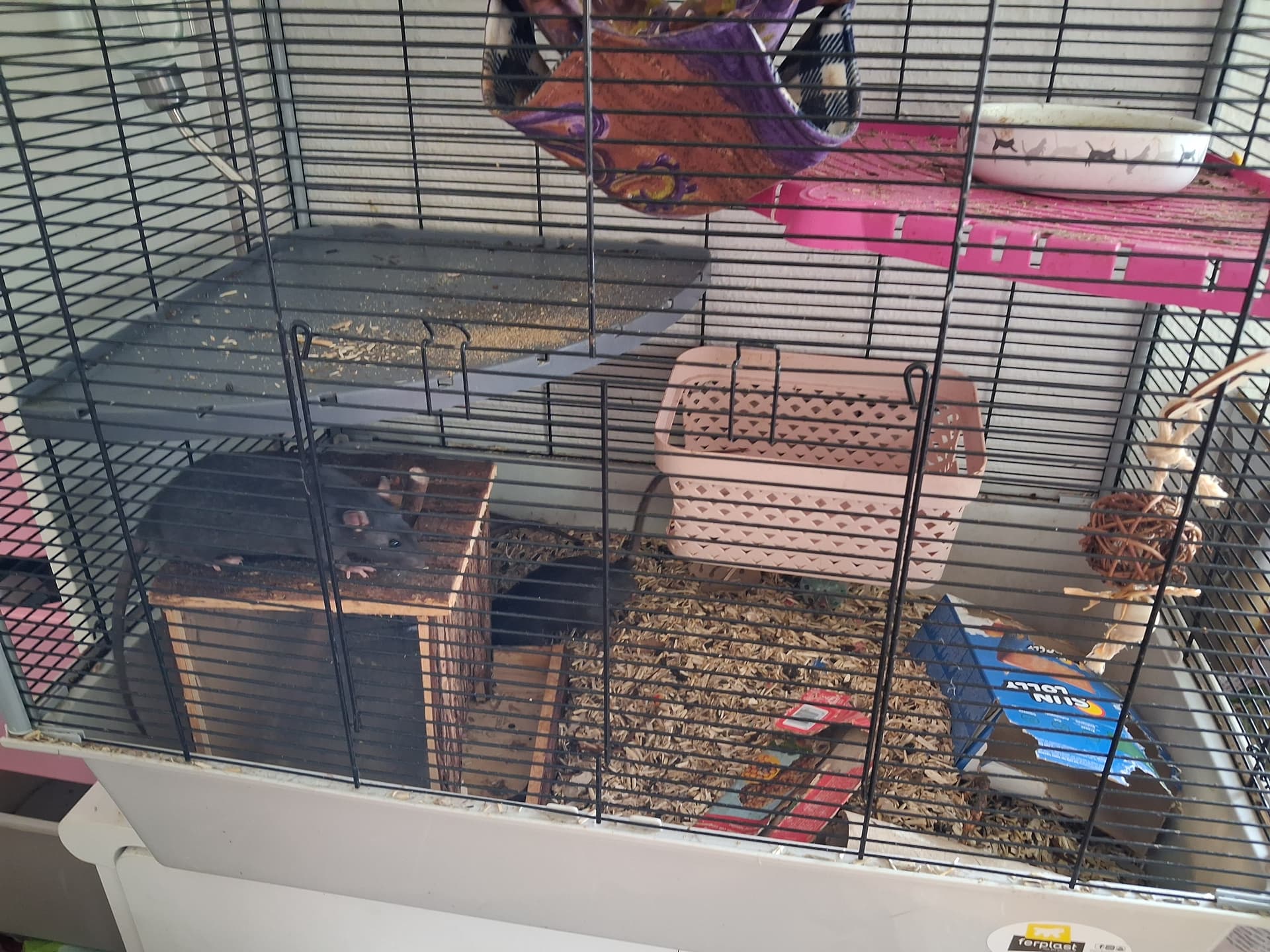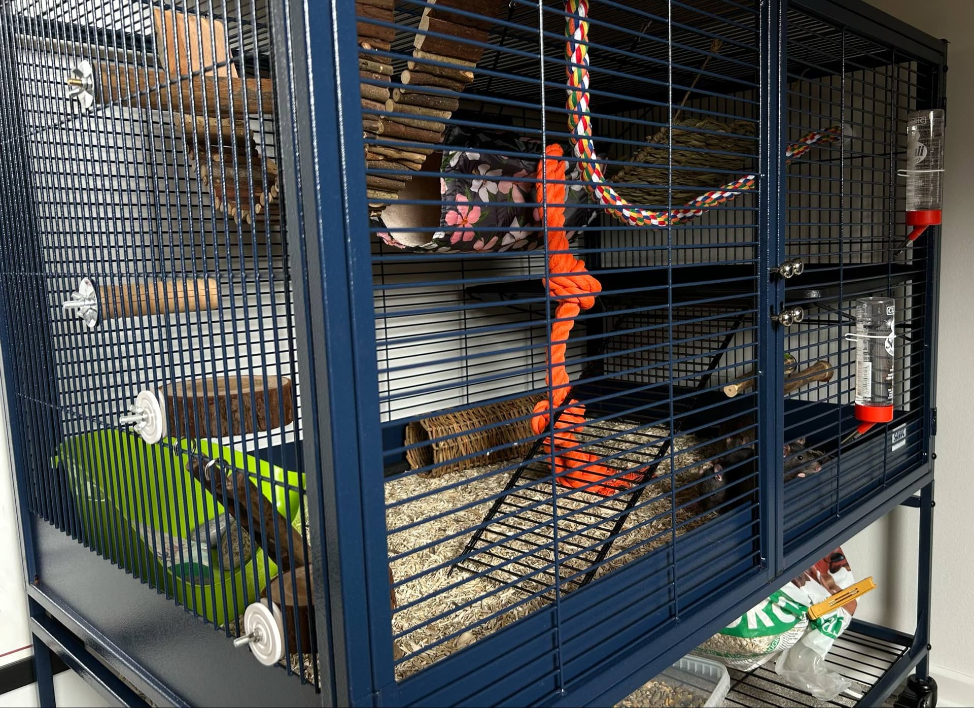 Jeg har skiftet rundt så Buddy og drengene har det store bur, mens Bea og Stockings fik det andet bur…
