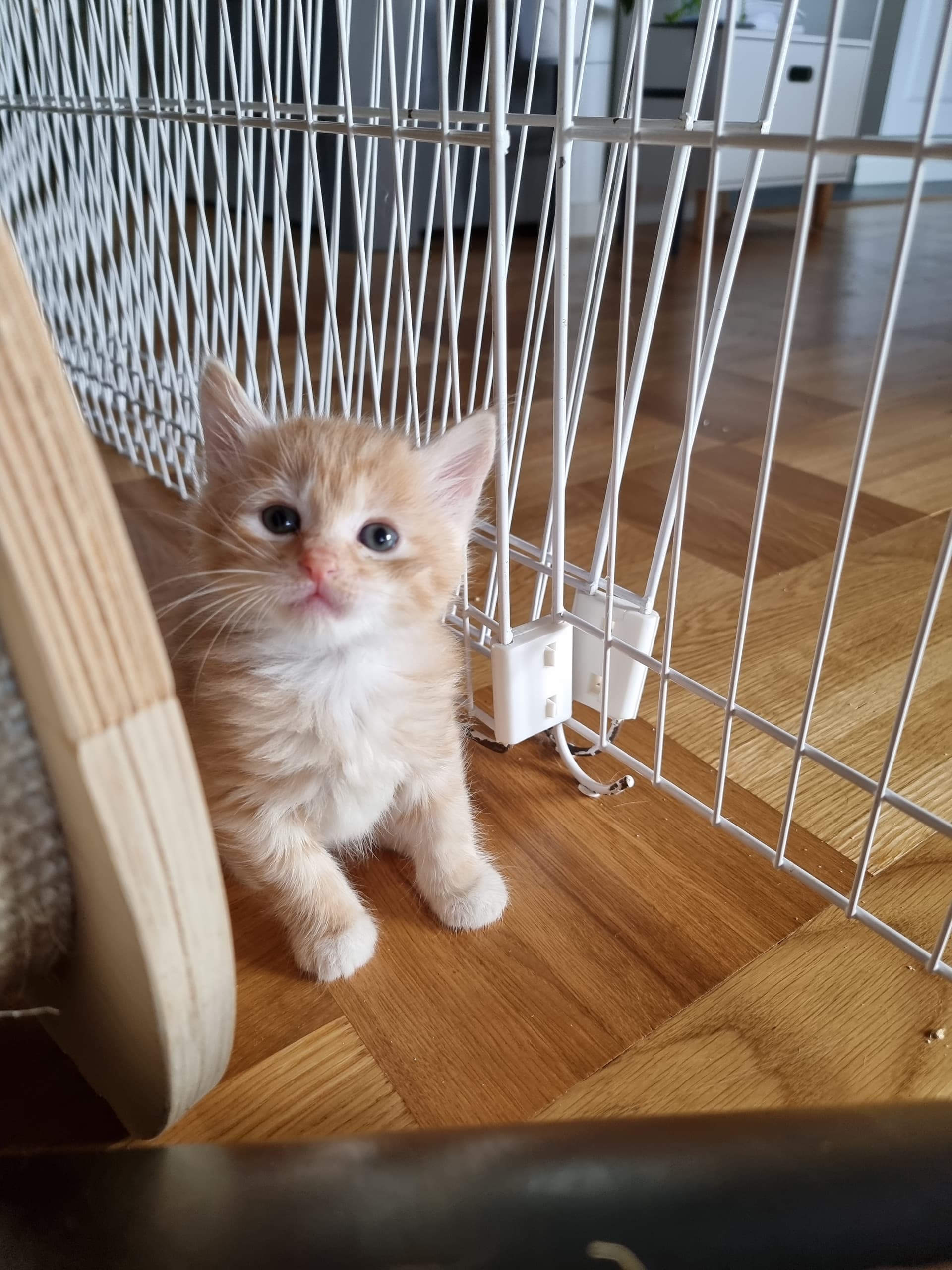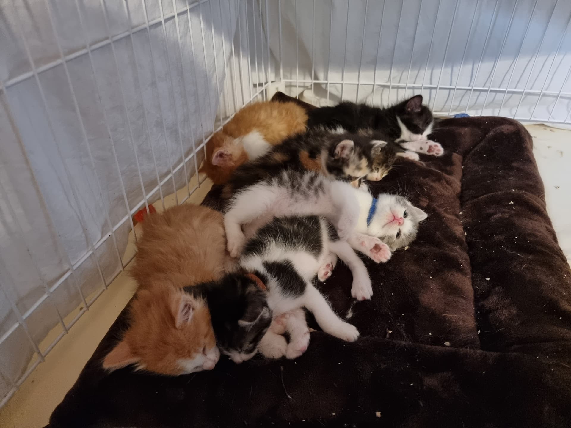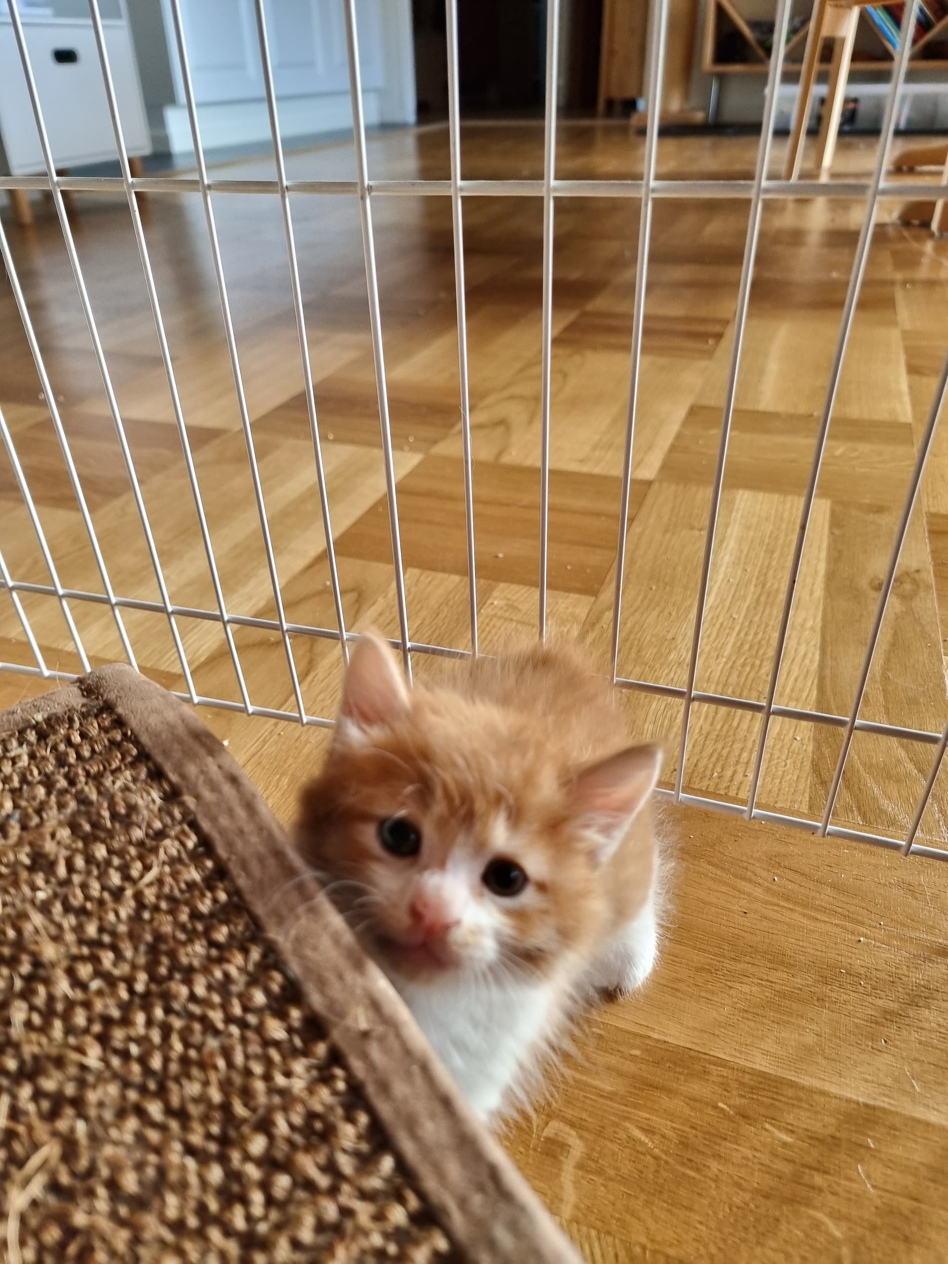 De er nu 4 og 5 uger. I går fik vi sønnikes 3 børn til overnatning, samt besøg af vores killinge socialiserings damer. Kravlegården var altså for lille, så vi lukkede op for at få mere plads. Og det må siges at være et hit for killingerne, nøj de kunne spæne rundt, men desværre, så vil de ikke længere nøjes med en lille indhegning. De plankede den