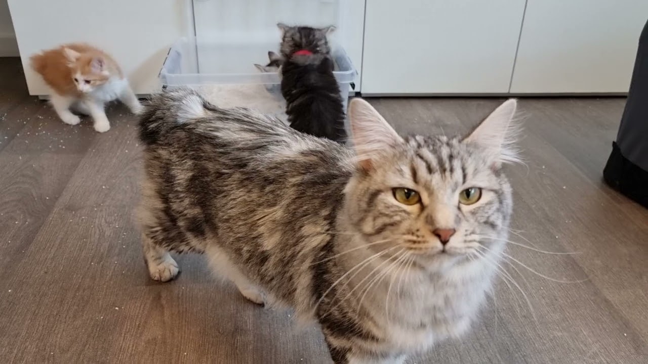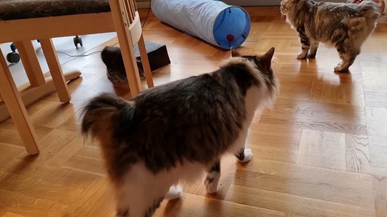 I går formiddag tog vi Baileys killinger op i stuen, så de kunne få lidt tid med de andre.
