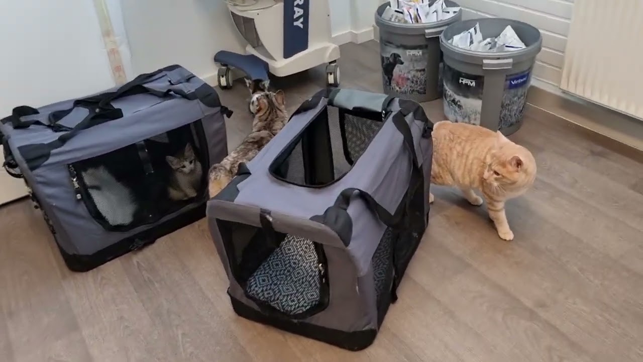 De voksne skulle i dag vaccineres, så killingerne var med til en hyggedag hos dyrlægen.