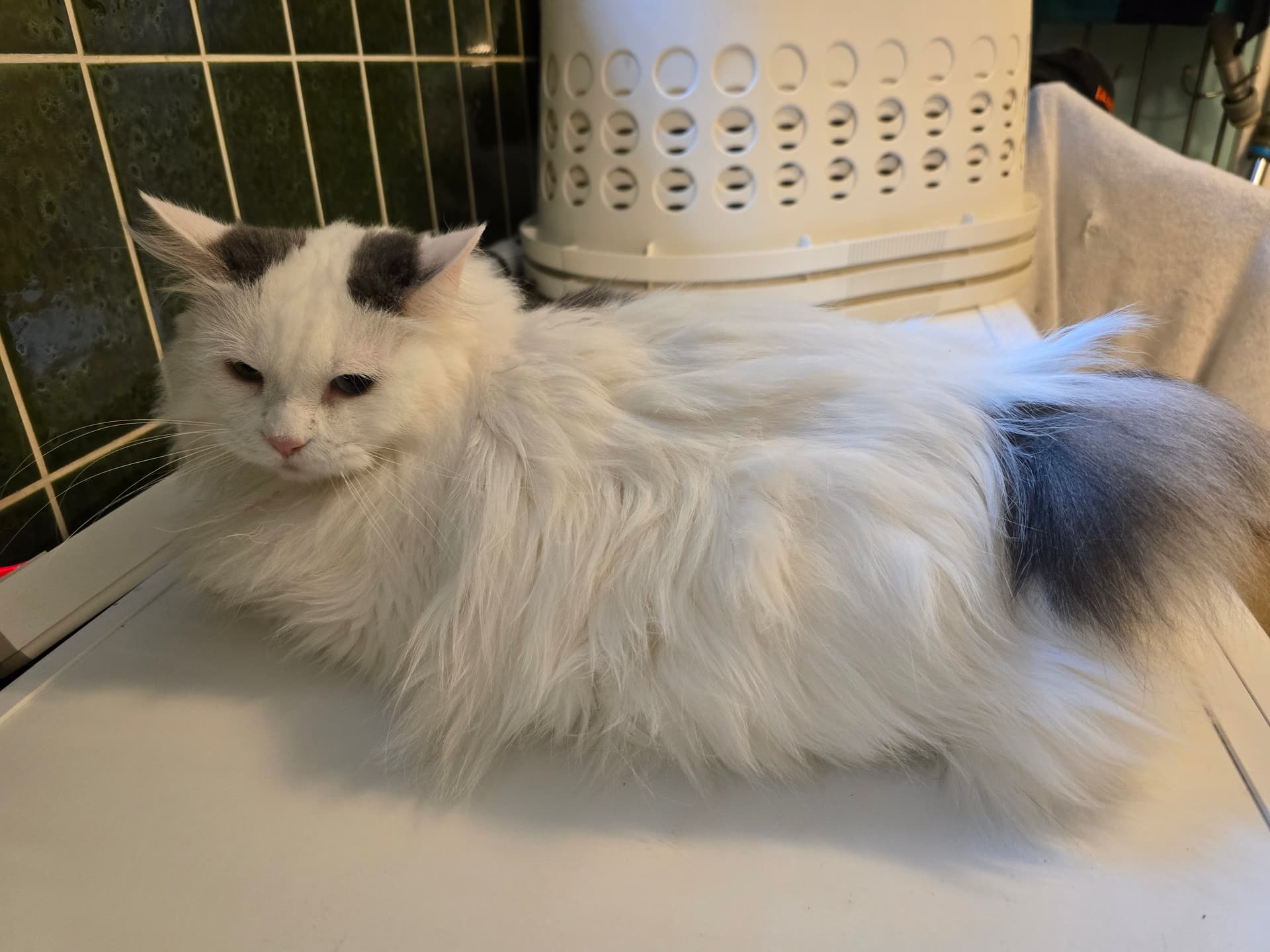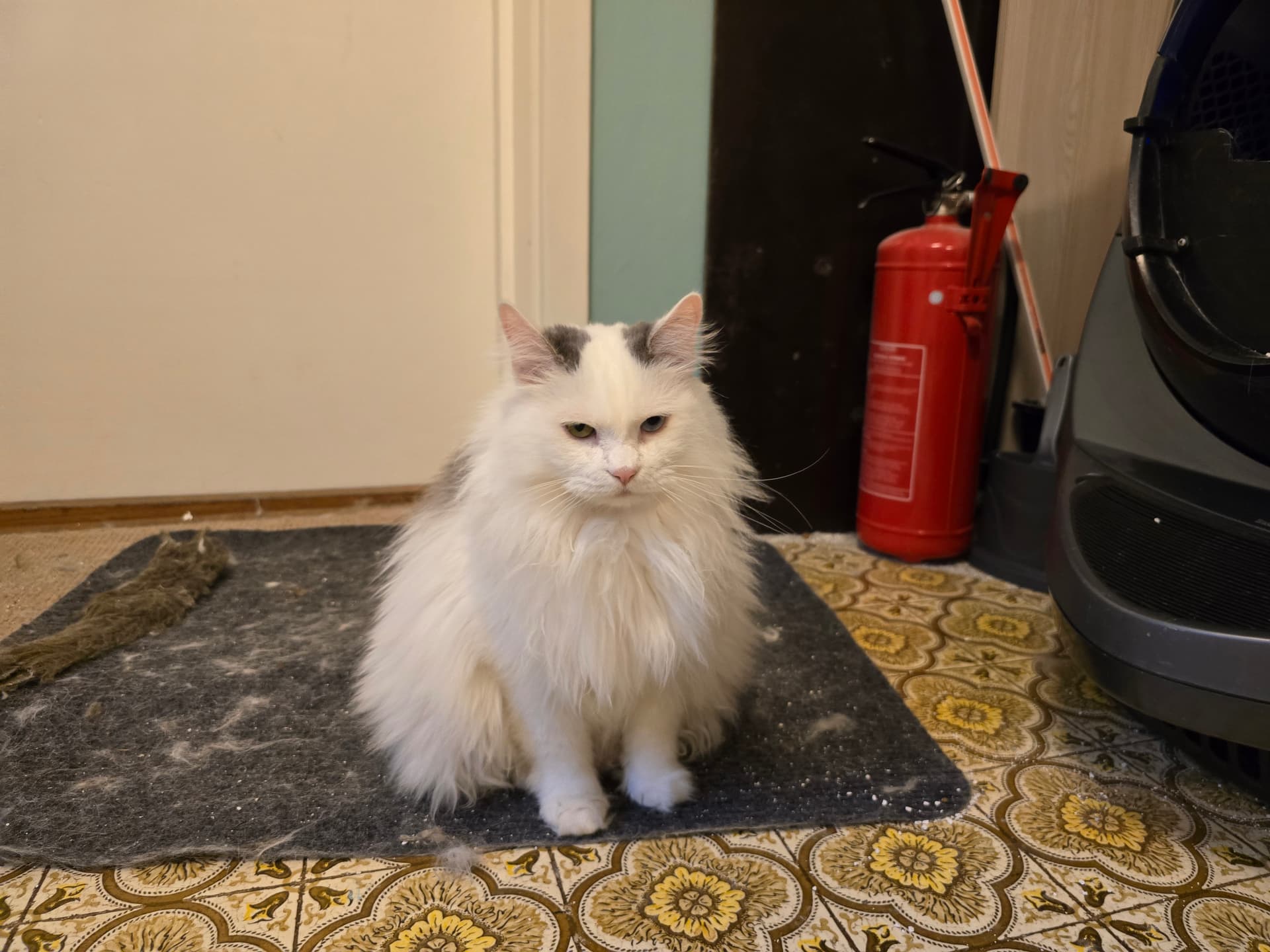 Oda har en træls pels og skal redes hver 14. dag. (man kan også trimme hende med mellemrum) det har vi gjort et par gange.